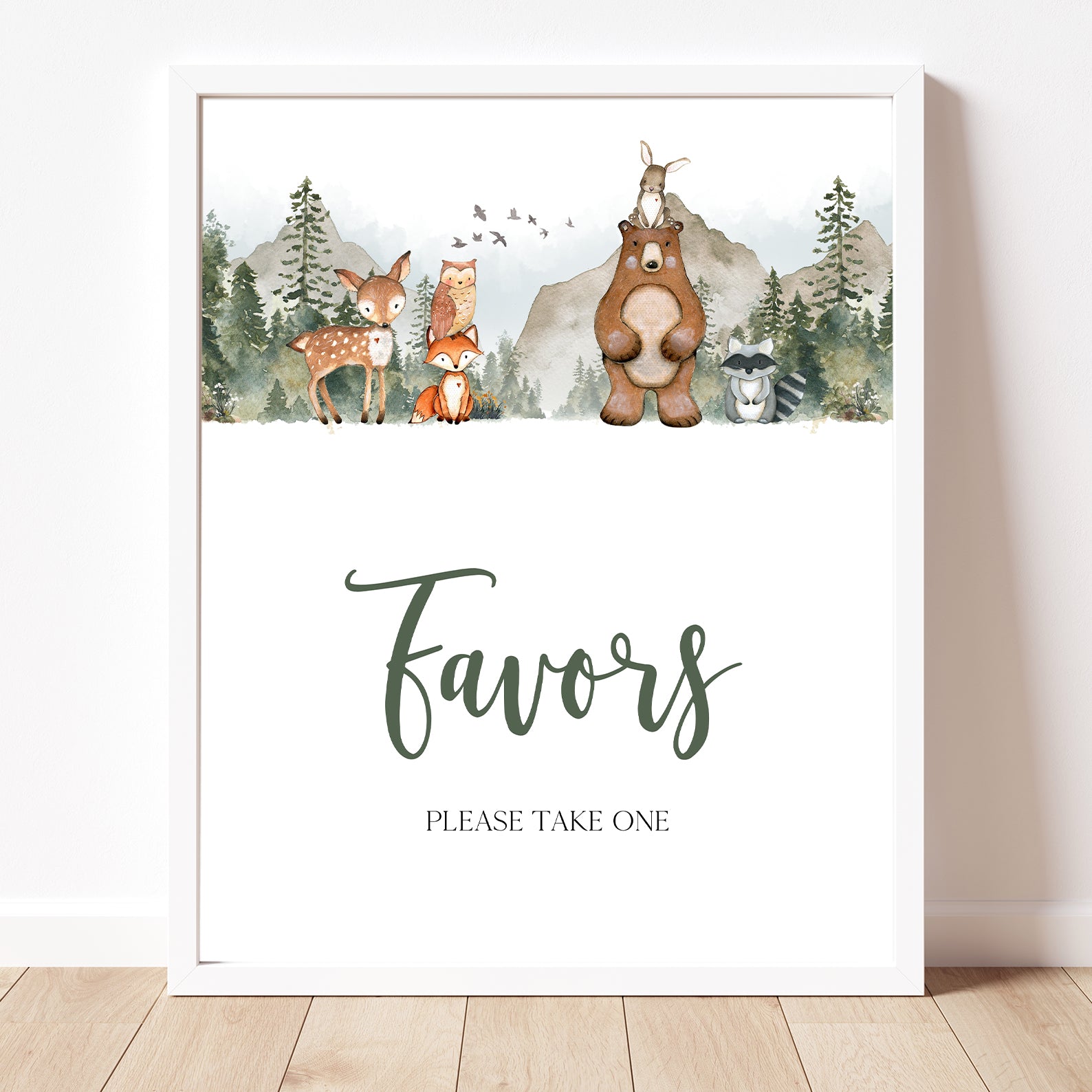 - Purchase this Adventure Awaits Baby Shower Table Sign with Woodland Animals template