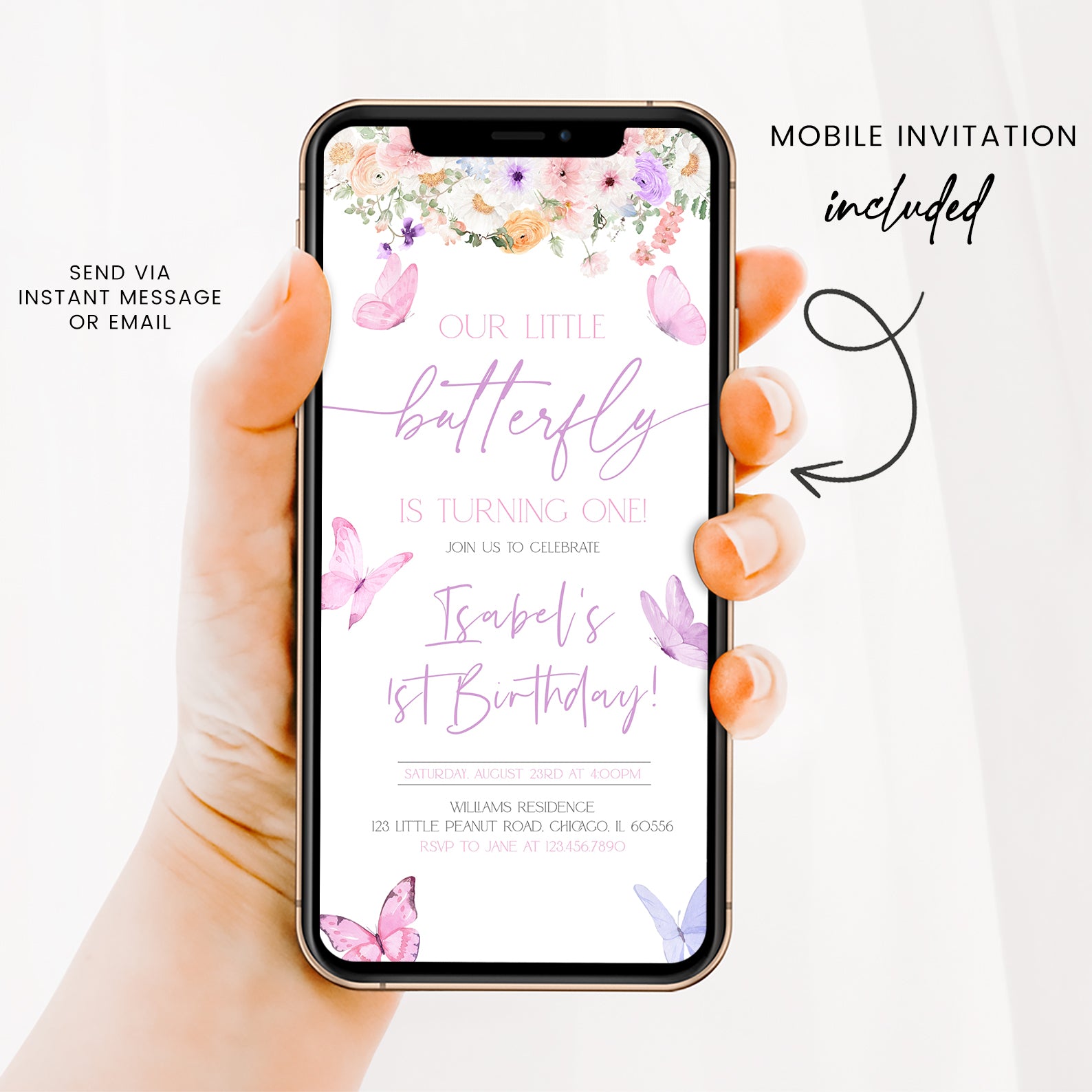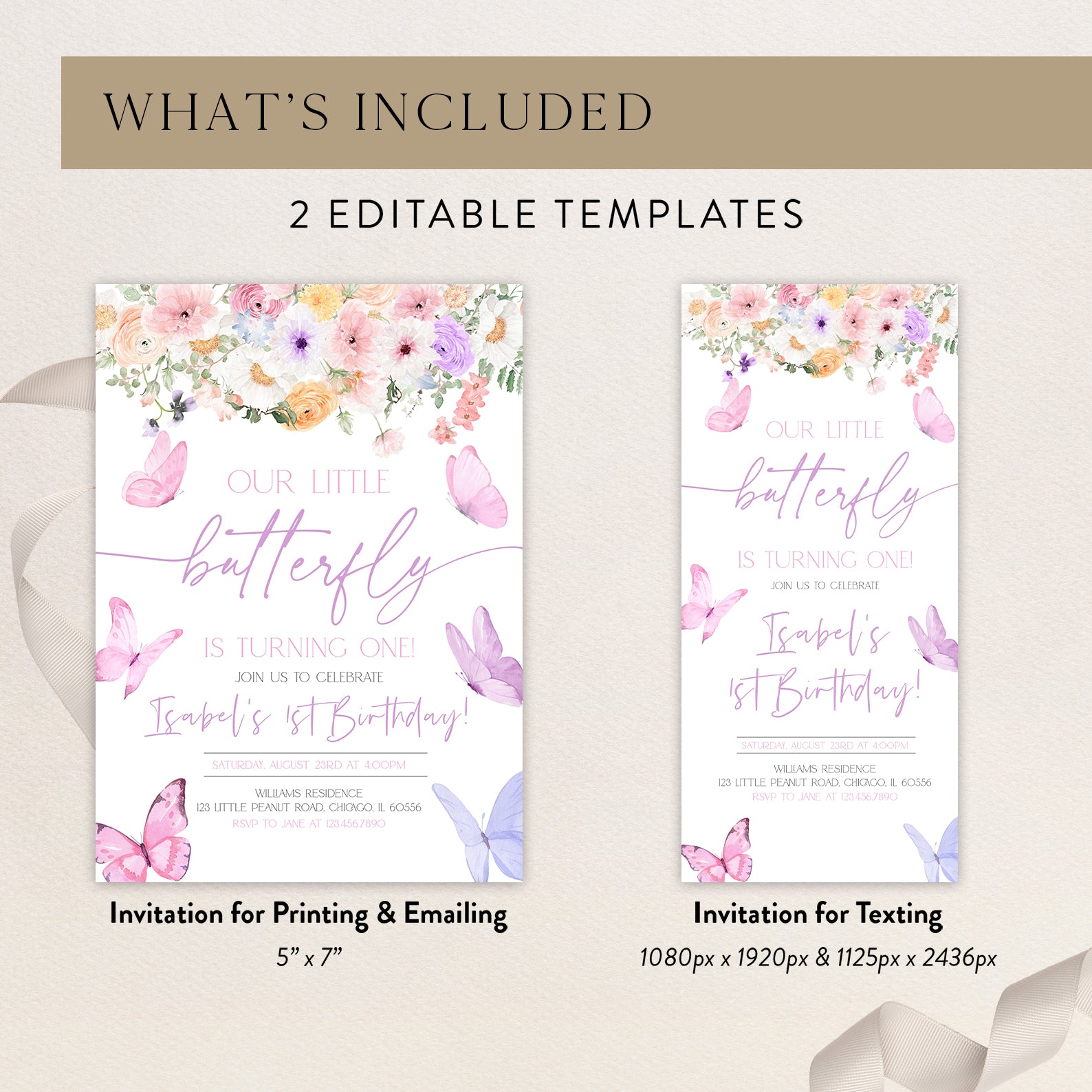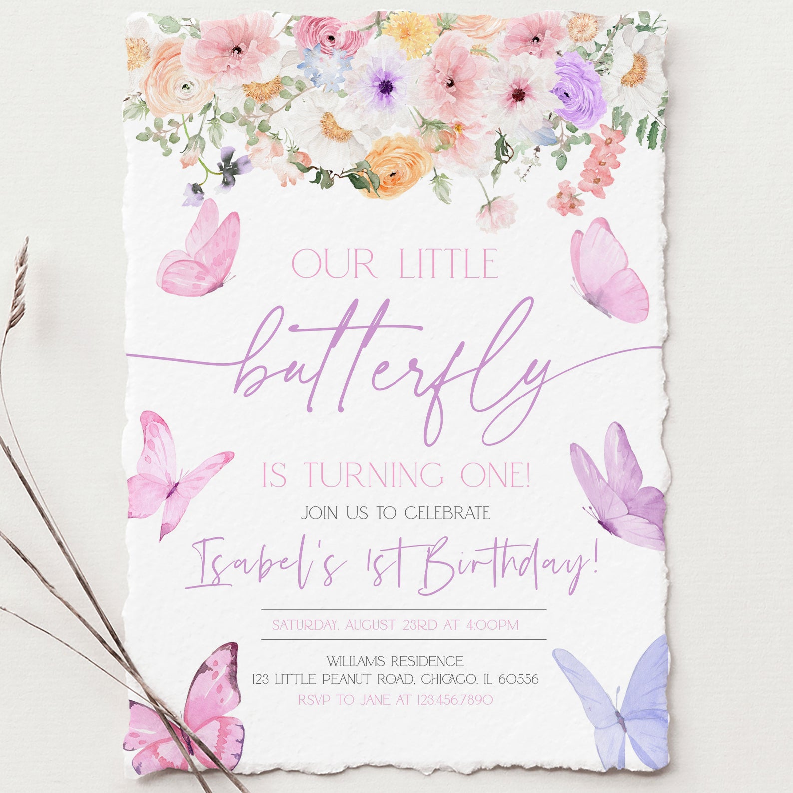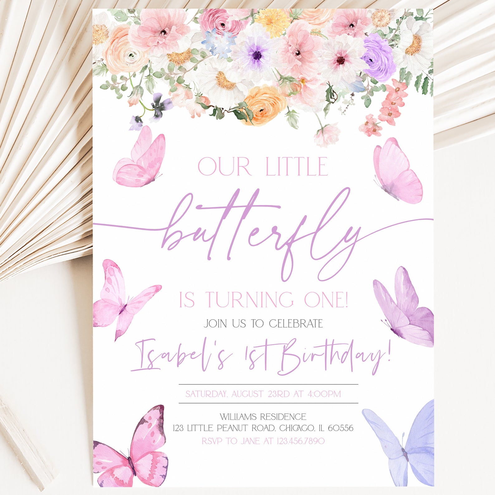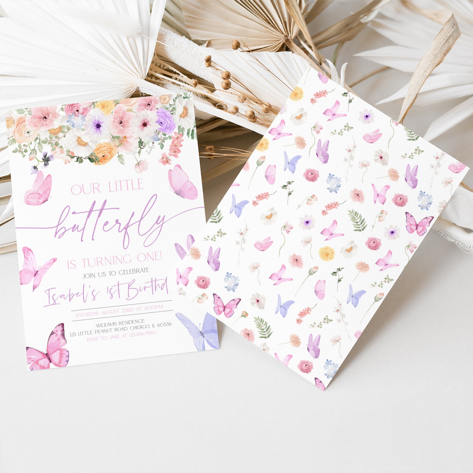- Purchase this Butterfly Spring Birthday Digital Invite for Girls template