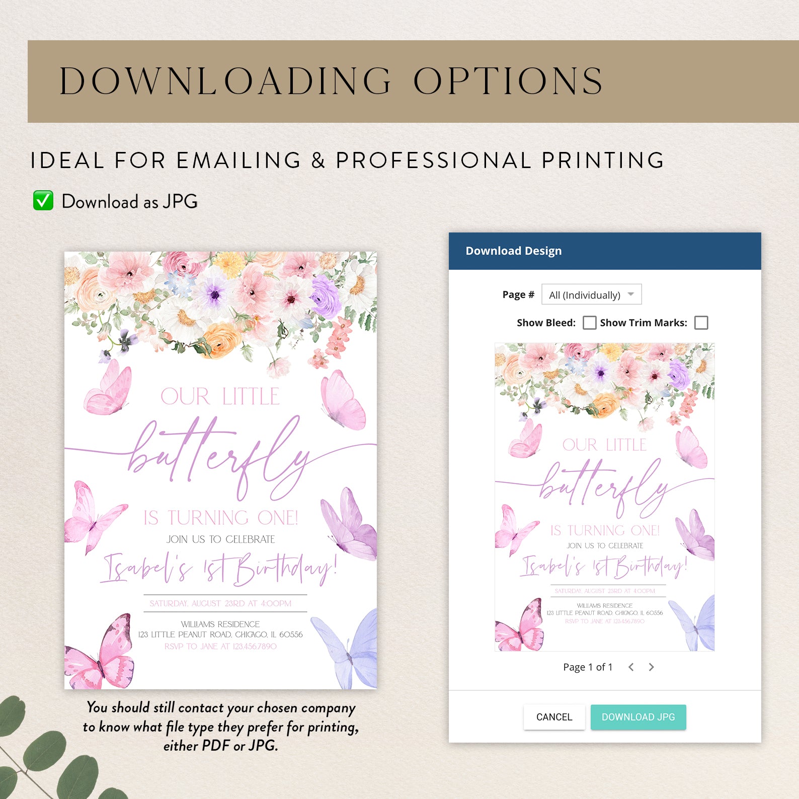 After purchase, you will receive an email from Corjl containing a link to edit and download your template.