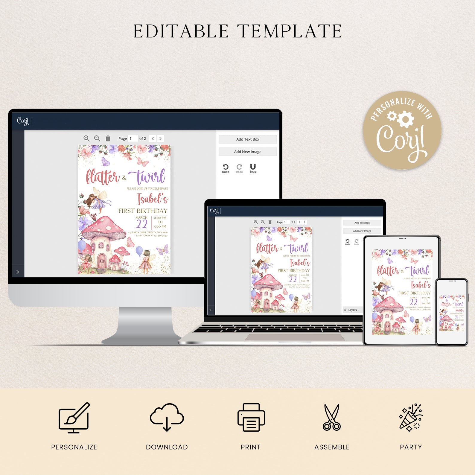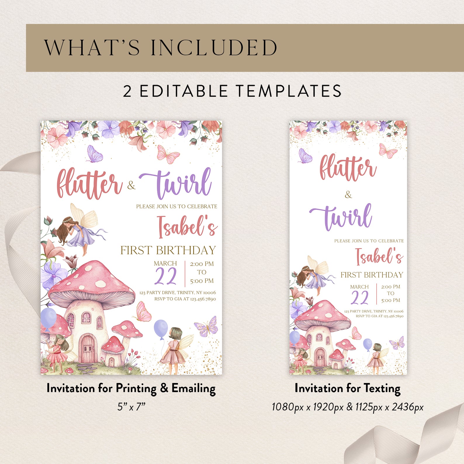 - Purchase this Flutter & Twirl Spring Birthday Invite Fairies & Butterflies template