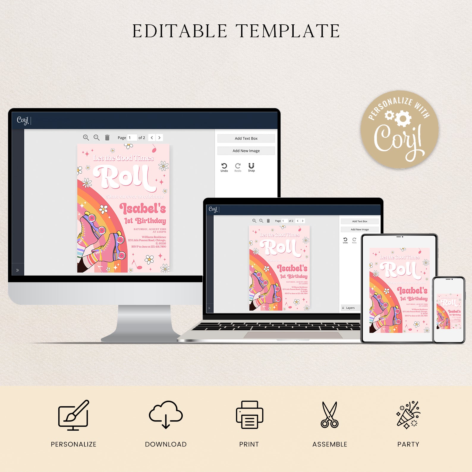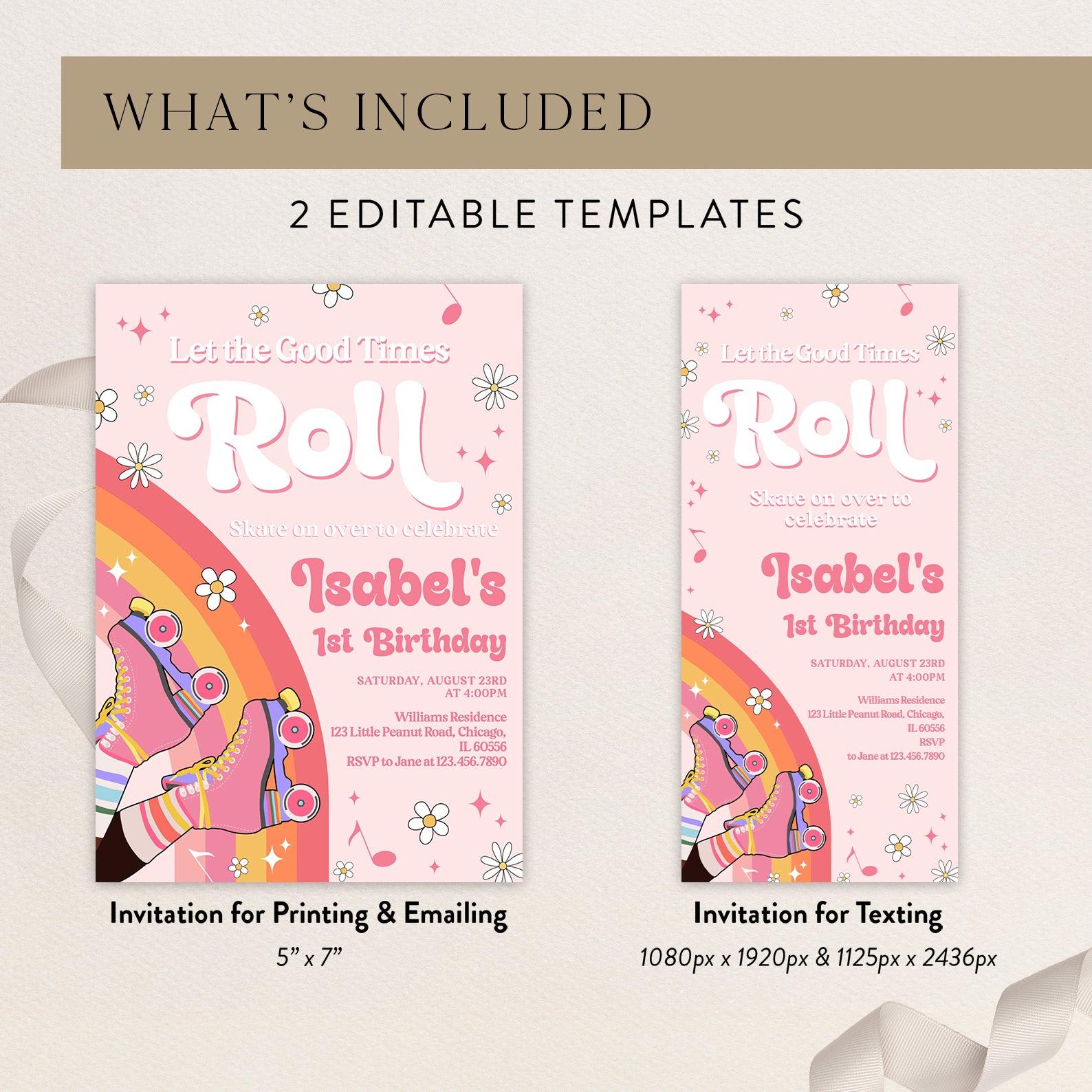 - Purchase this Let the Good Times Roll Skates Spring Birthday Invitation template