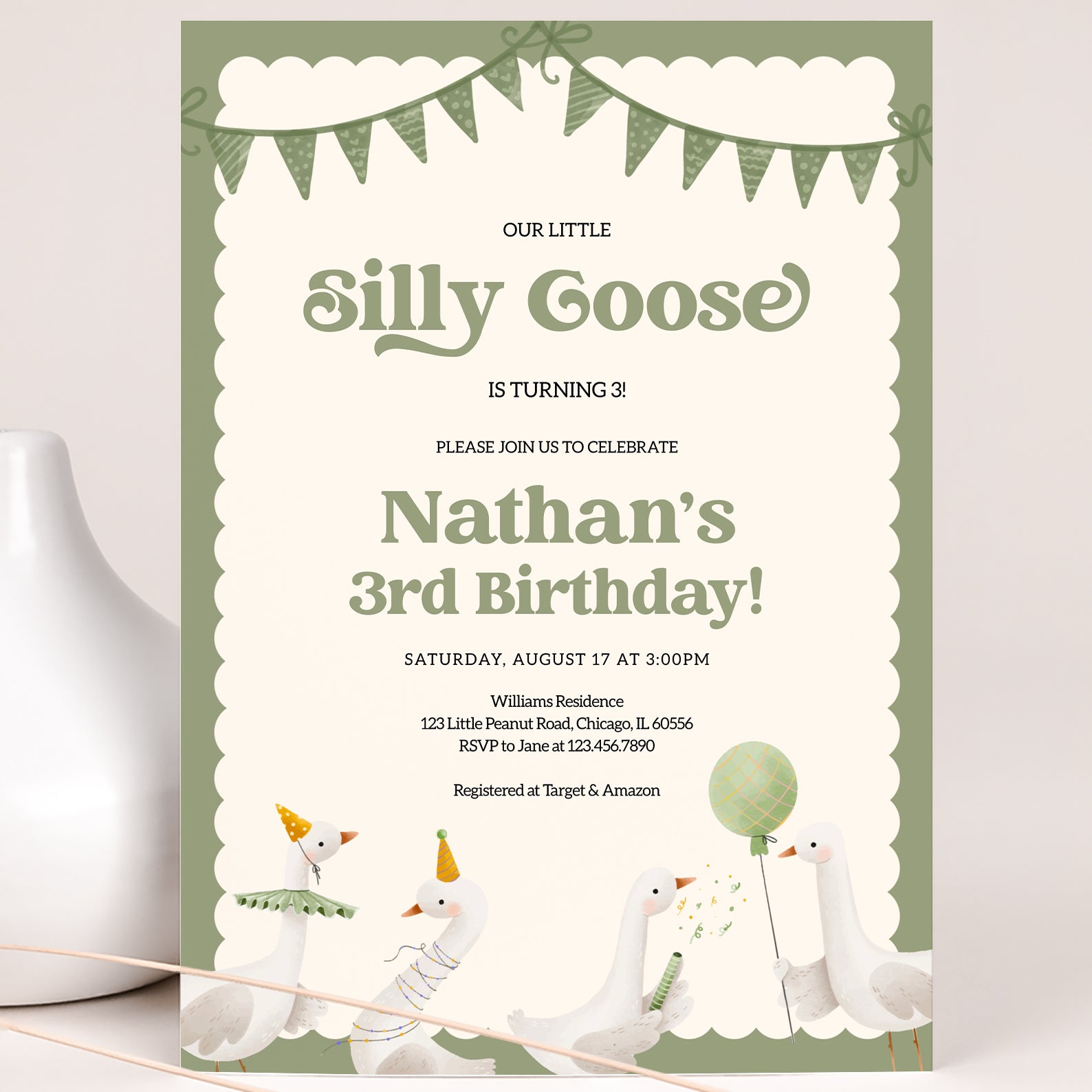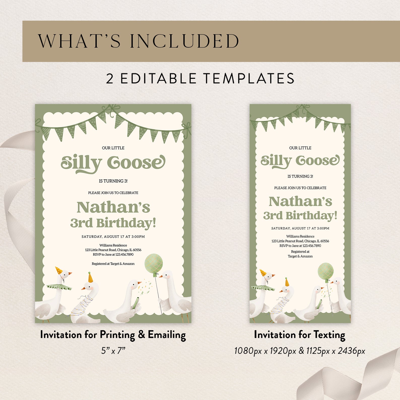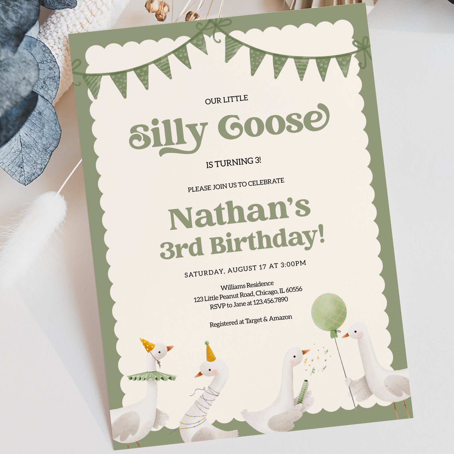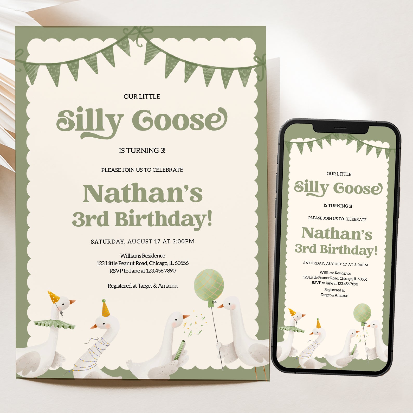 - Purchase this Little Silly Goose Spring Birthday Digital Invitation template