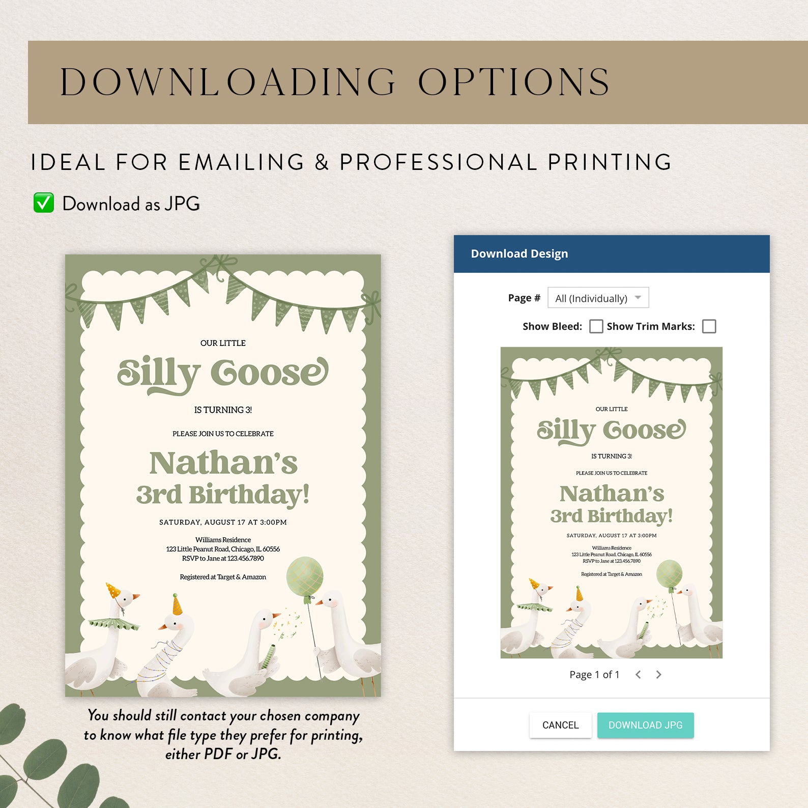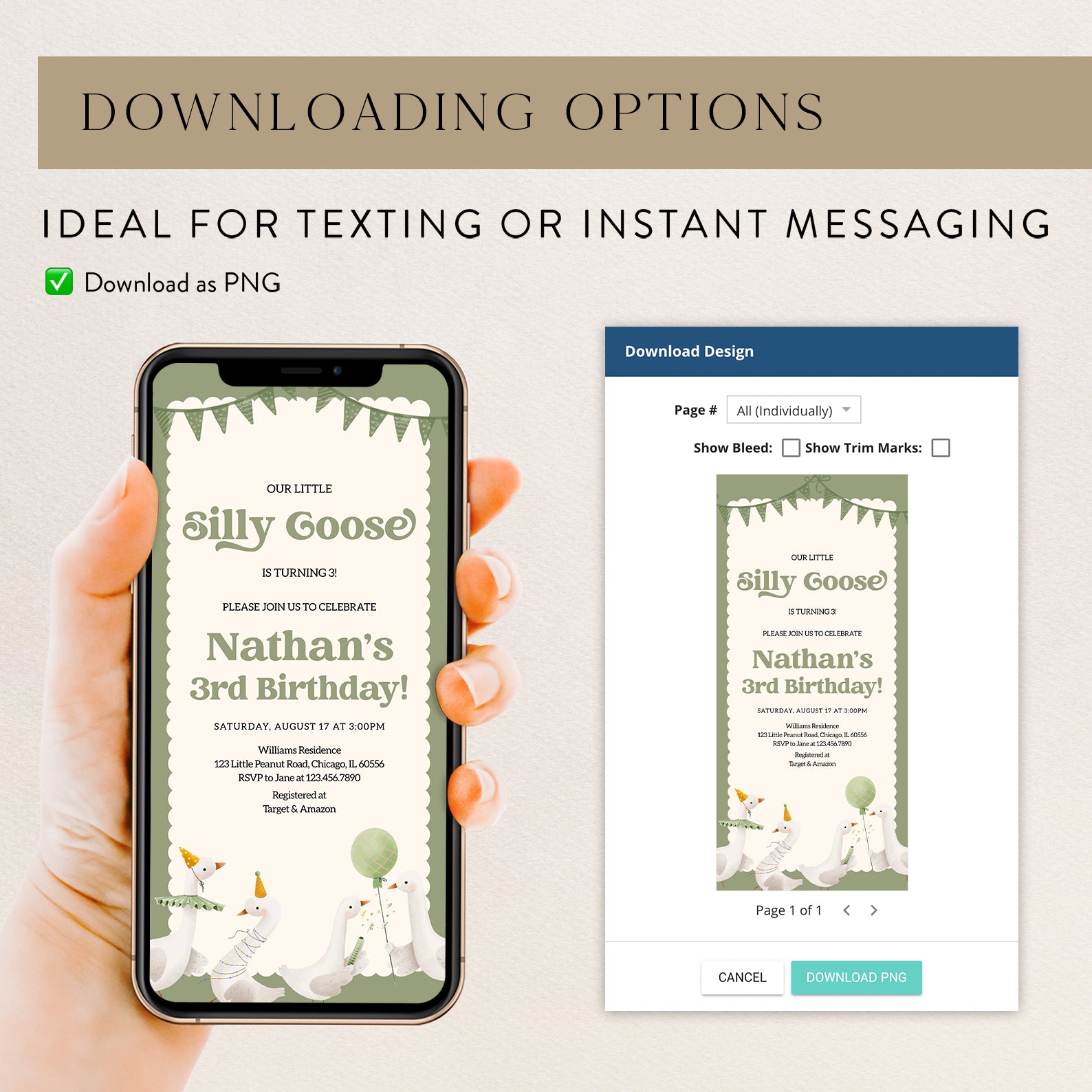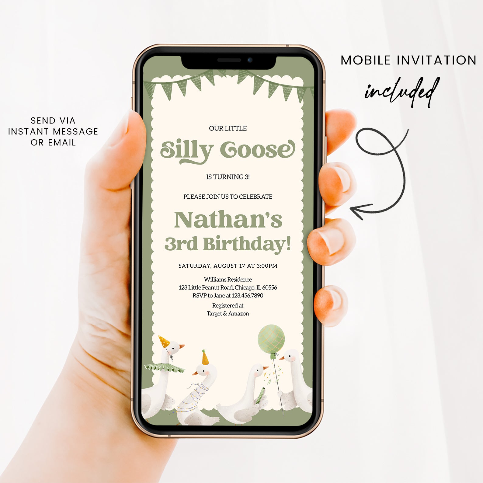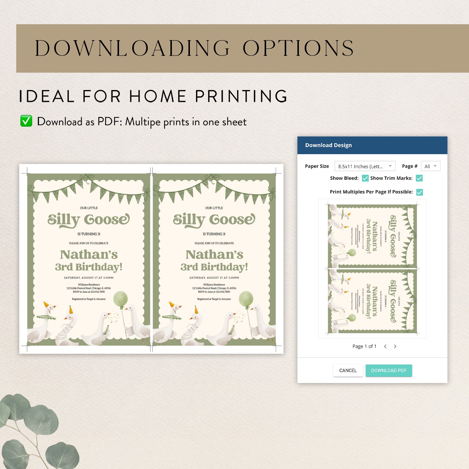 - Purchase this Little Silly Goose Spring Birthday Digital Invitation template
