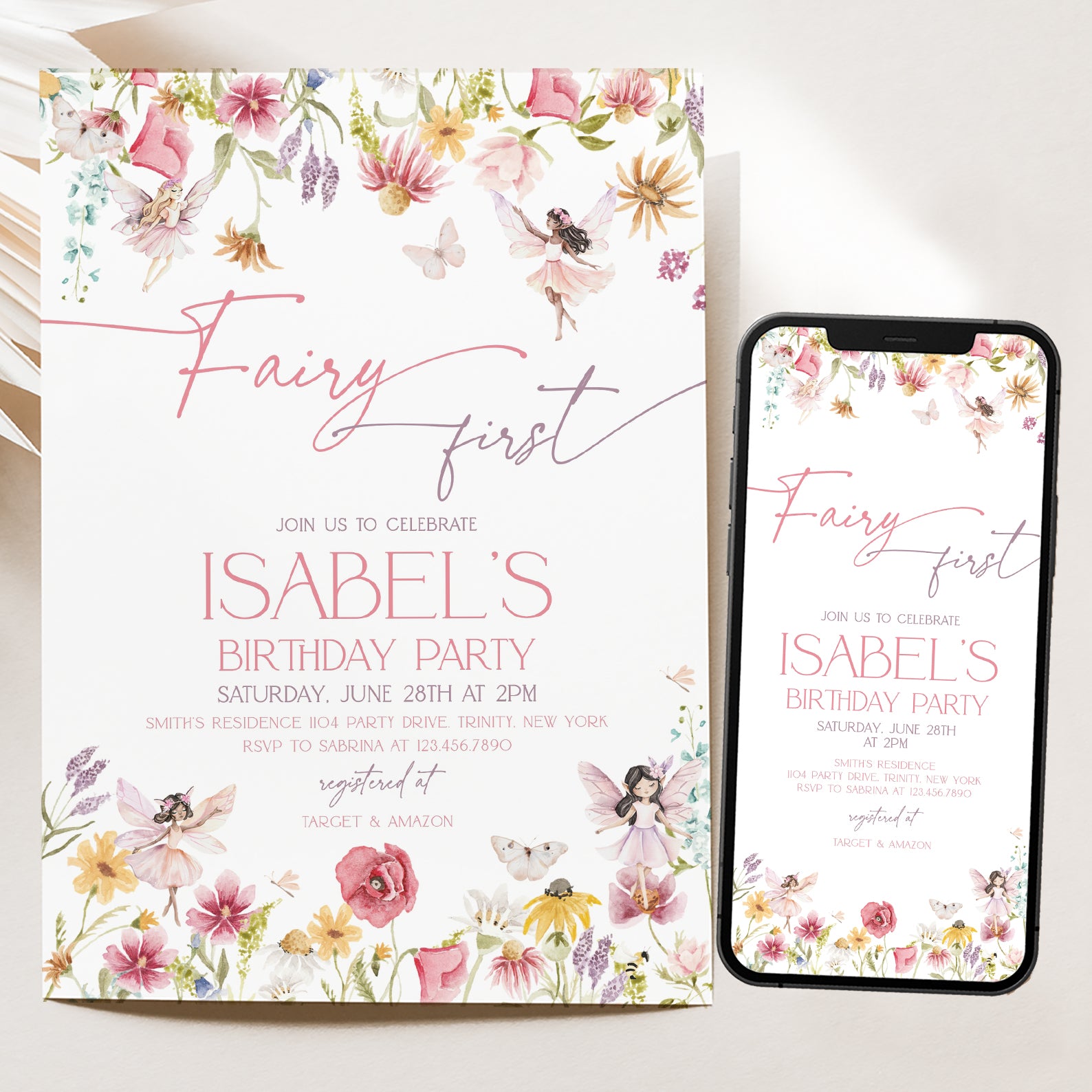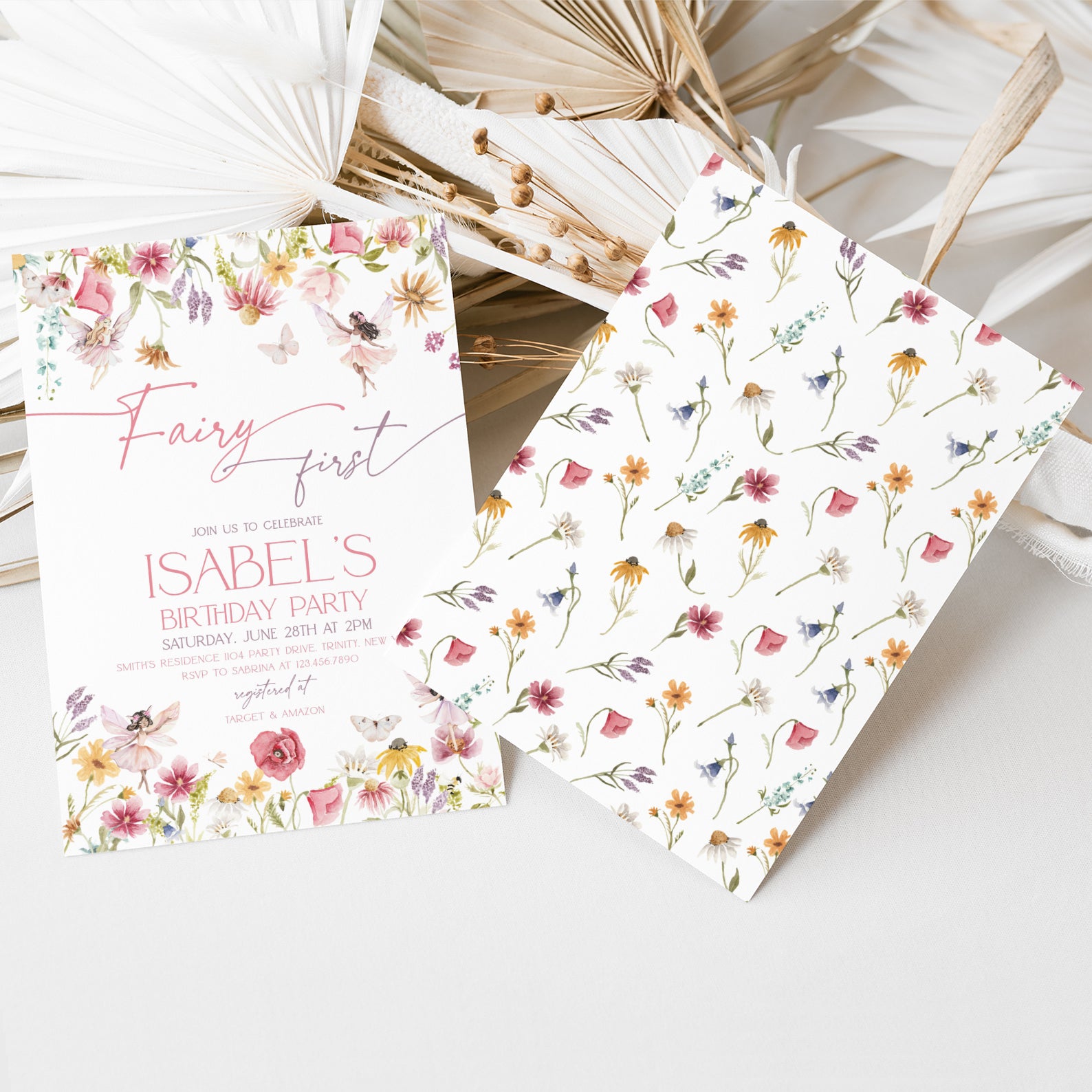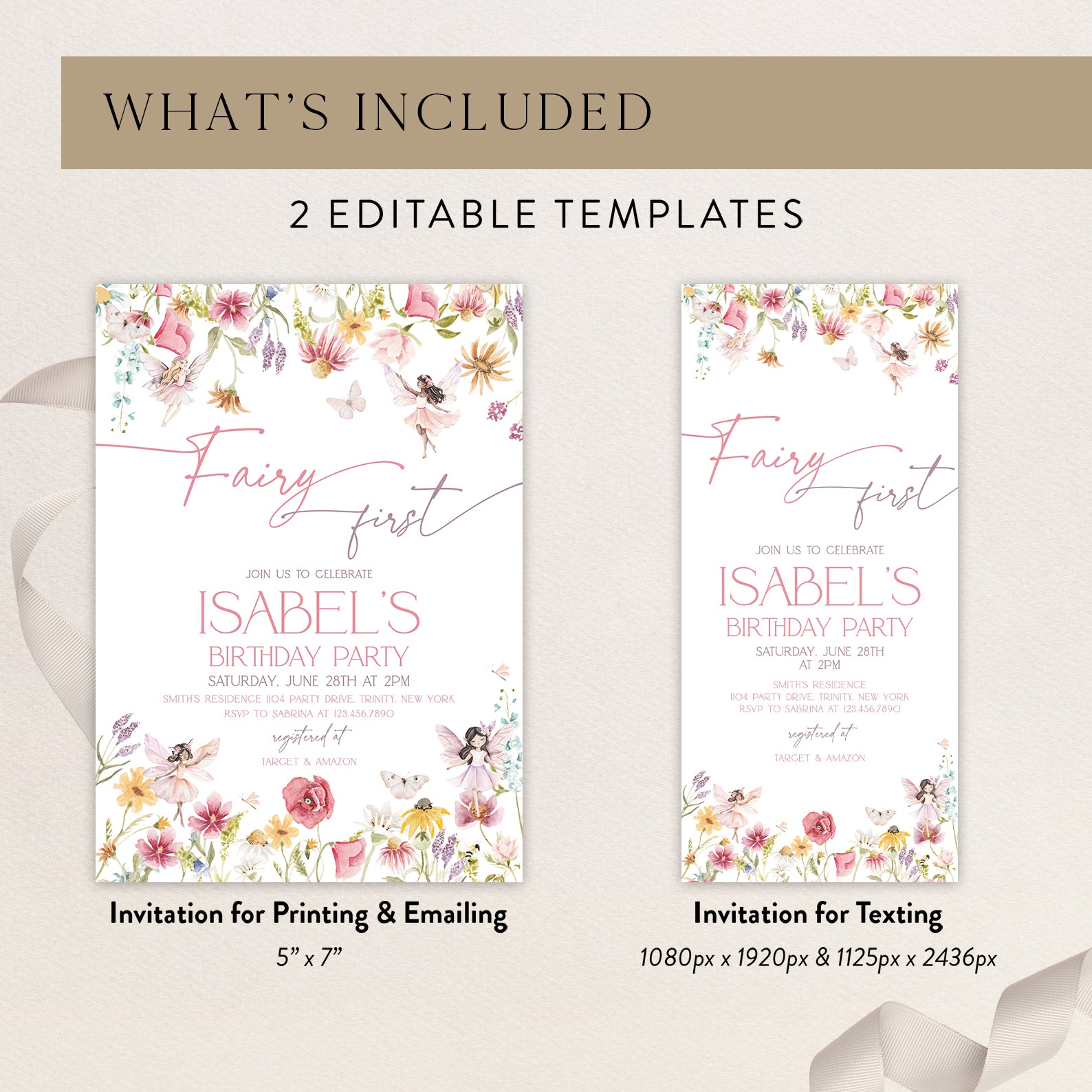 - Purchase this Spring Fairy First Birthday Digital Invitation template