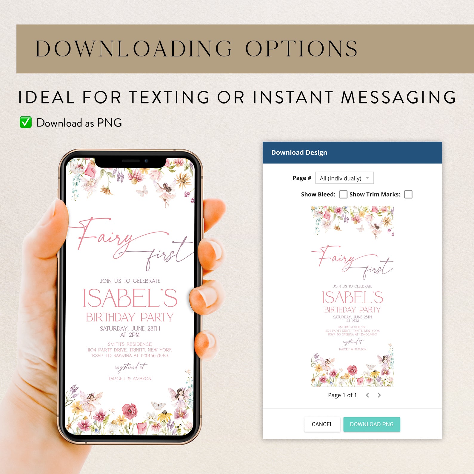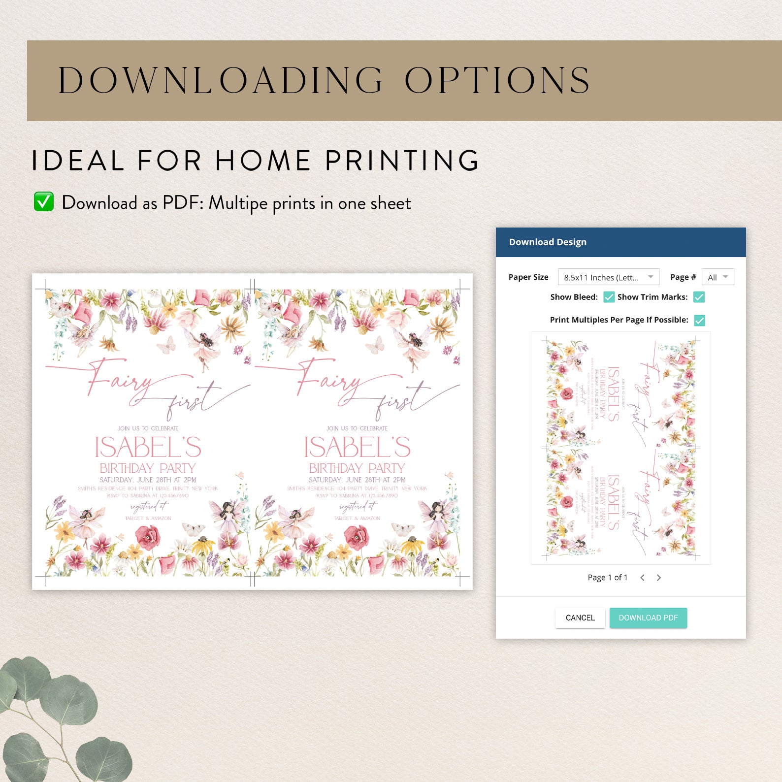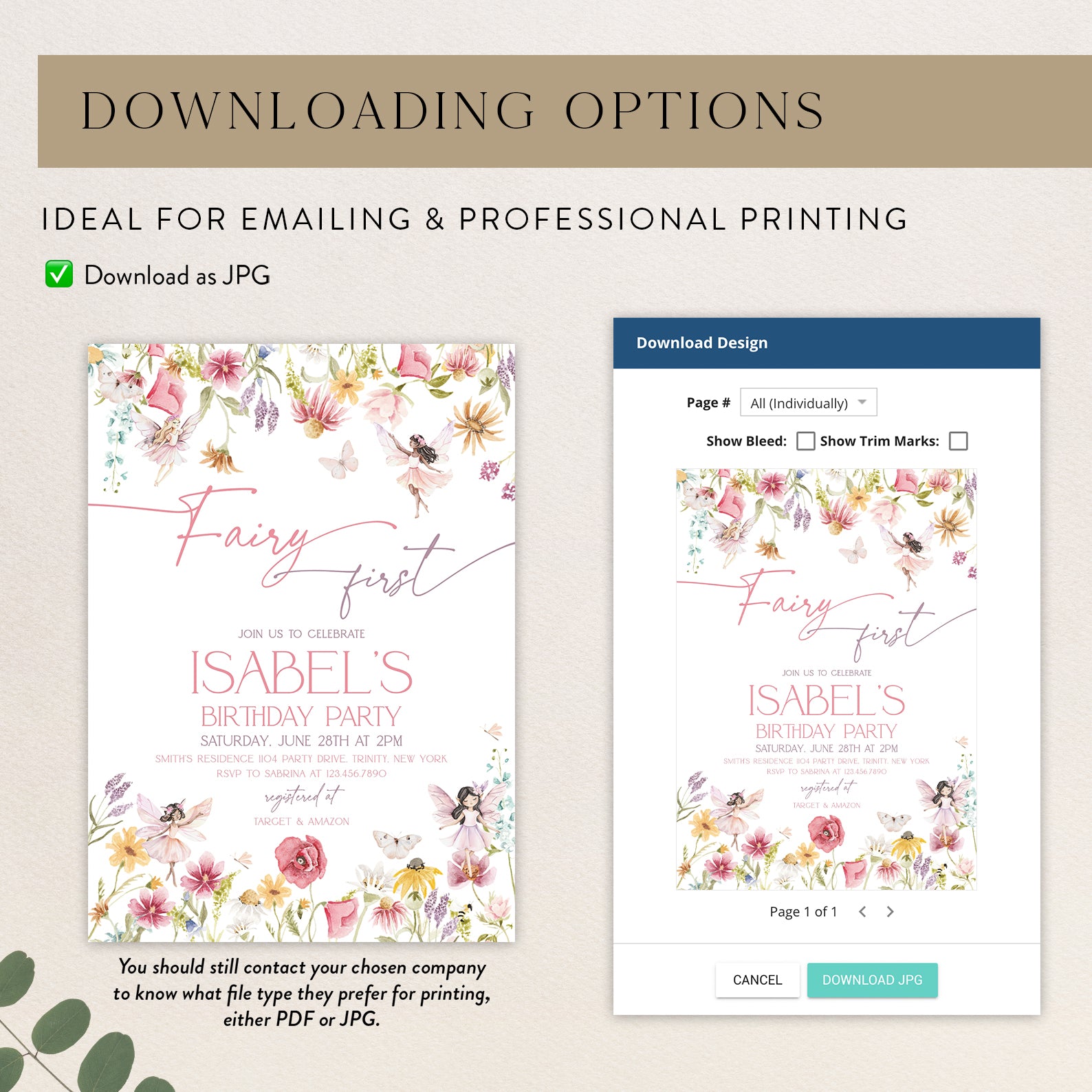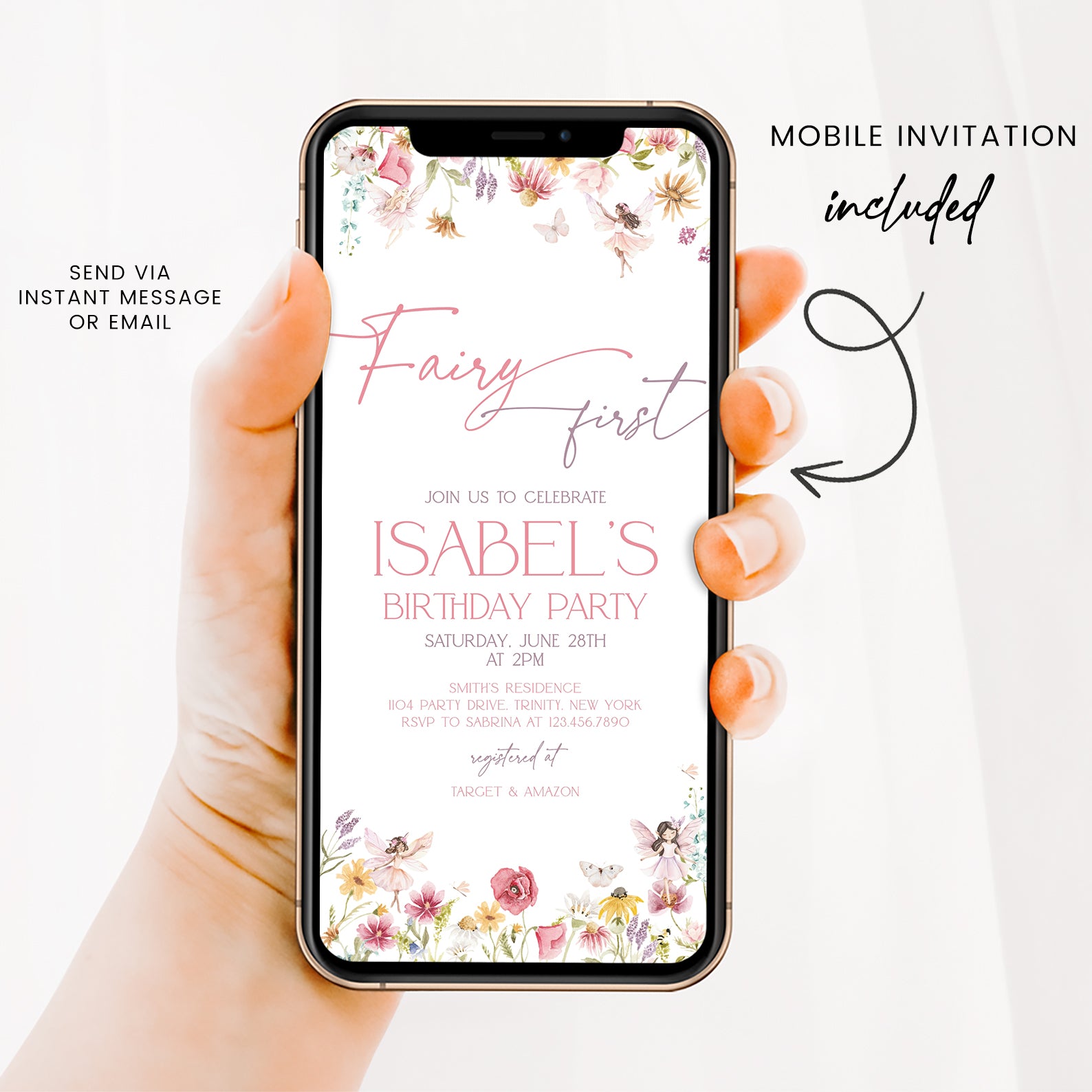 - Purchase this Spring Fairy First Birthday Digital Invitation template
