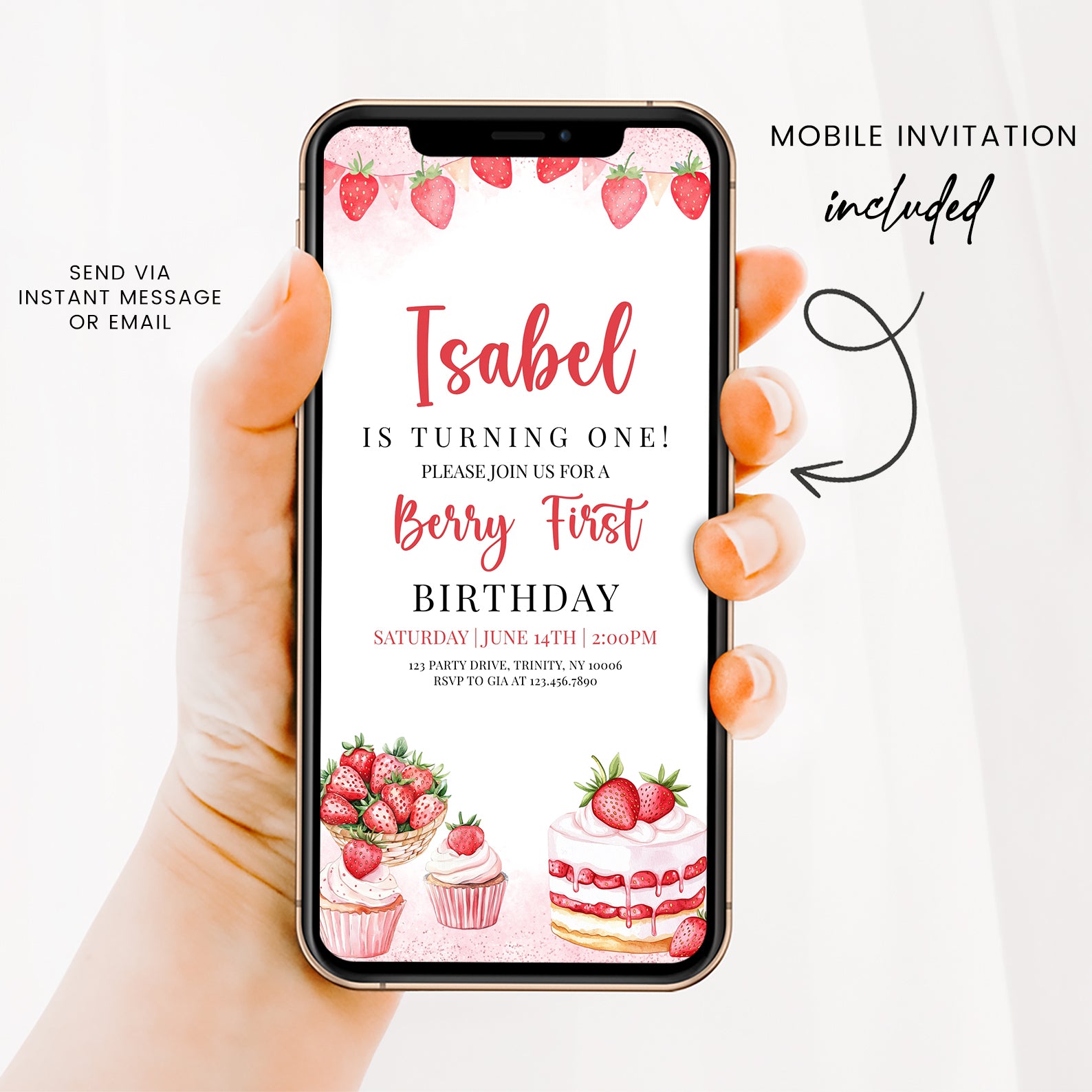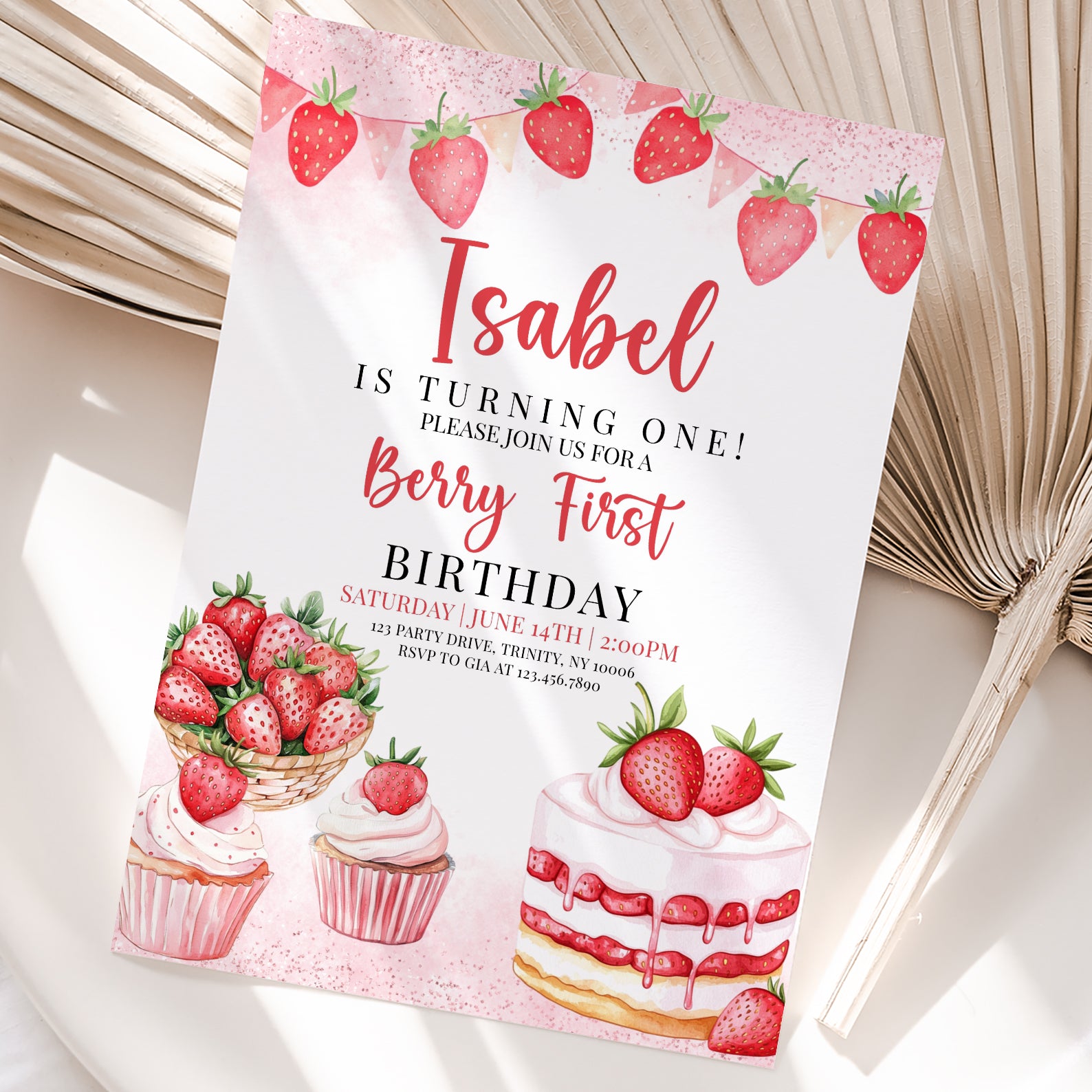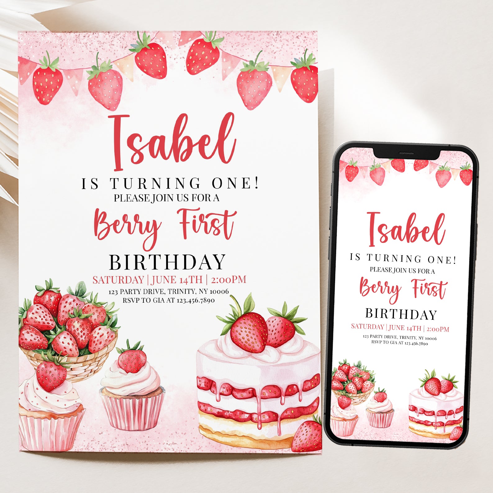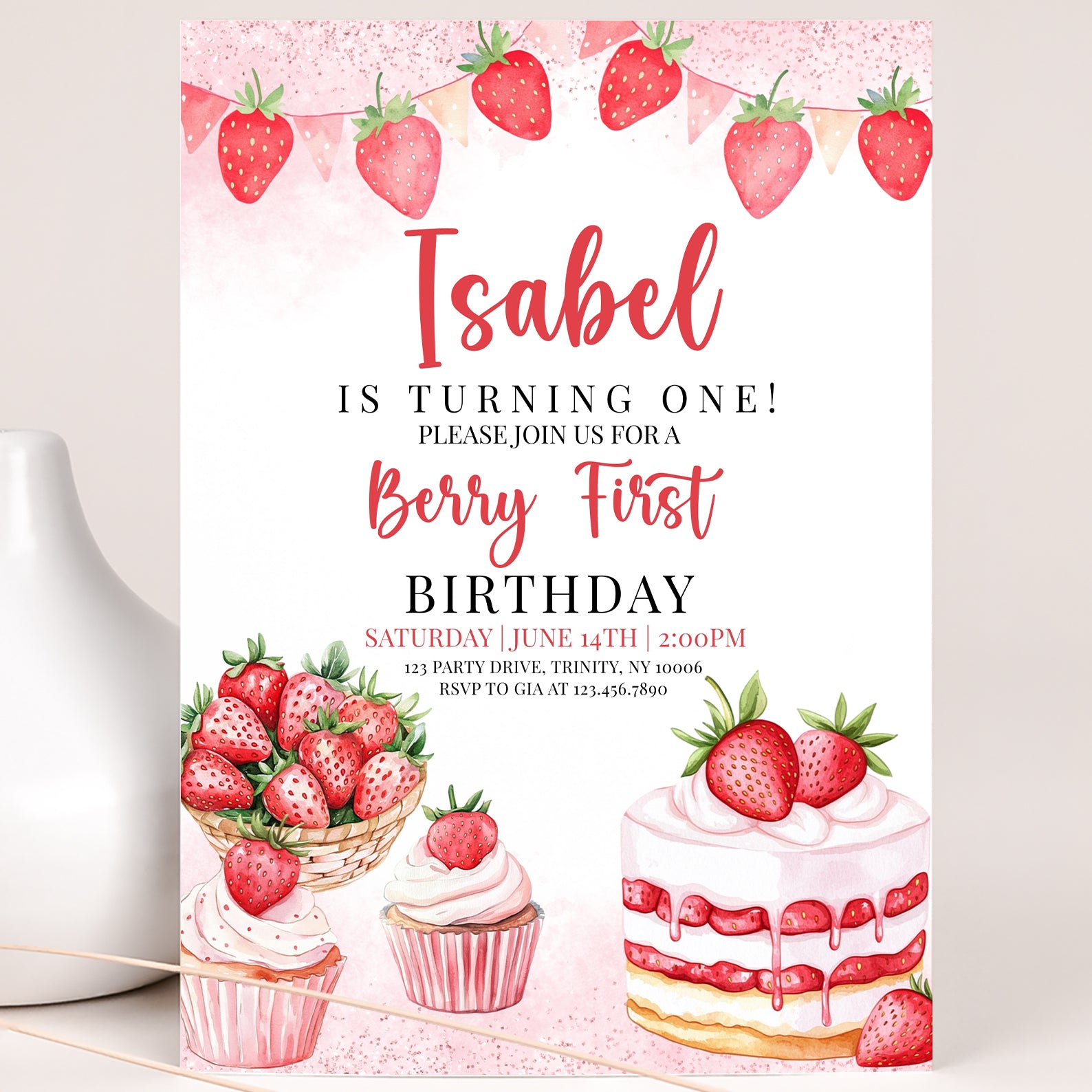 - Purchase this Sweet Strawberry 1st Birthday Digital Invite template