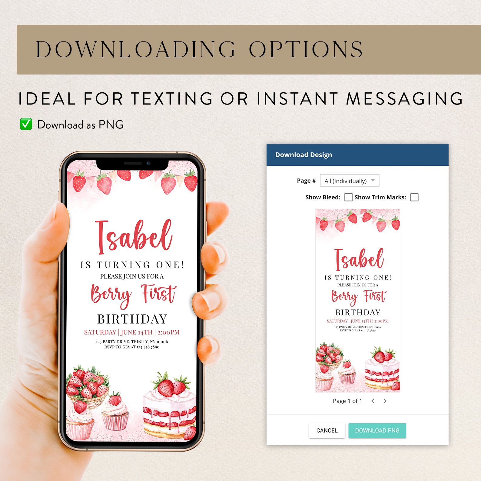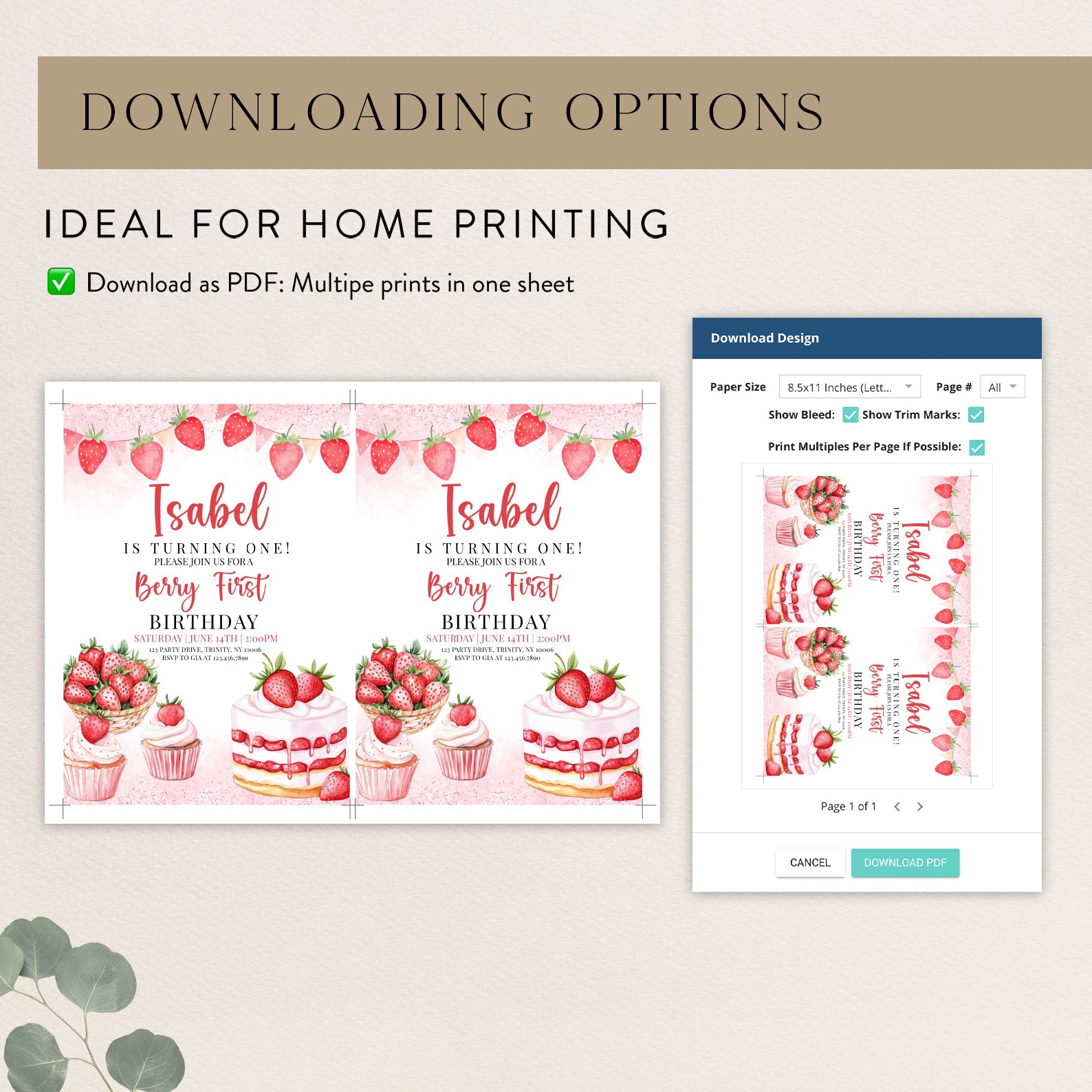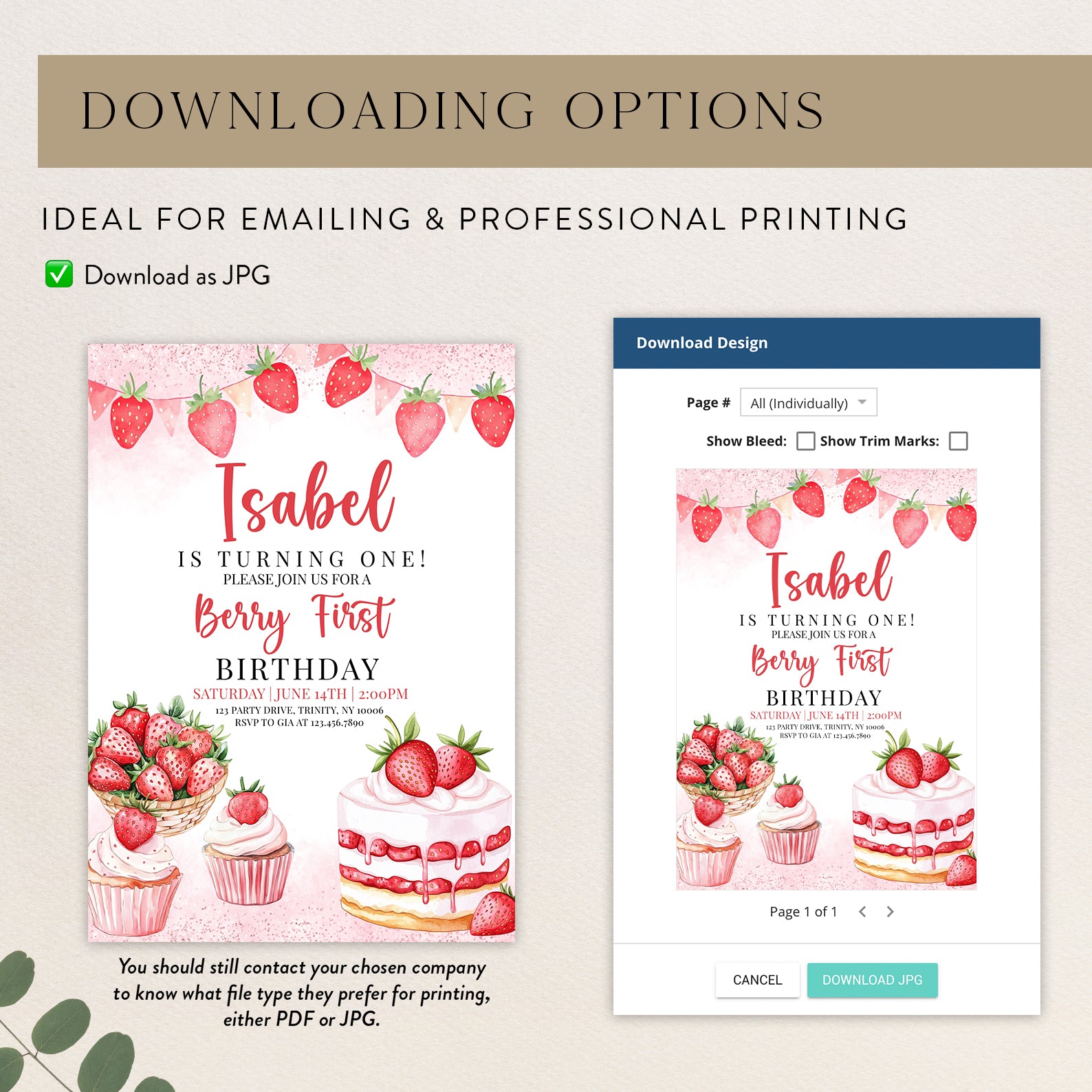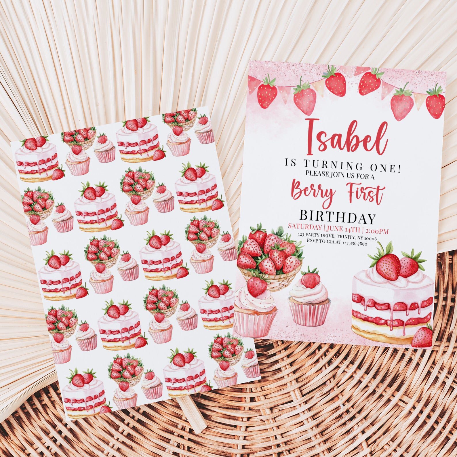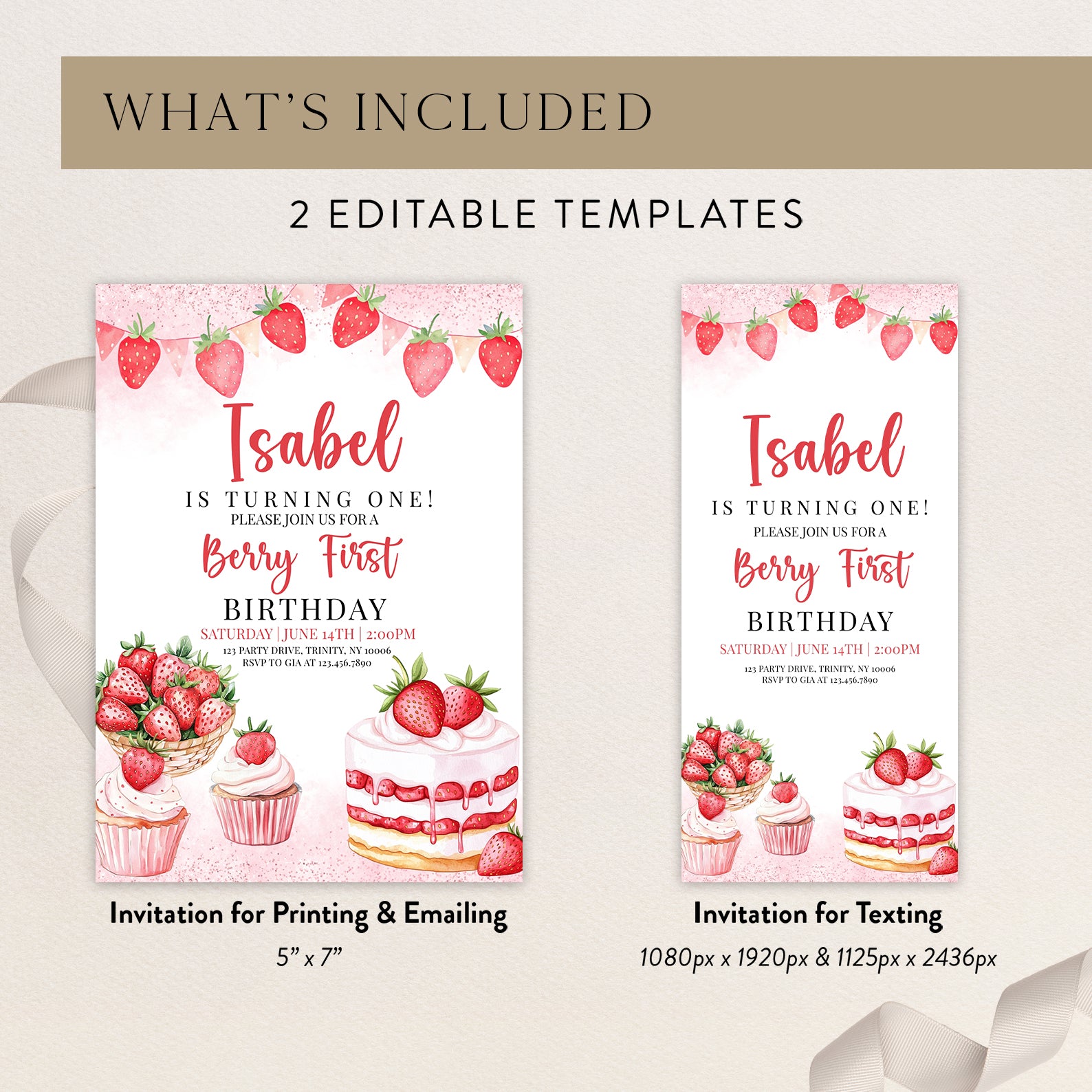 - Purchase this Sweet Strawberry 1st Birthday Digital Invite template