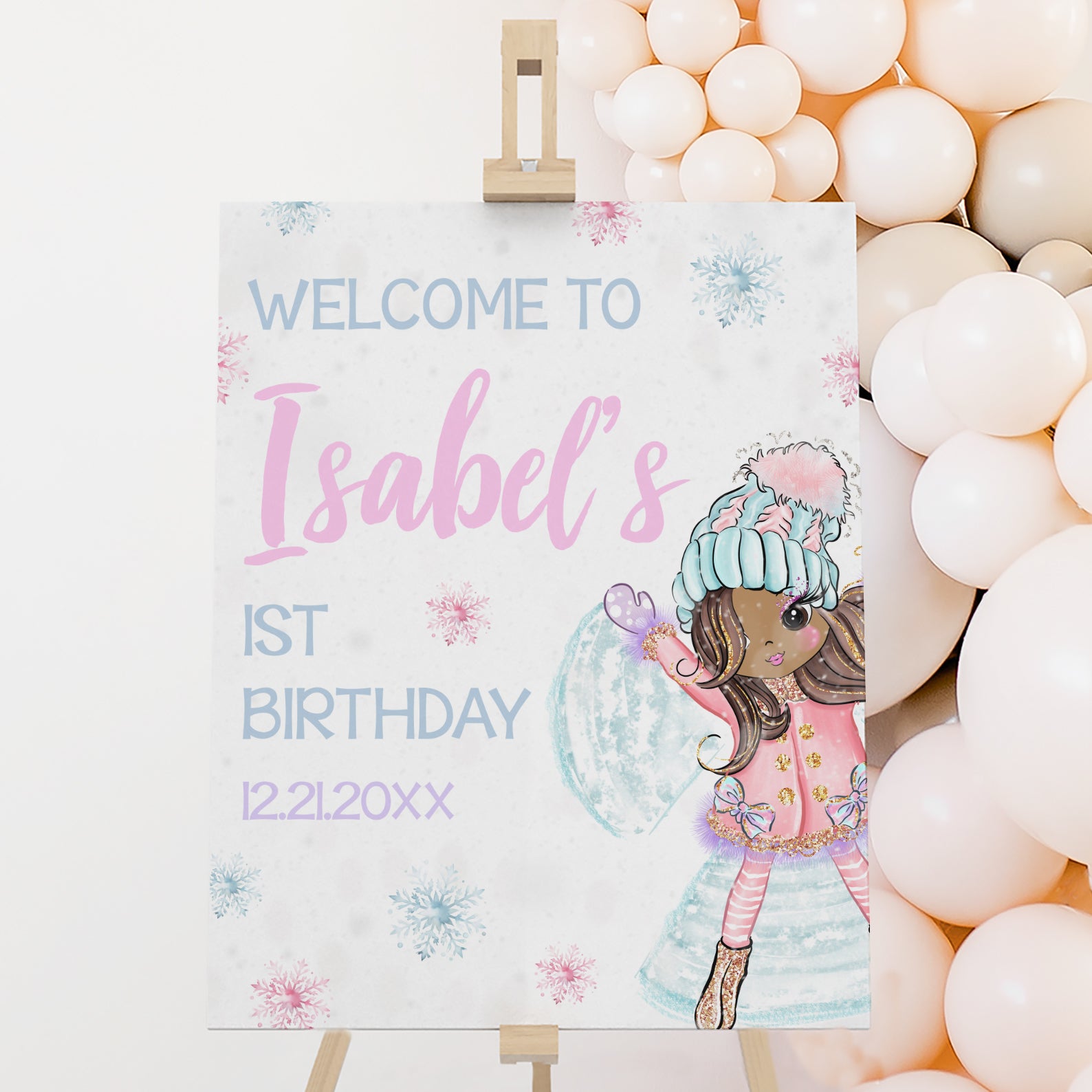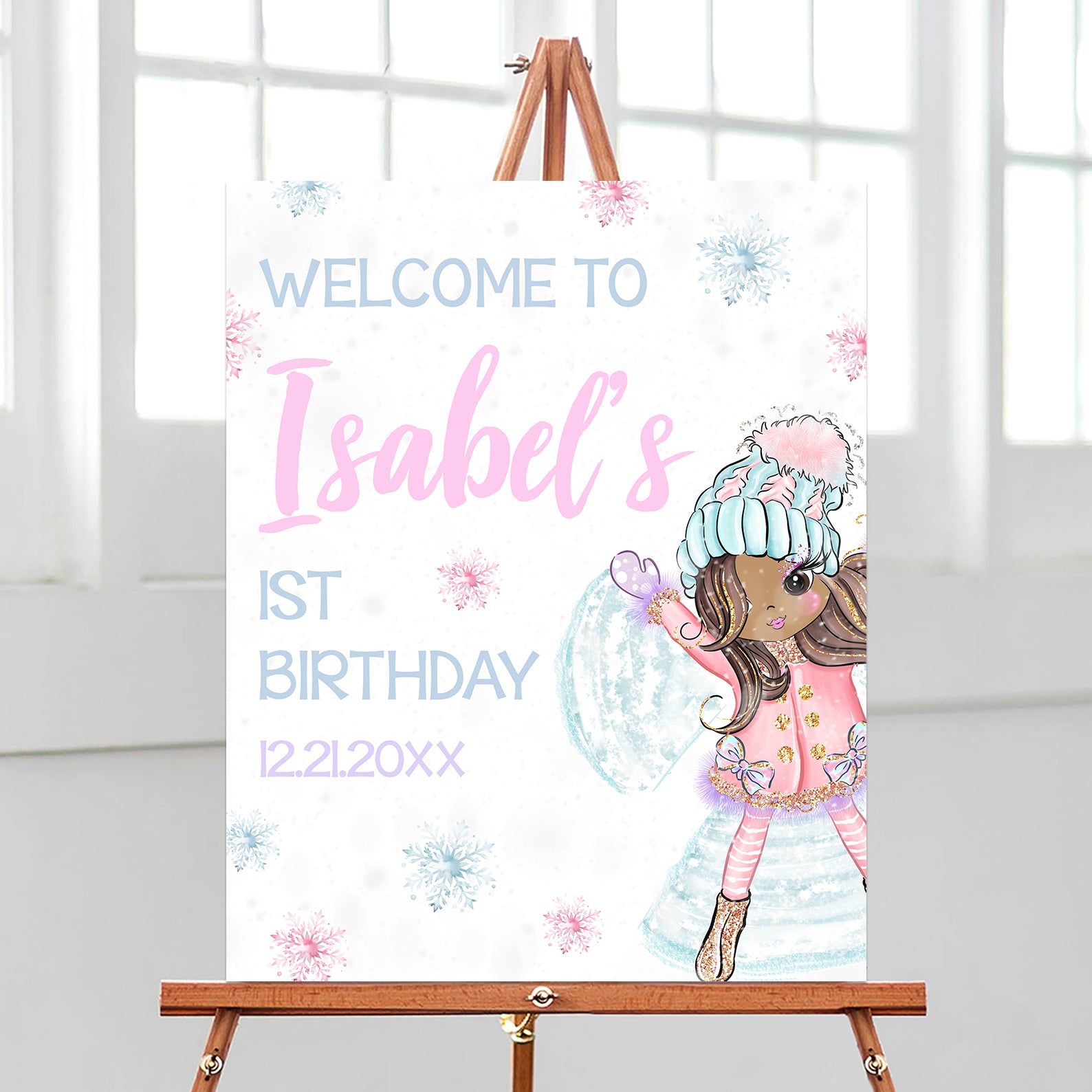 - Purchase this 1st Birthday Winter Welcome Sign: Snow Fun & Winter Magic template