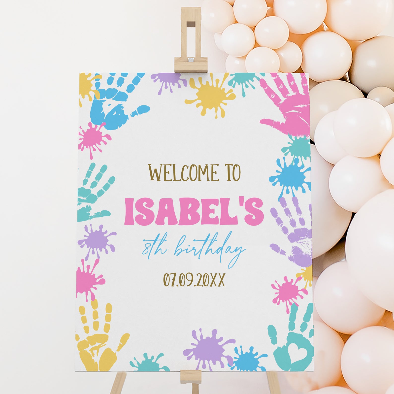 Kick off the fun with our vibrant welcome sign designed for a high-energy 8th birthday celebration! Bursting with colorful handprint designs and playful paint splashes, this eye-catching sign sets the perfect tone for a creative and joy-filled party. The cheerful design instantly adds a splash of excitement to your entryway, guiding guests into a celebration full of laughter, color, and childhood wonder. Ideal for an art-themed or hands-on party, this printable welcome sign is a fun and festive way to make a bold first impression!