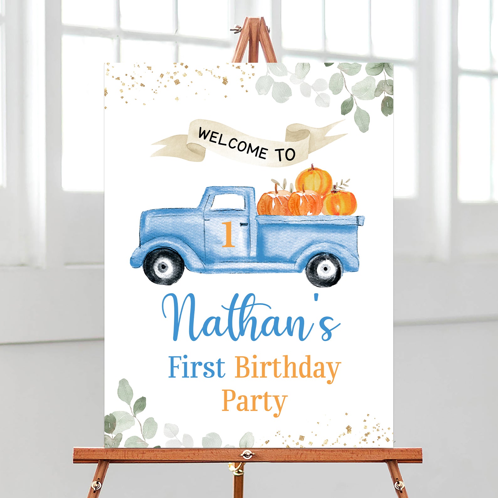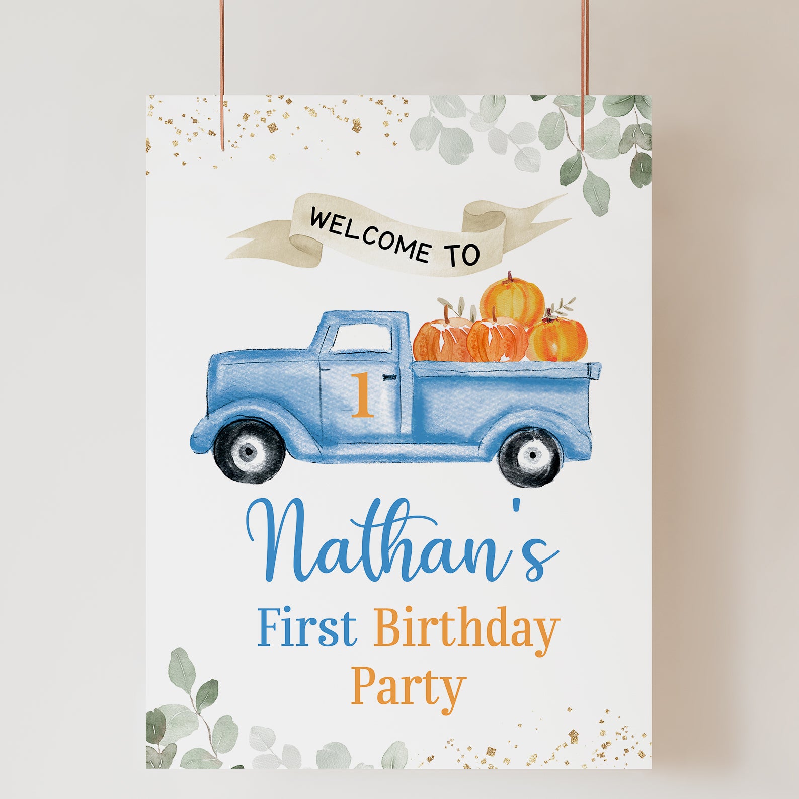 - Purchase this Little Pumpkin Turns One: Blue Truck Fall Welcome Sign template
