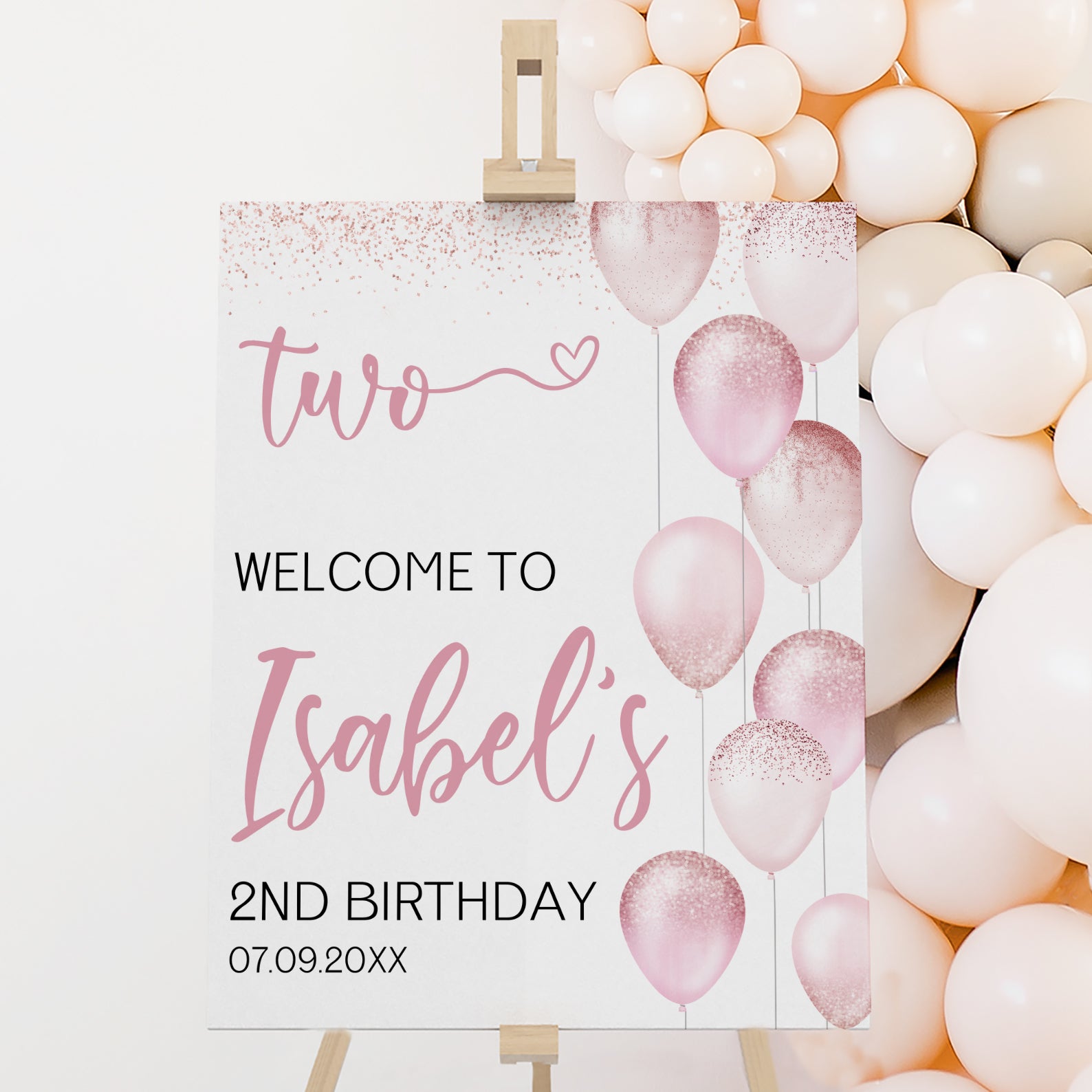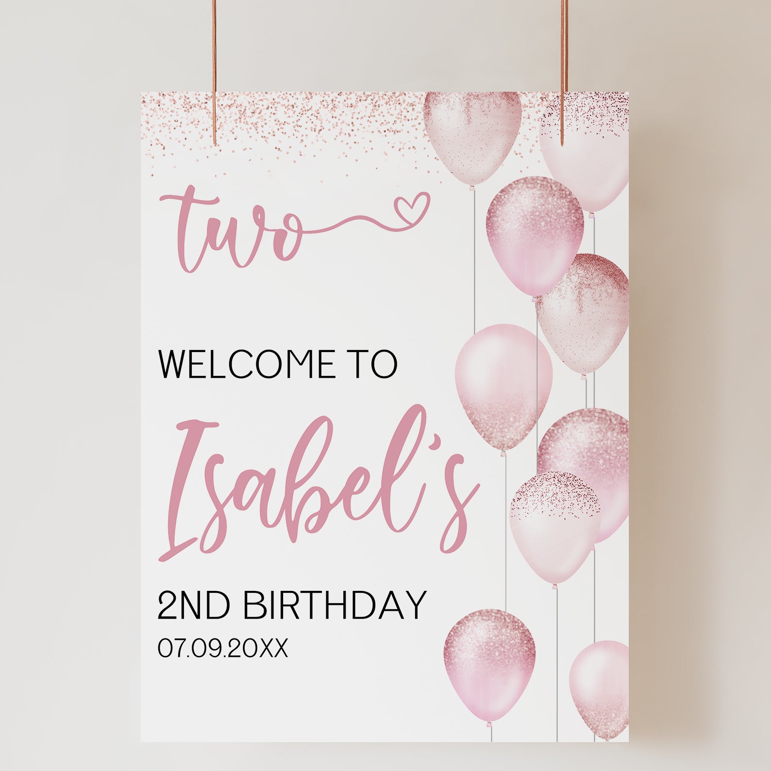 - Purchase this Pink Balloon Bliss: 2nd Birthday Digital Welcome Sign template