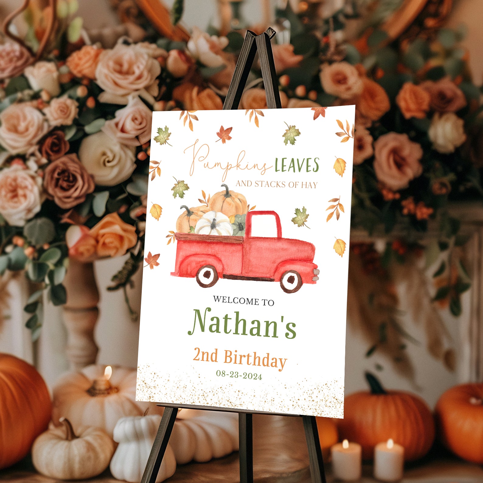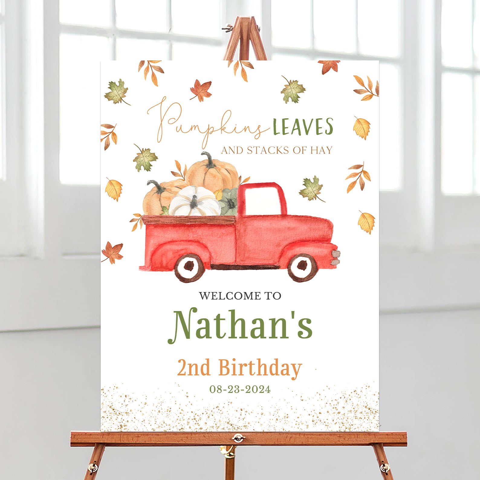 - Purchase this Pumpkins & Hay 2nd Birthday Welcome Sign: Red Truck Theme template
