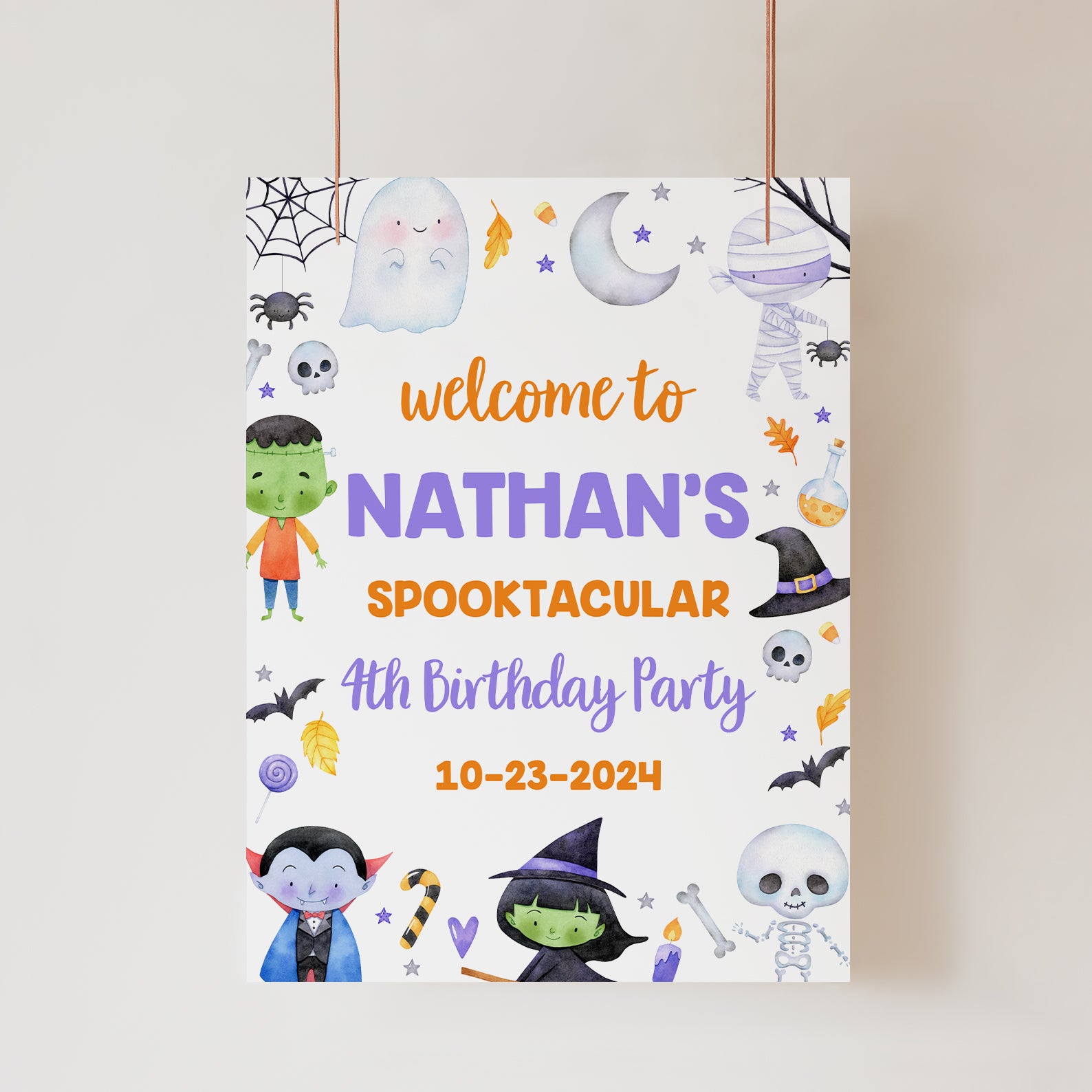 - Purchase this Spooktacular 4th Birthday Costume Party Welcome Sign template