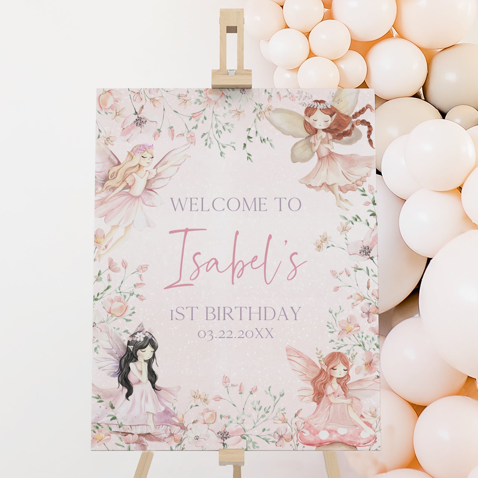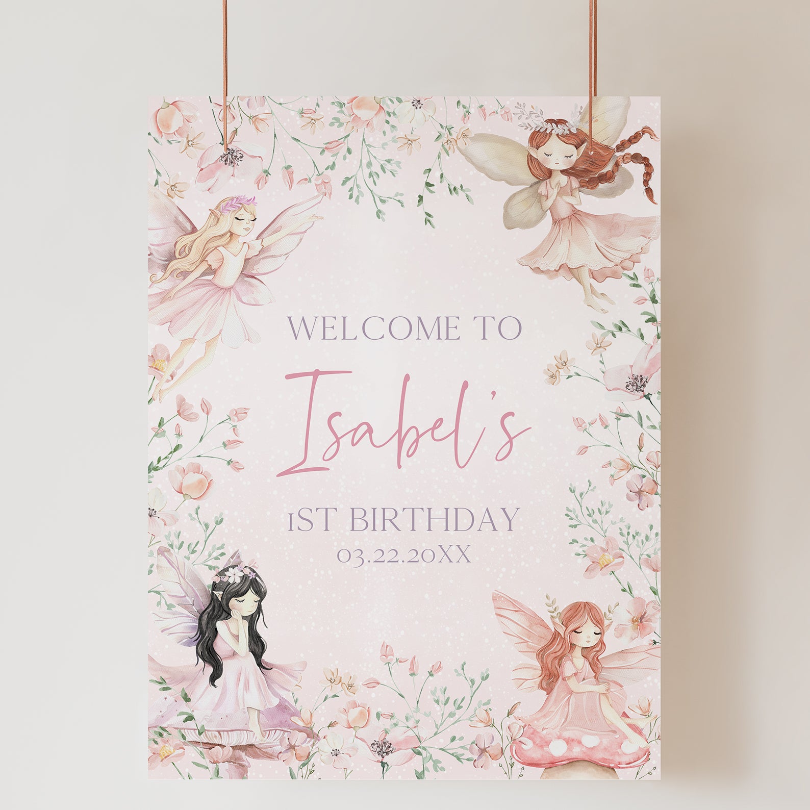 Whimsical Fairy Digital Birthday Welcome Sign: Pink & Floral Theme