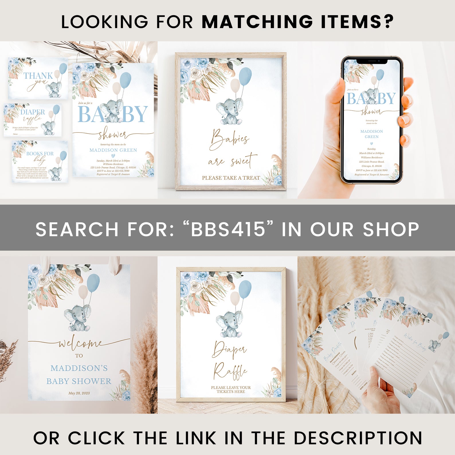 - Purchase this Blue Baby Shower Game Bundle: Whimsical Elephant & Boho Florals template