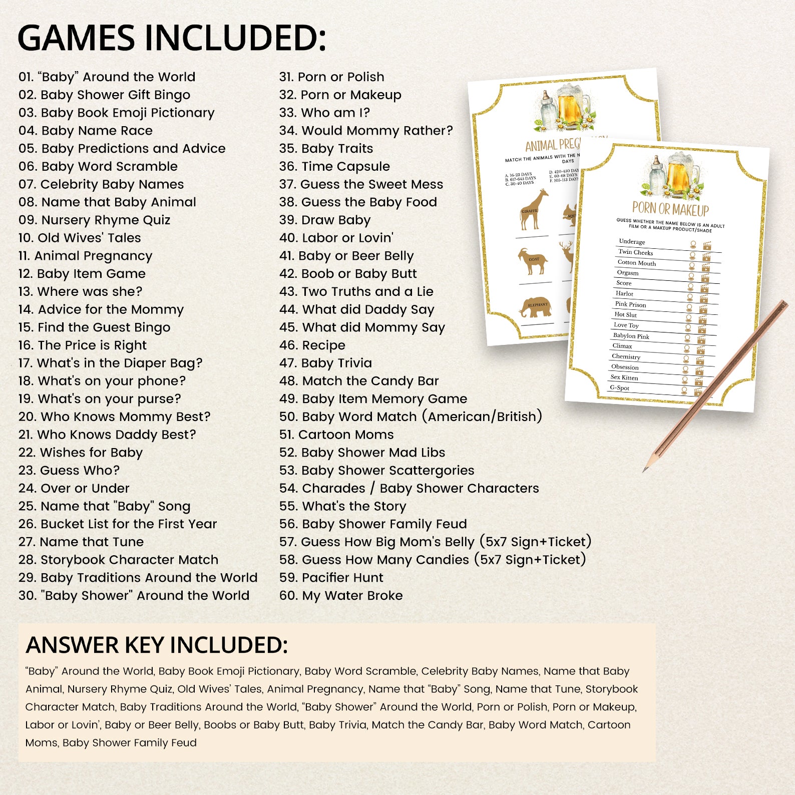 Brew Before Baby’s Due Game Bundle Gold Ticket & Beer Theme