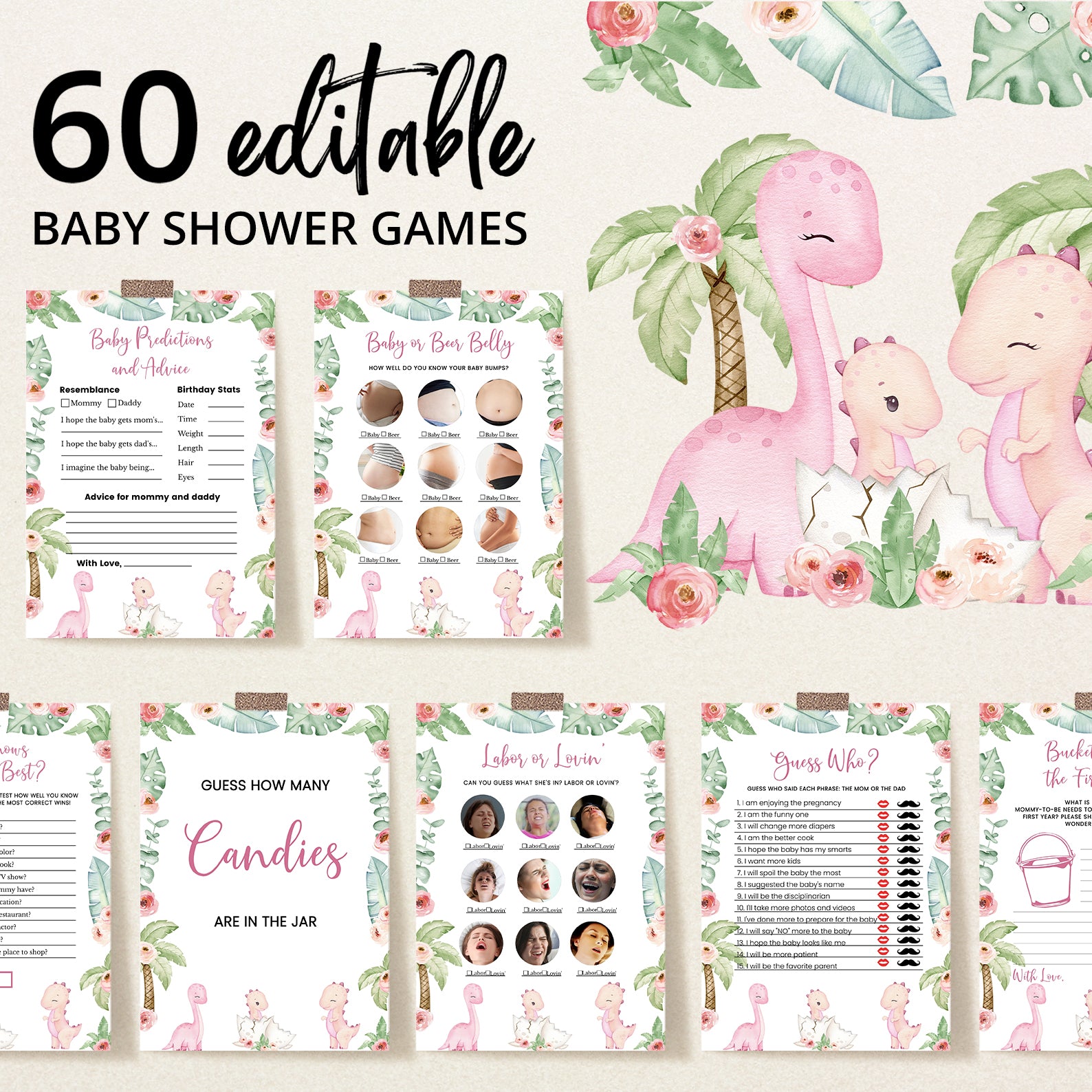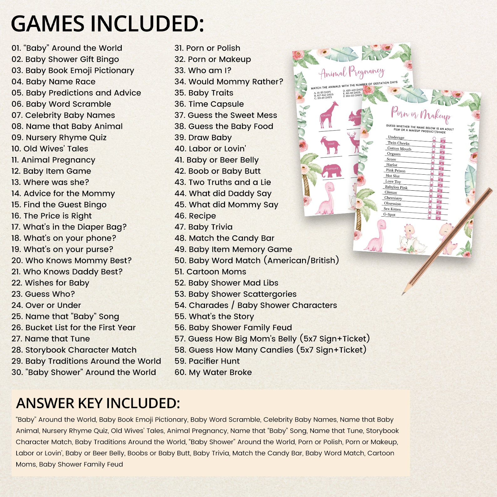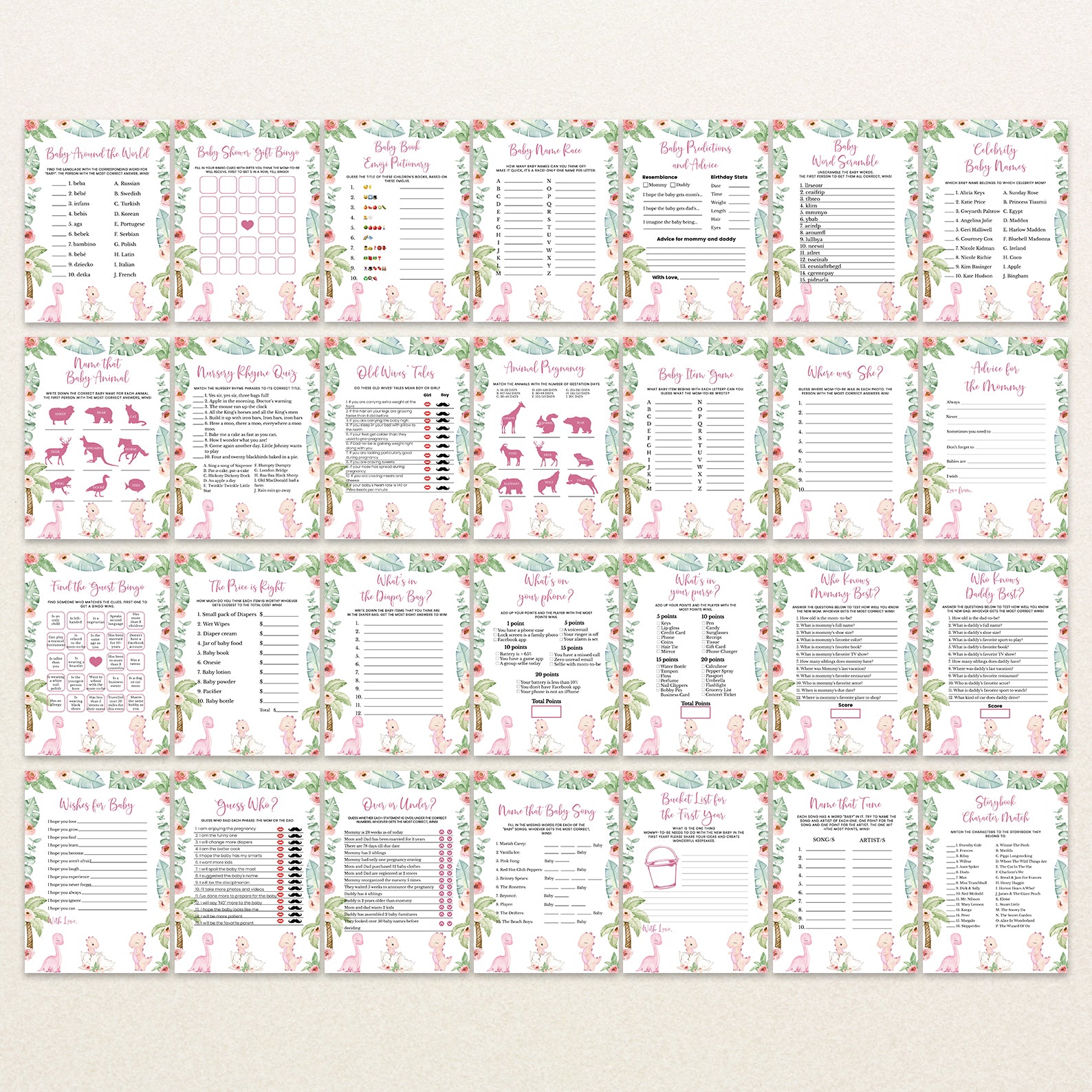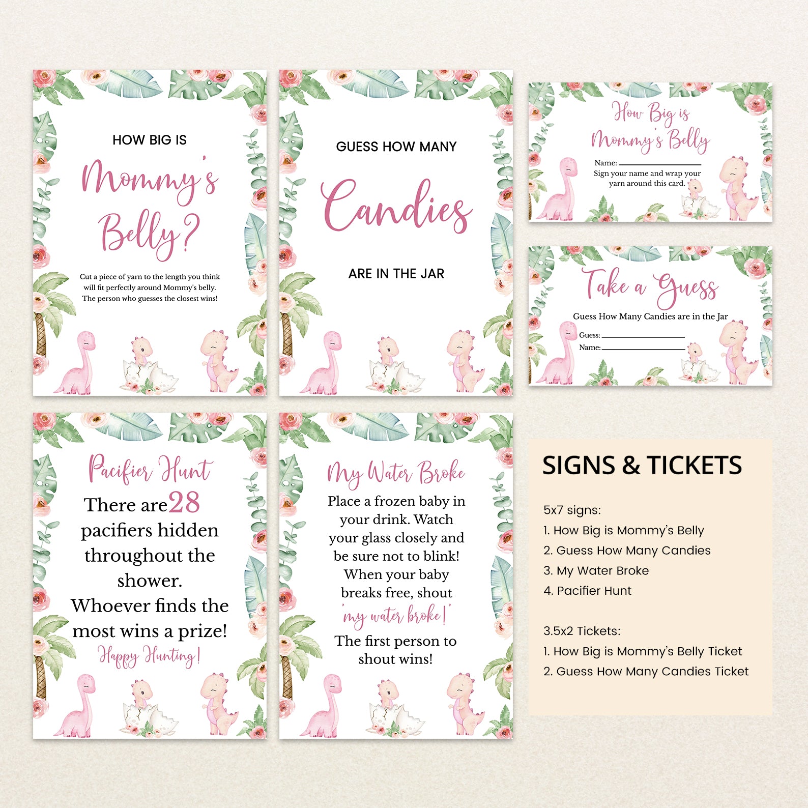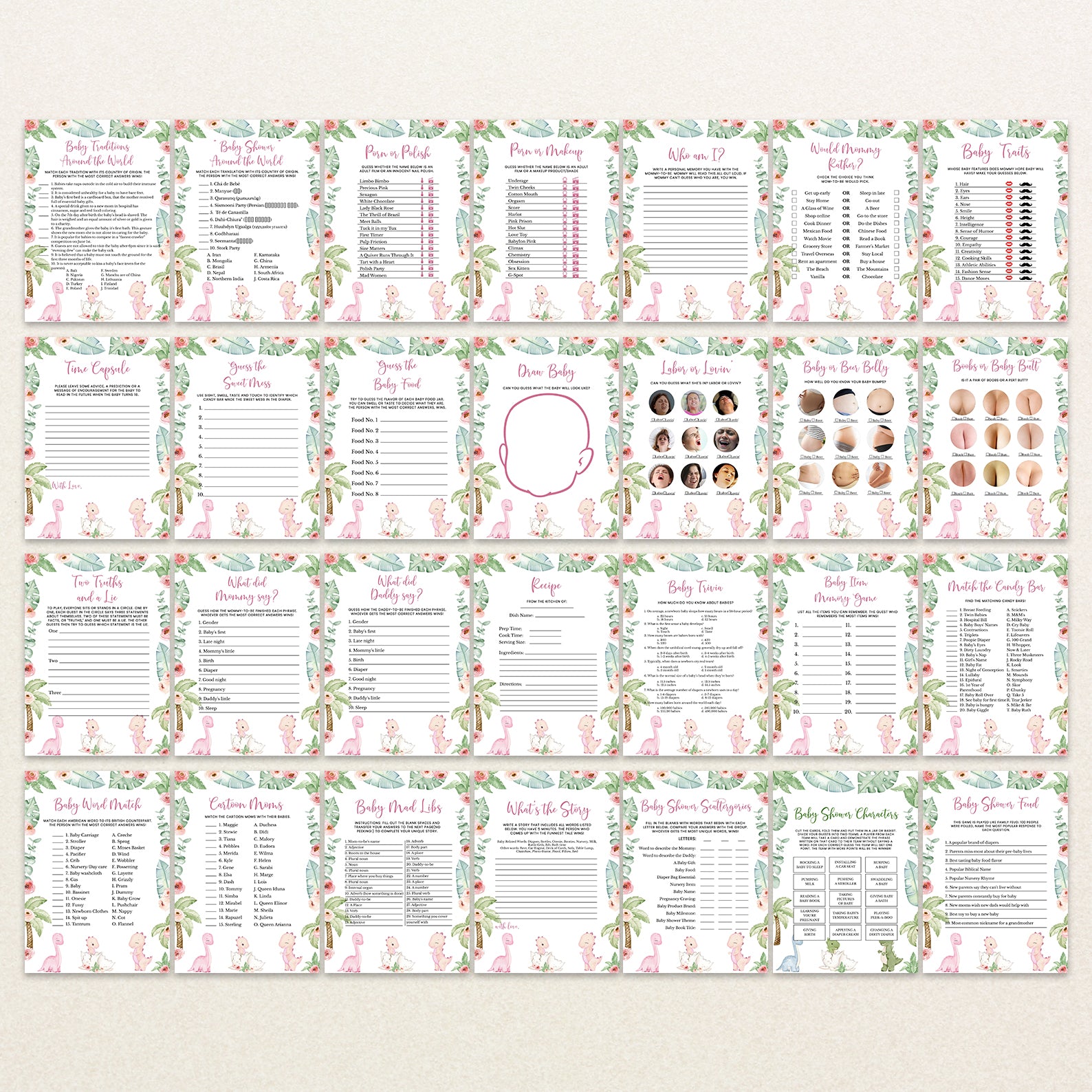 - Purchase this Dinosaur Baby Shower Digital Game Bundle: Pink Jungle Theme template
