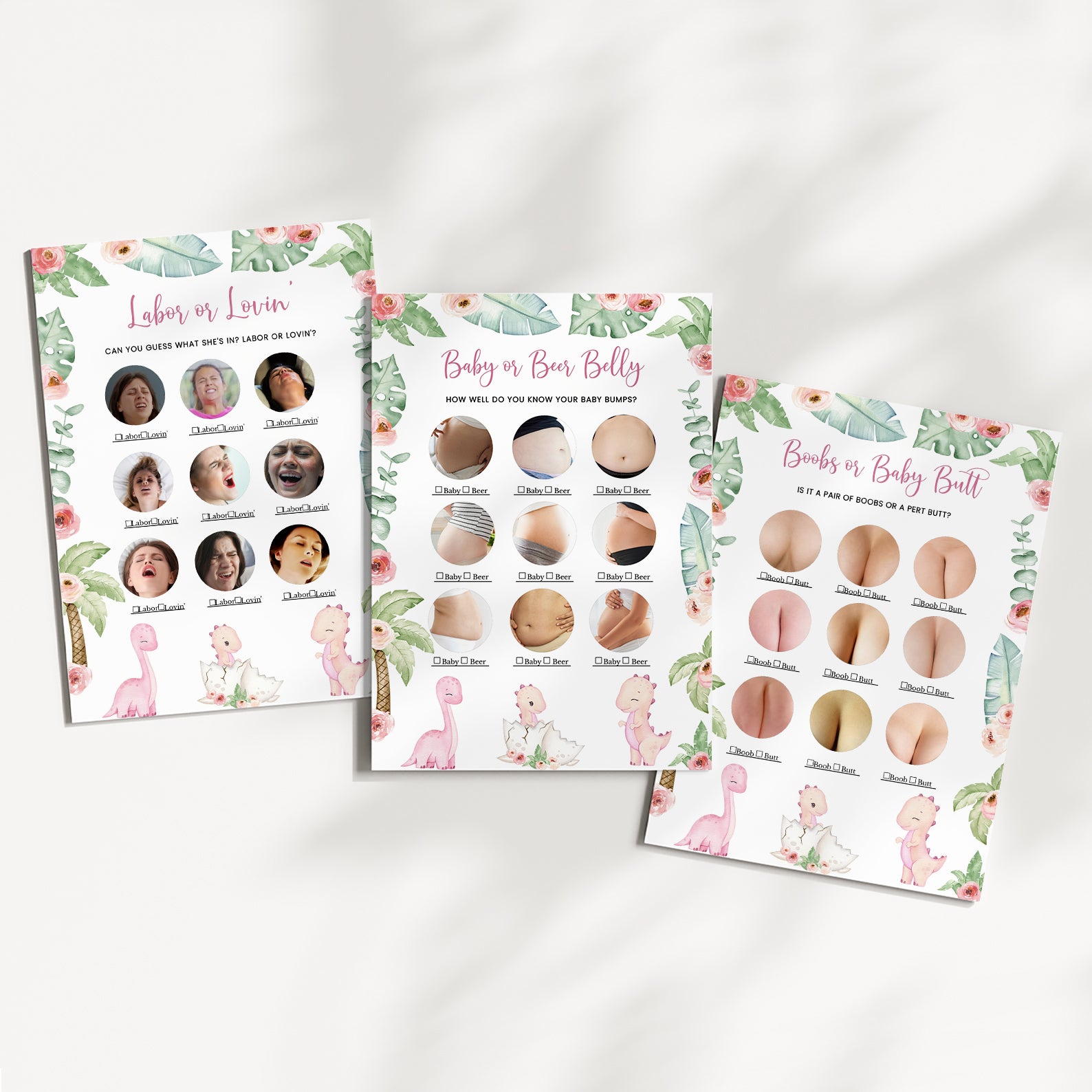 Dinosaur Baby Shower Digital Game Bundle: Pink Jungle Theme