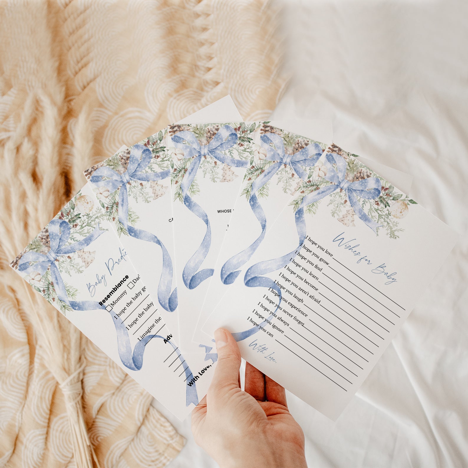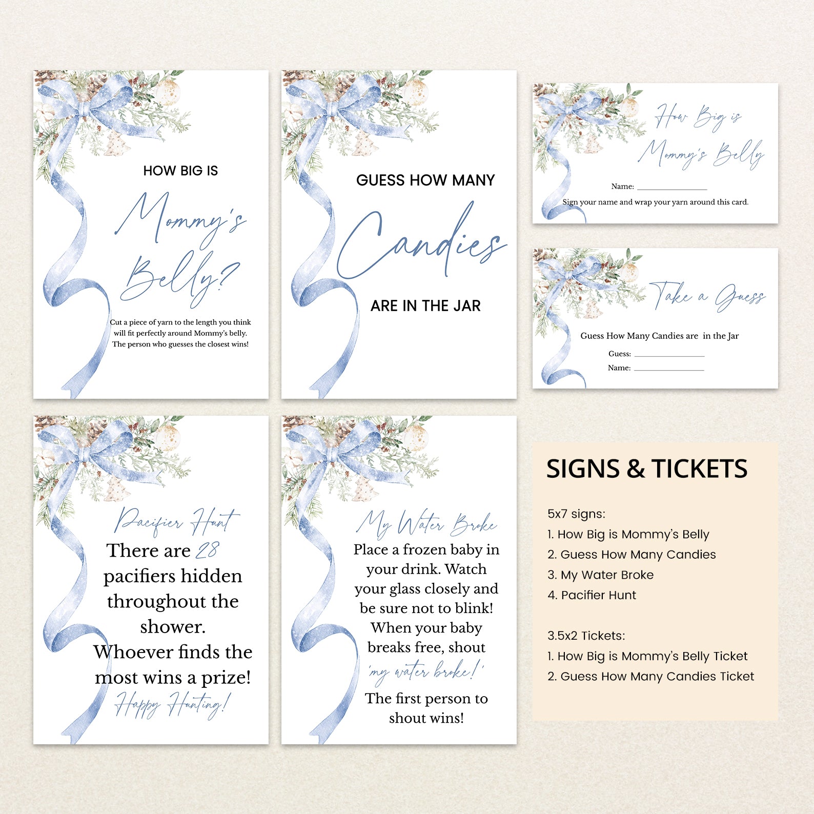 Merry Little Winter Baby Shower Game Bundle with Blue Ribbon