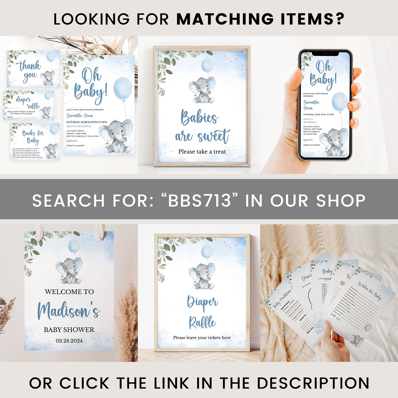 - Purchase this Oh Baby Blue Elephant Baby Shower Game Bundle with Leaves template