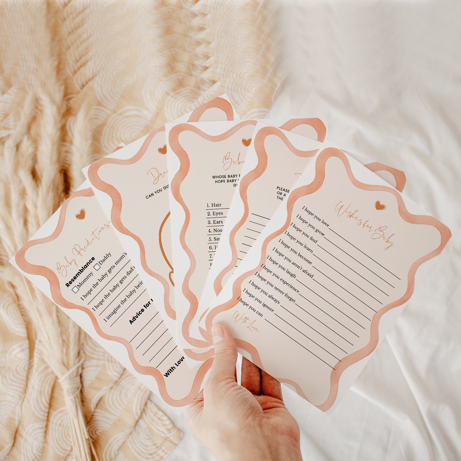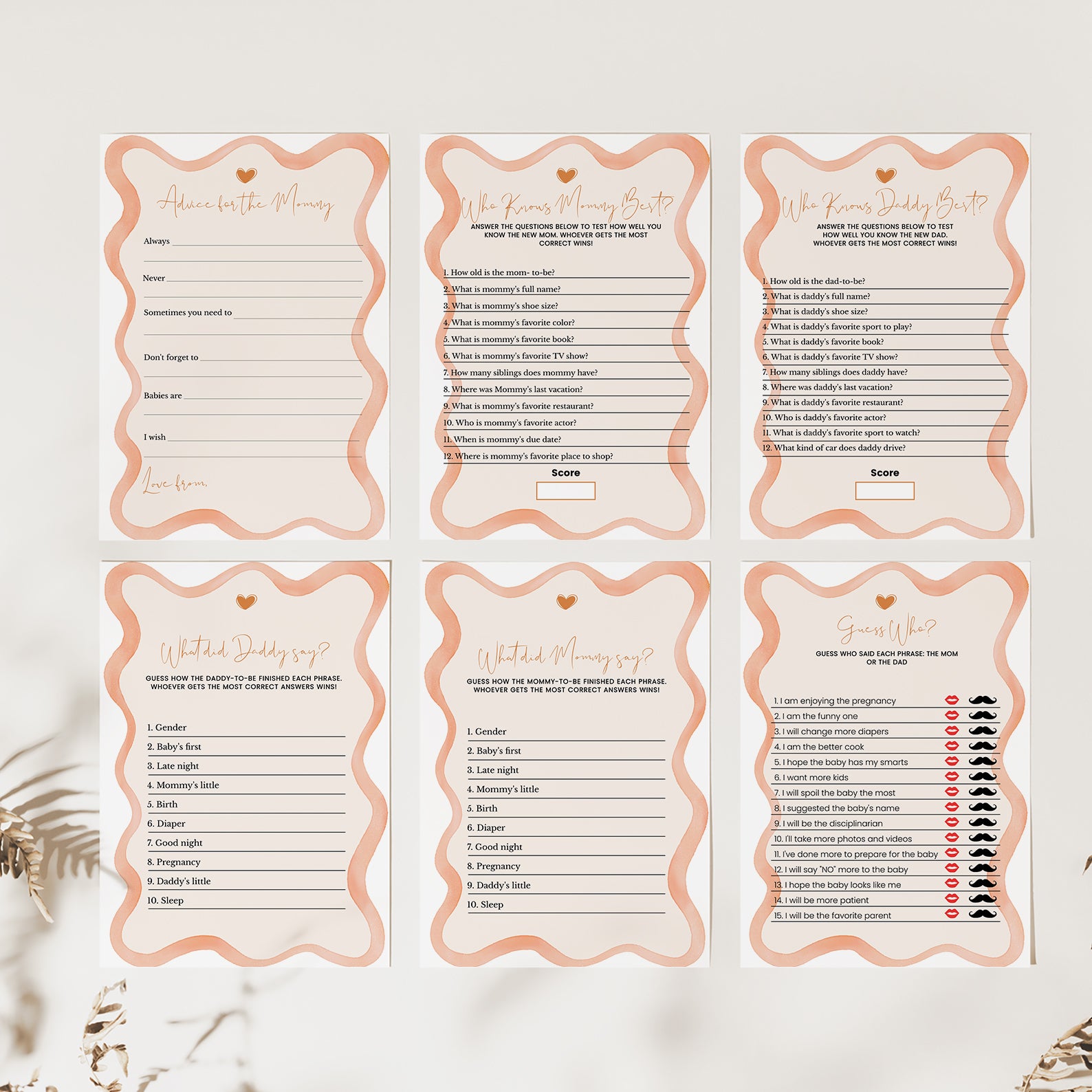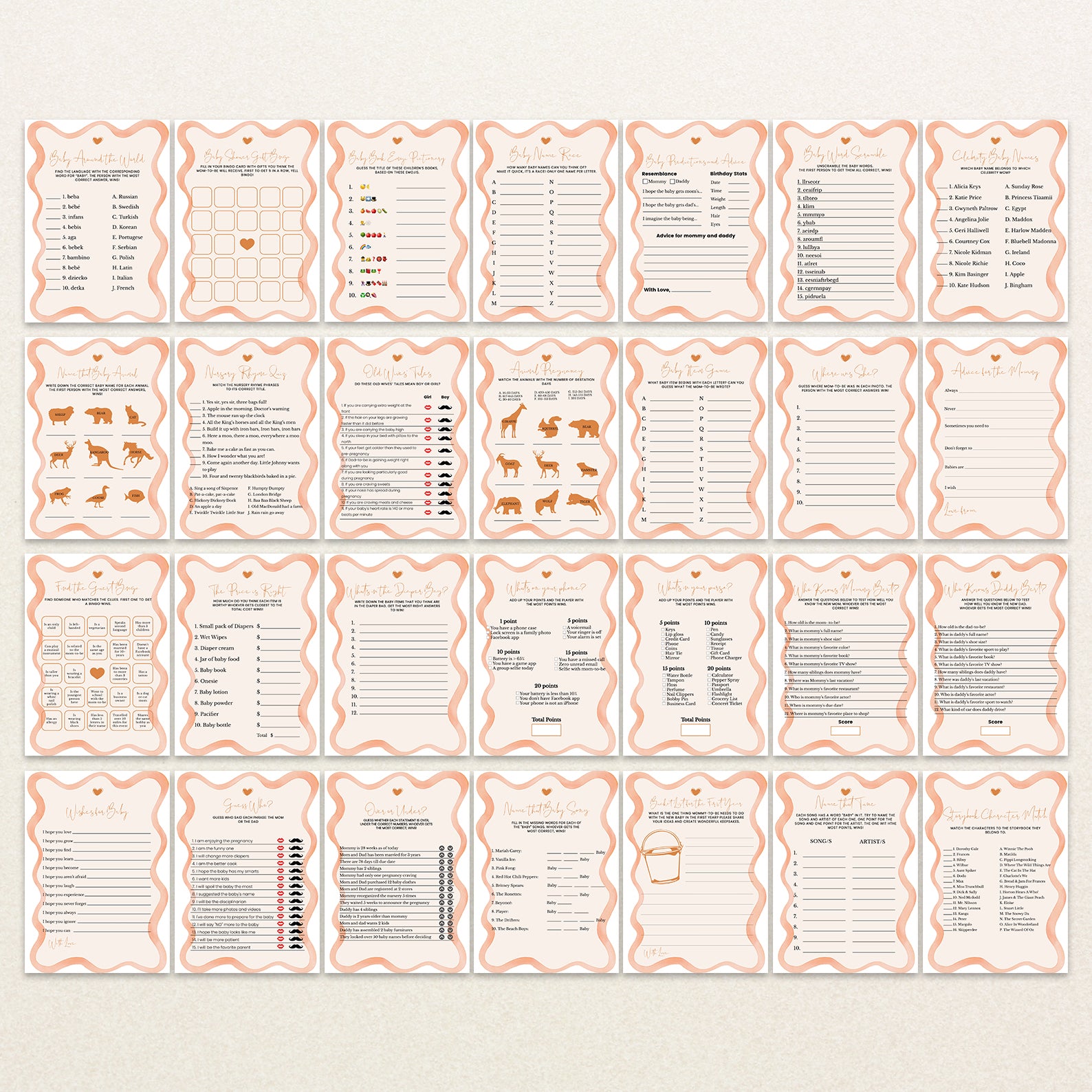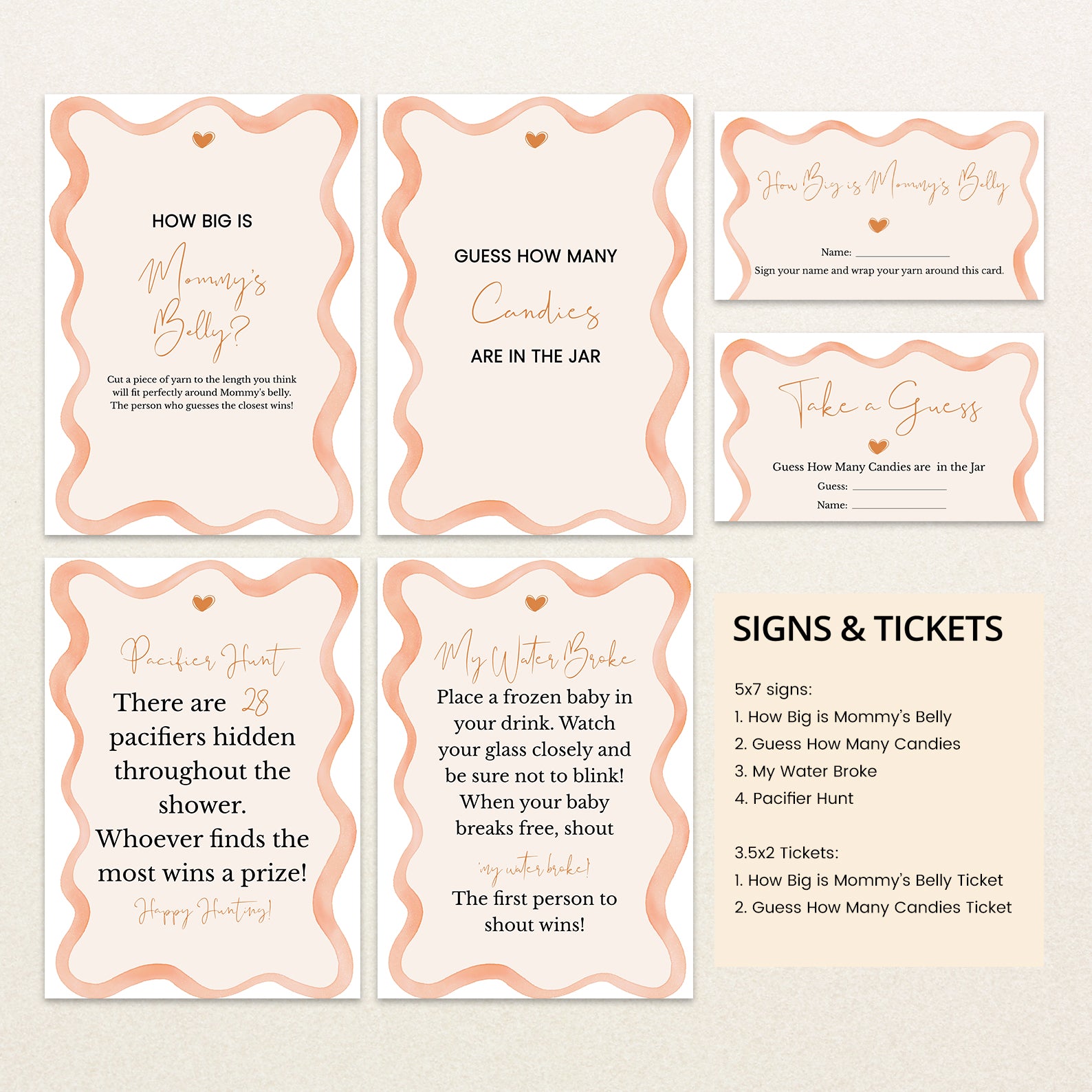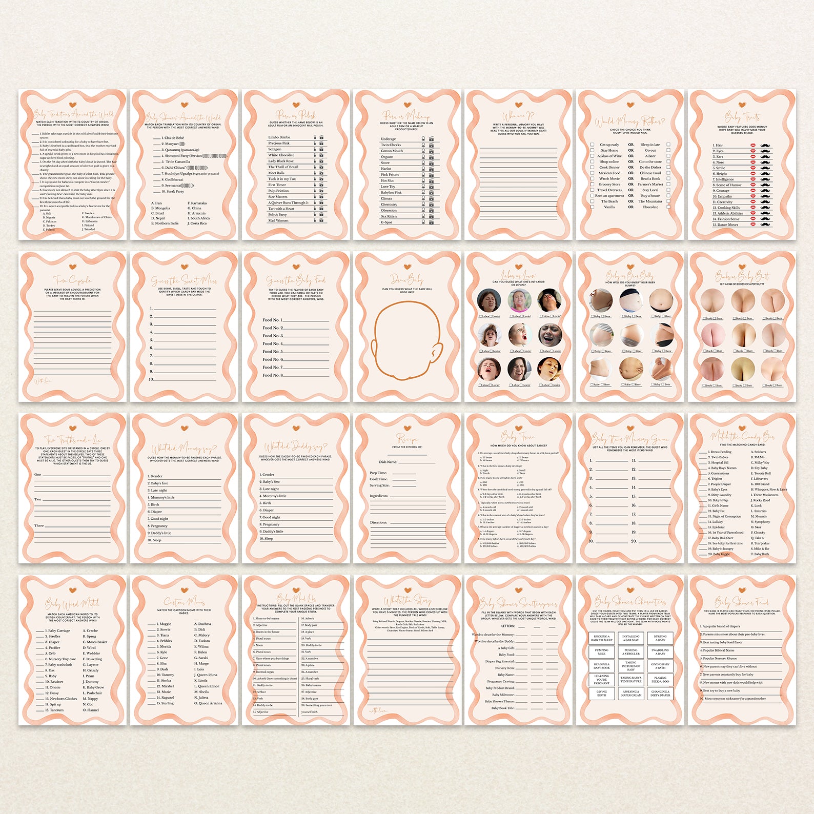 - Purchase this Orange-Themed Baby Shower Digital Game Bundle with Wavy Border template