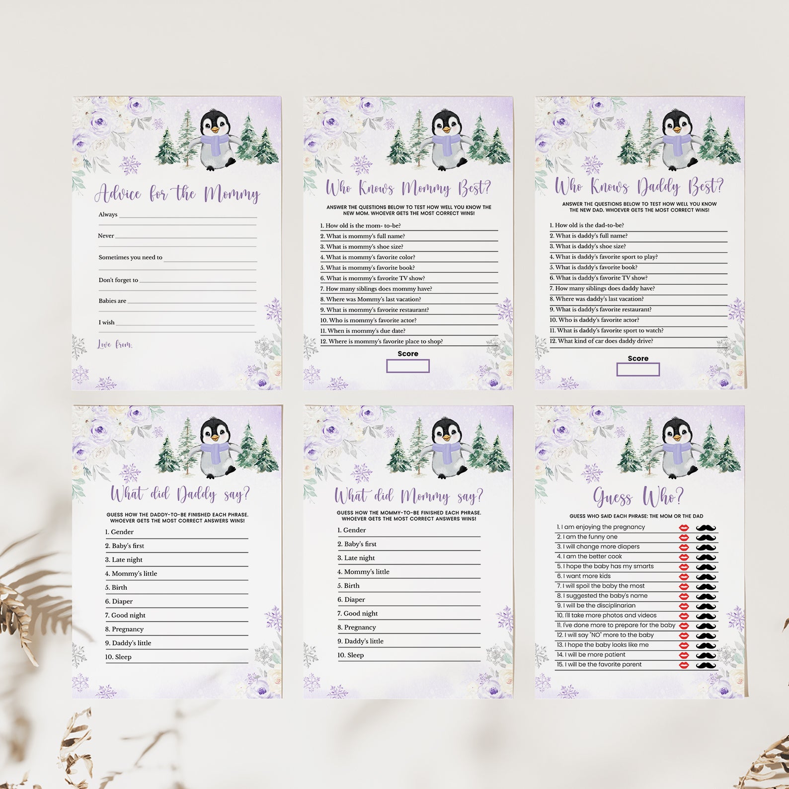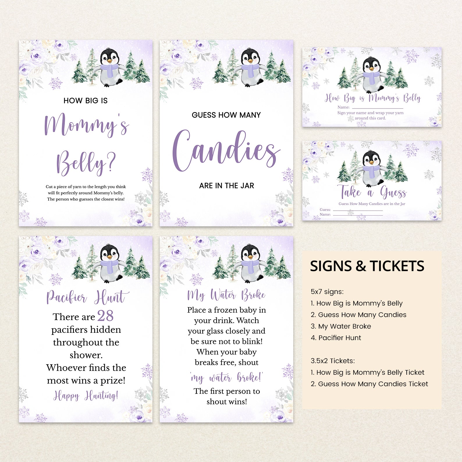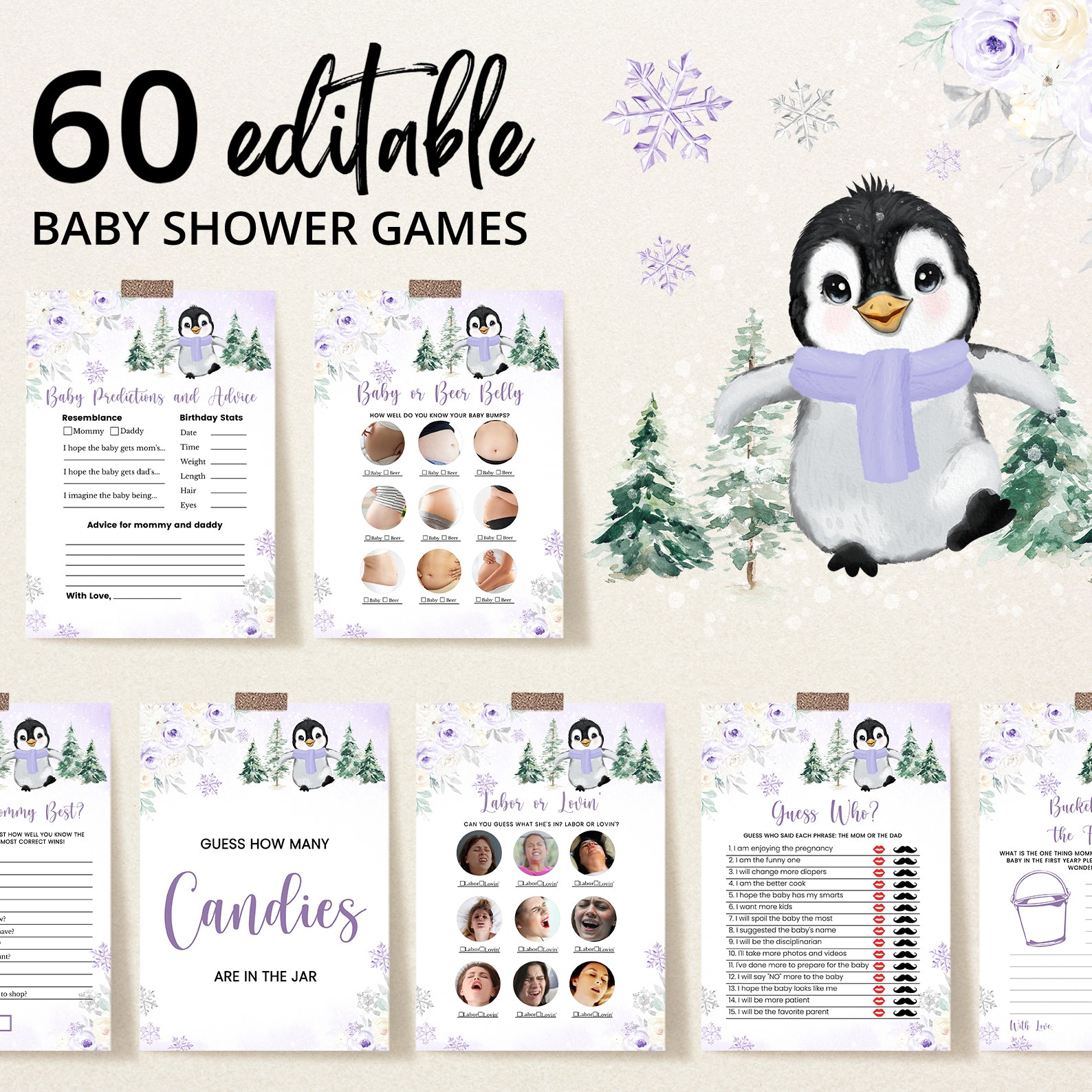 - Purchase this Penguin Baby It's Cold Outside: Winter Baby Shower Purple Game Bundle template