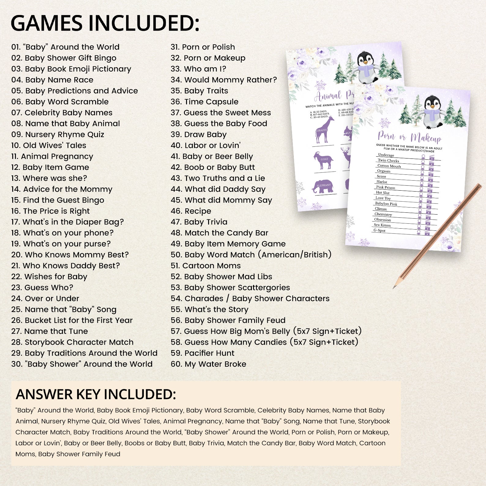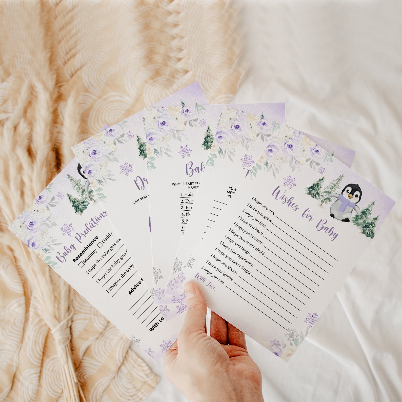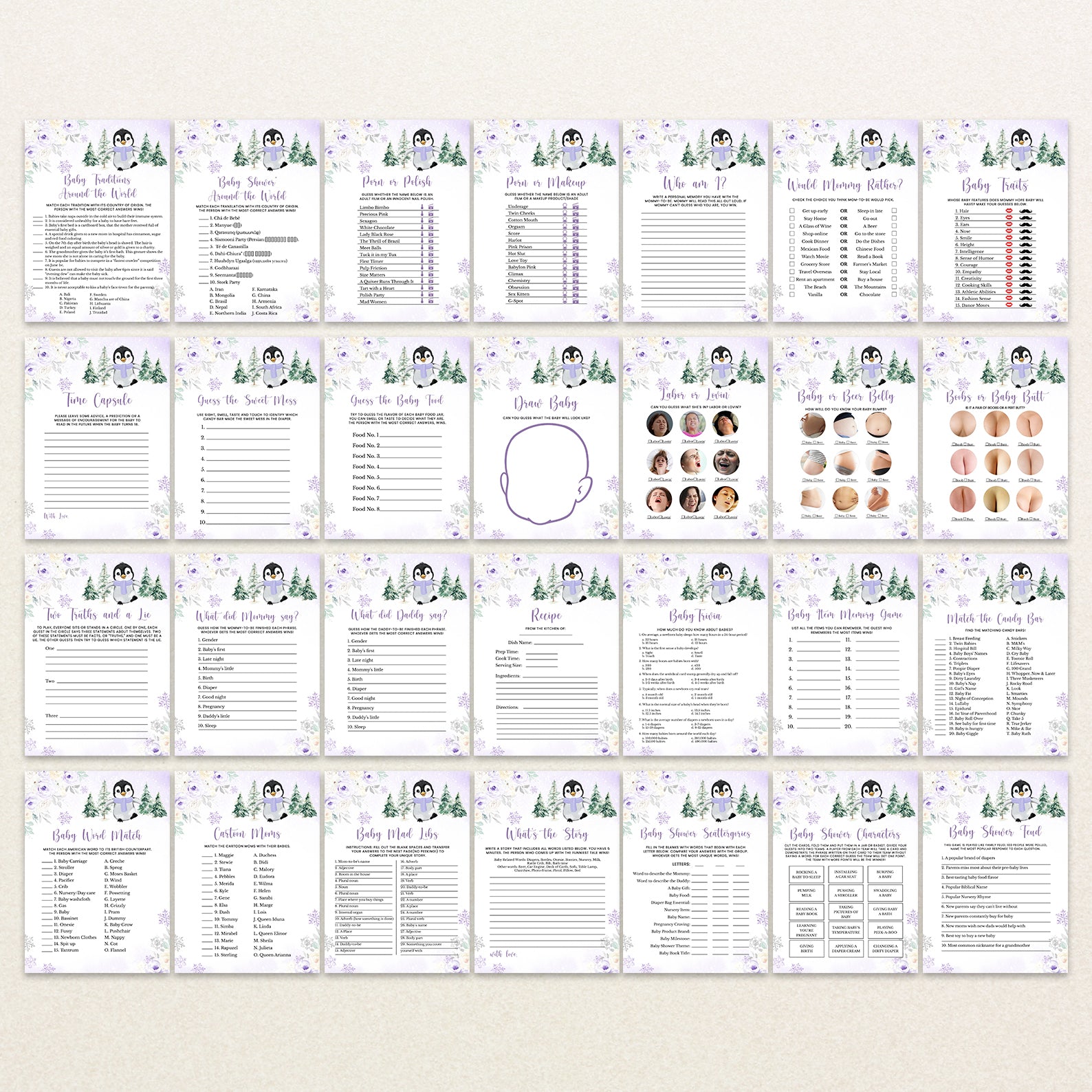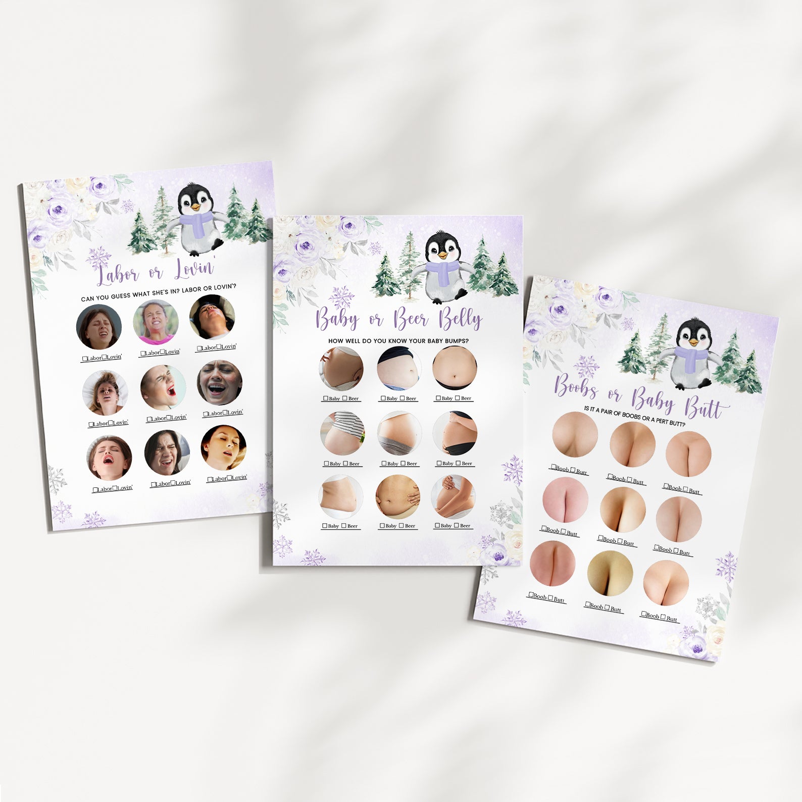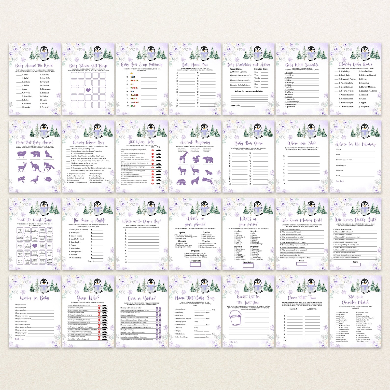 Penguin Baby It's Cold Outside: Winter Baby Shower Purple Game Bundle