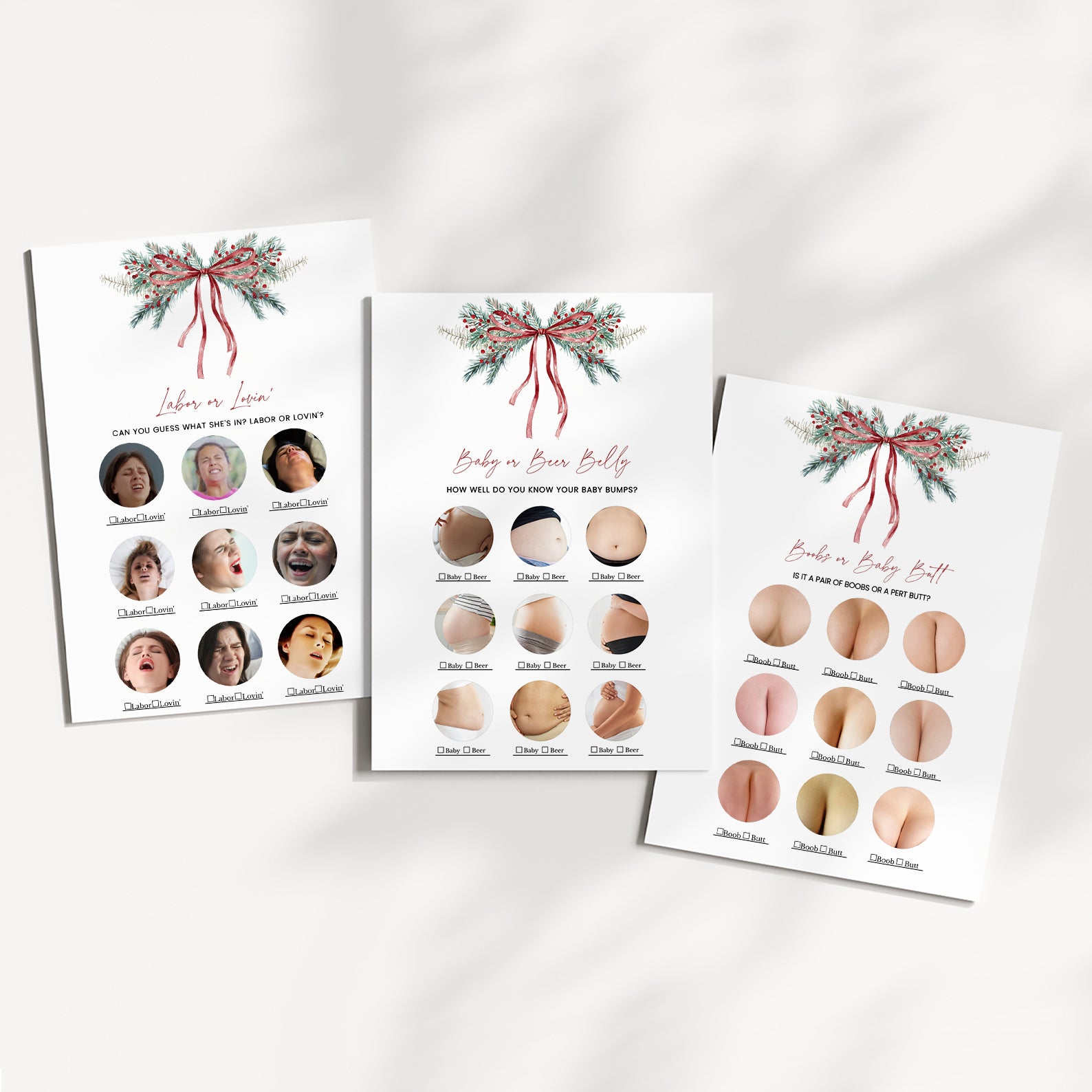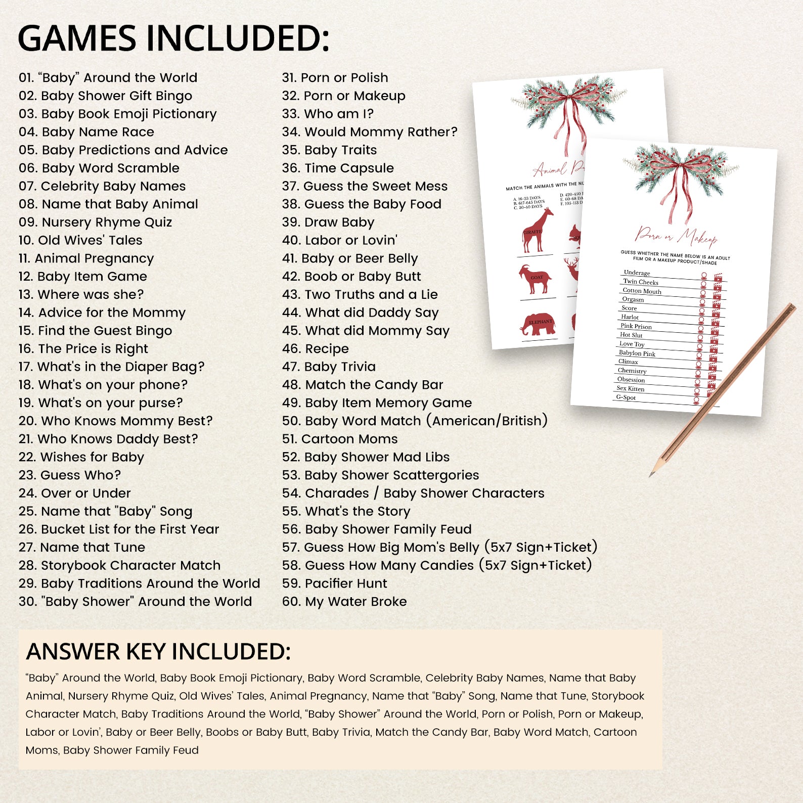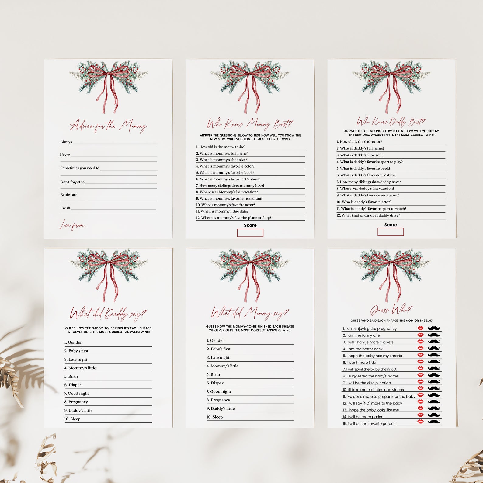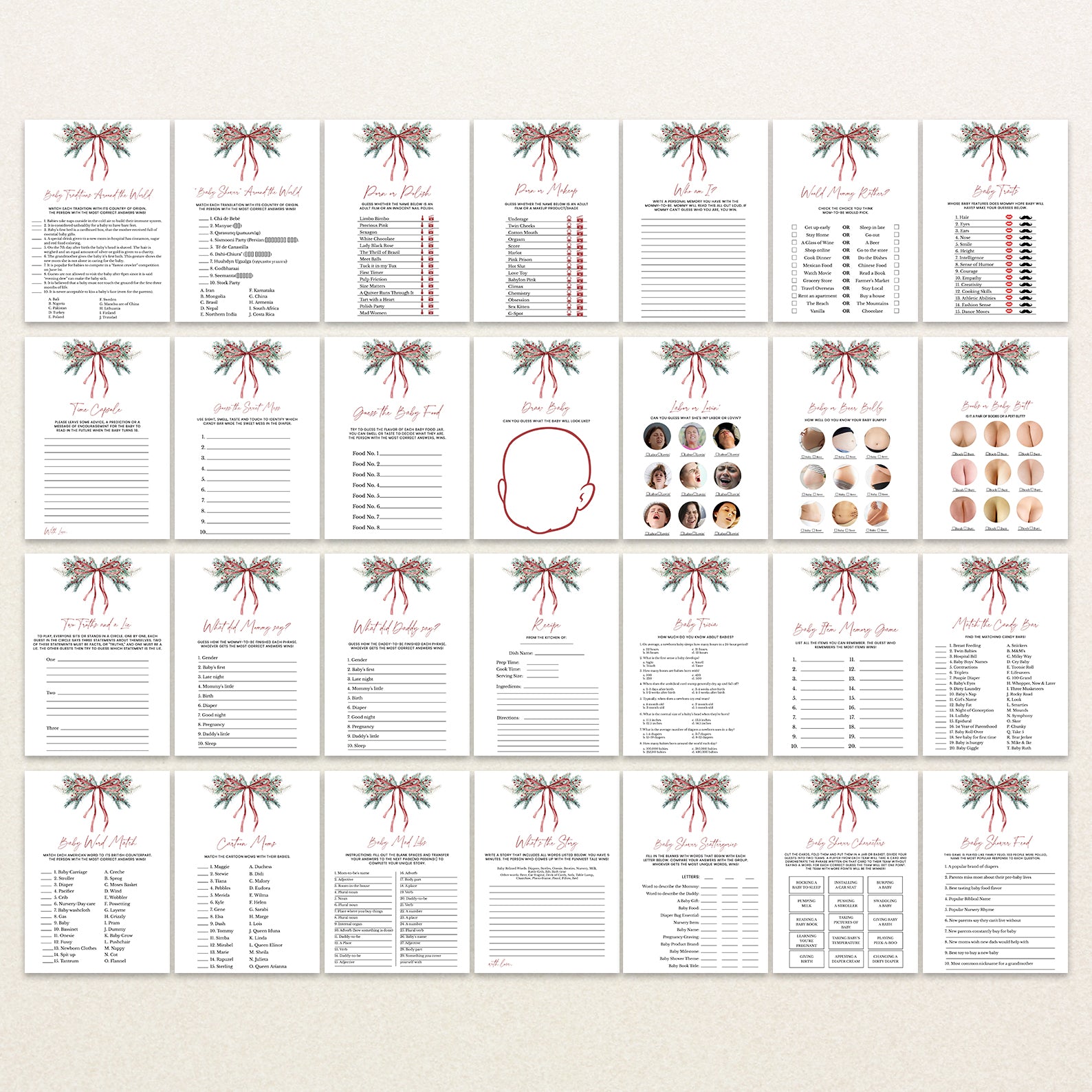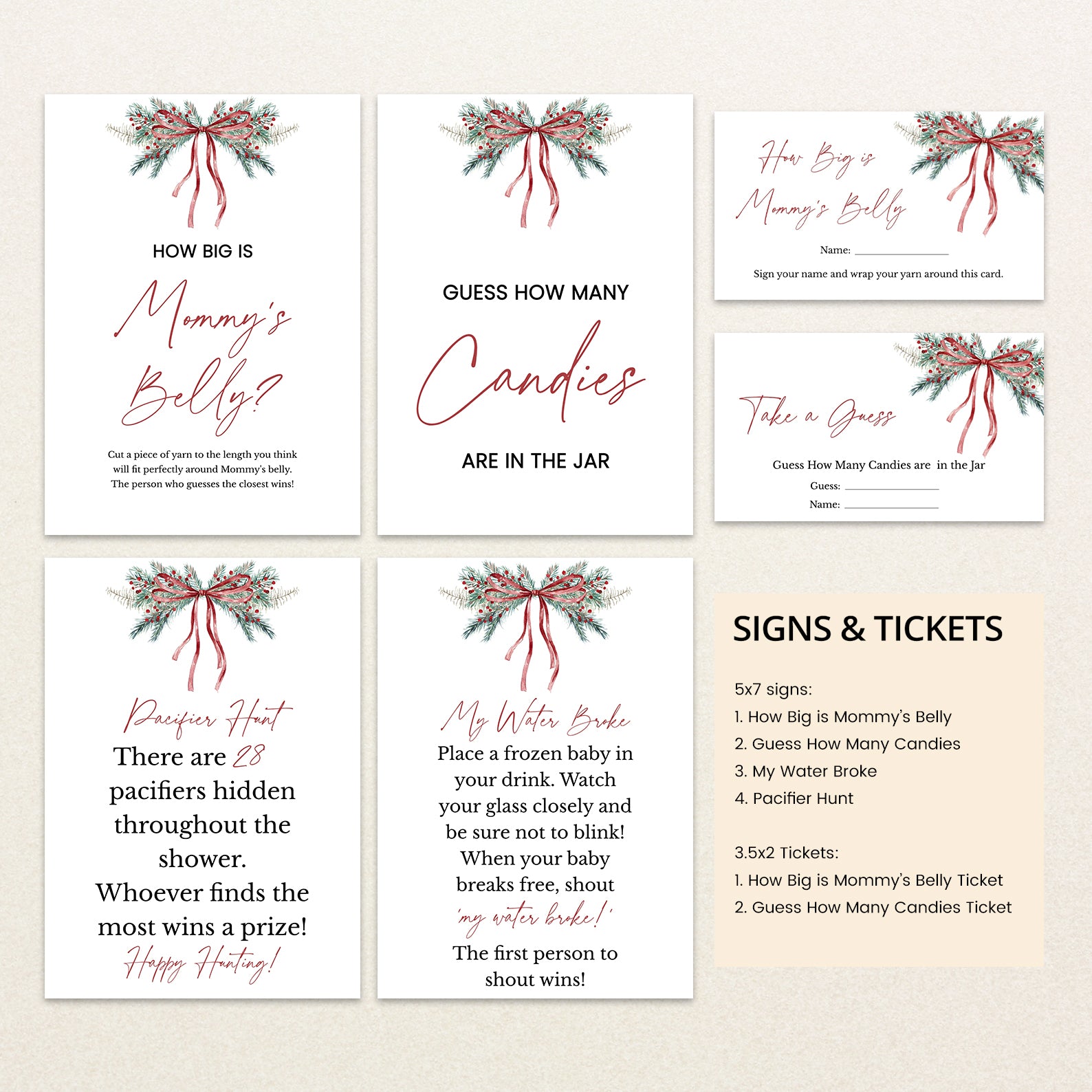 Winter Baby Shower Game Bundle with Ribbon and Berries
