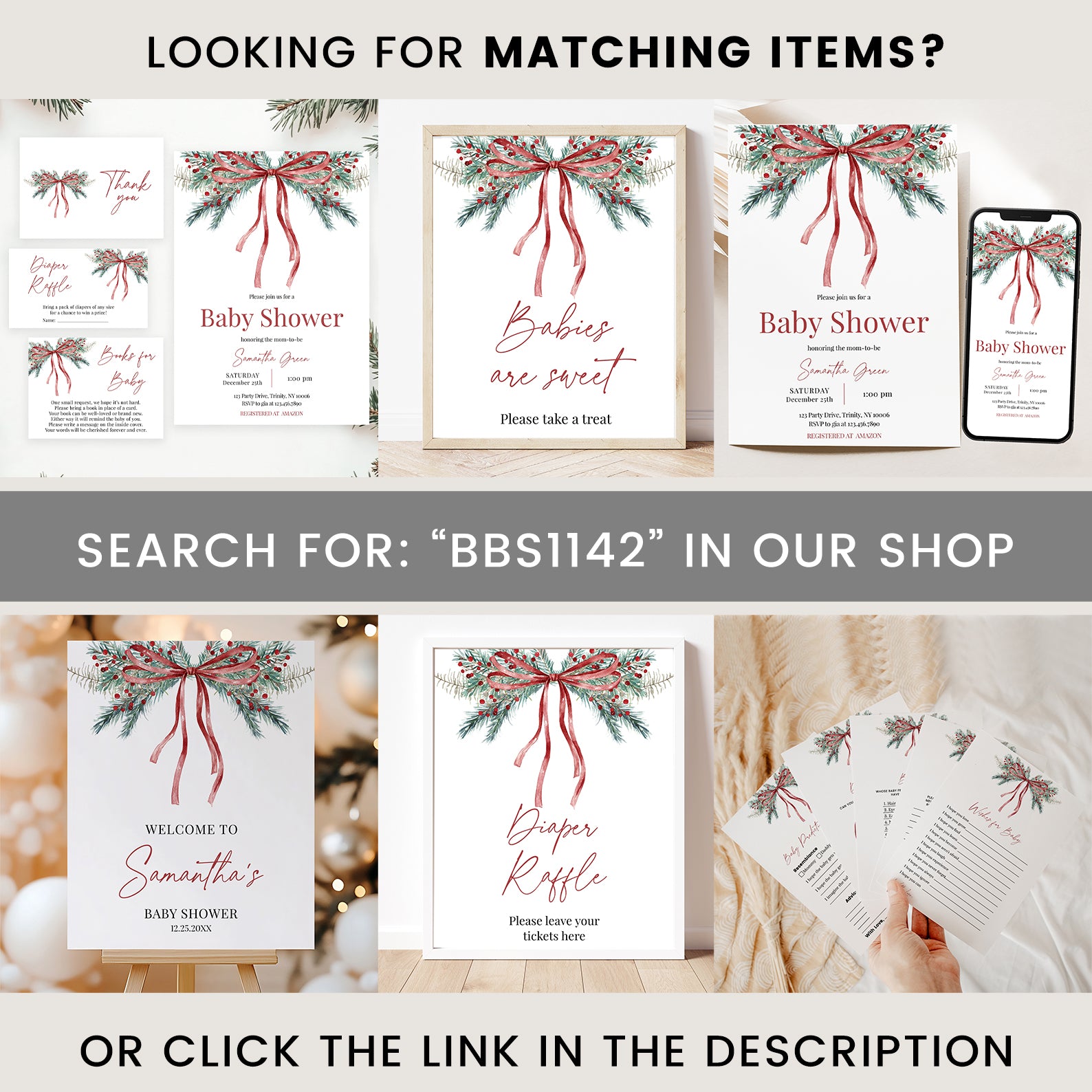- Purchase this Winter Baby Shower Game Bundle with Ribbon and Berries template