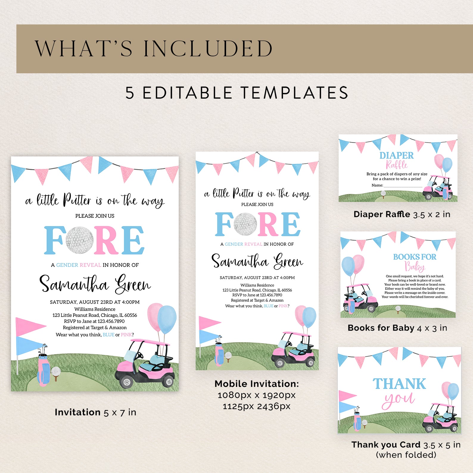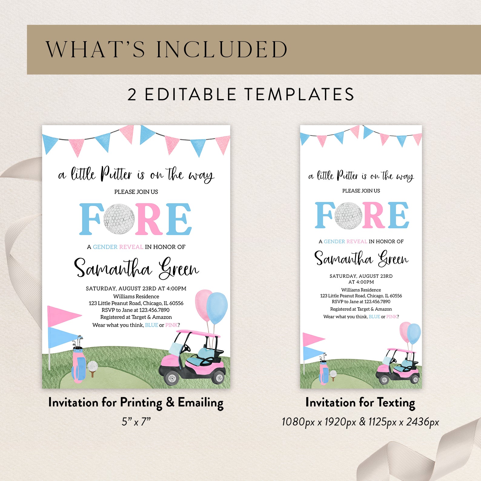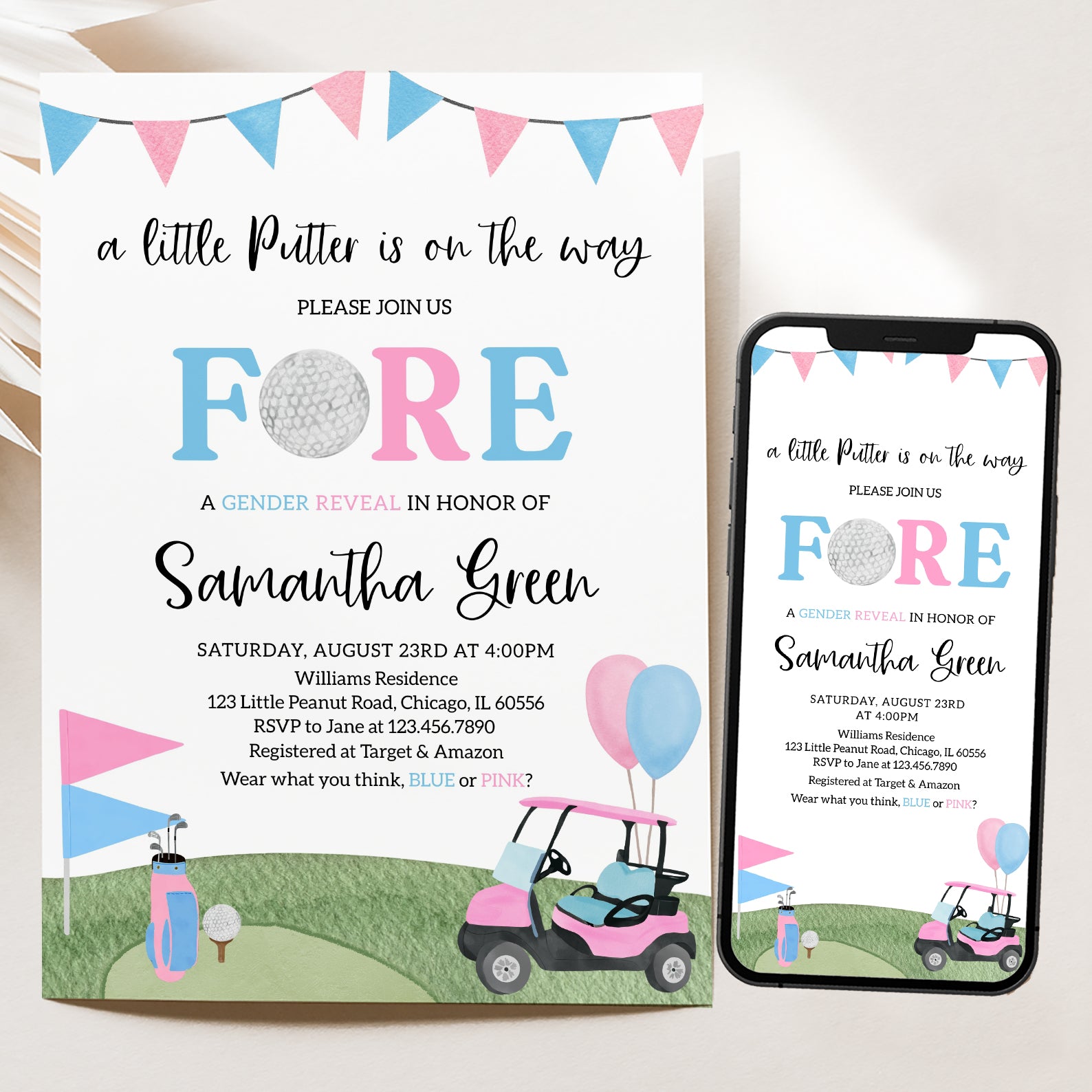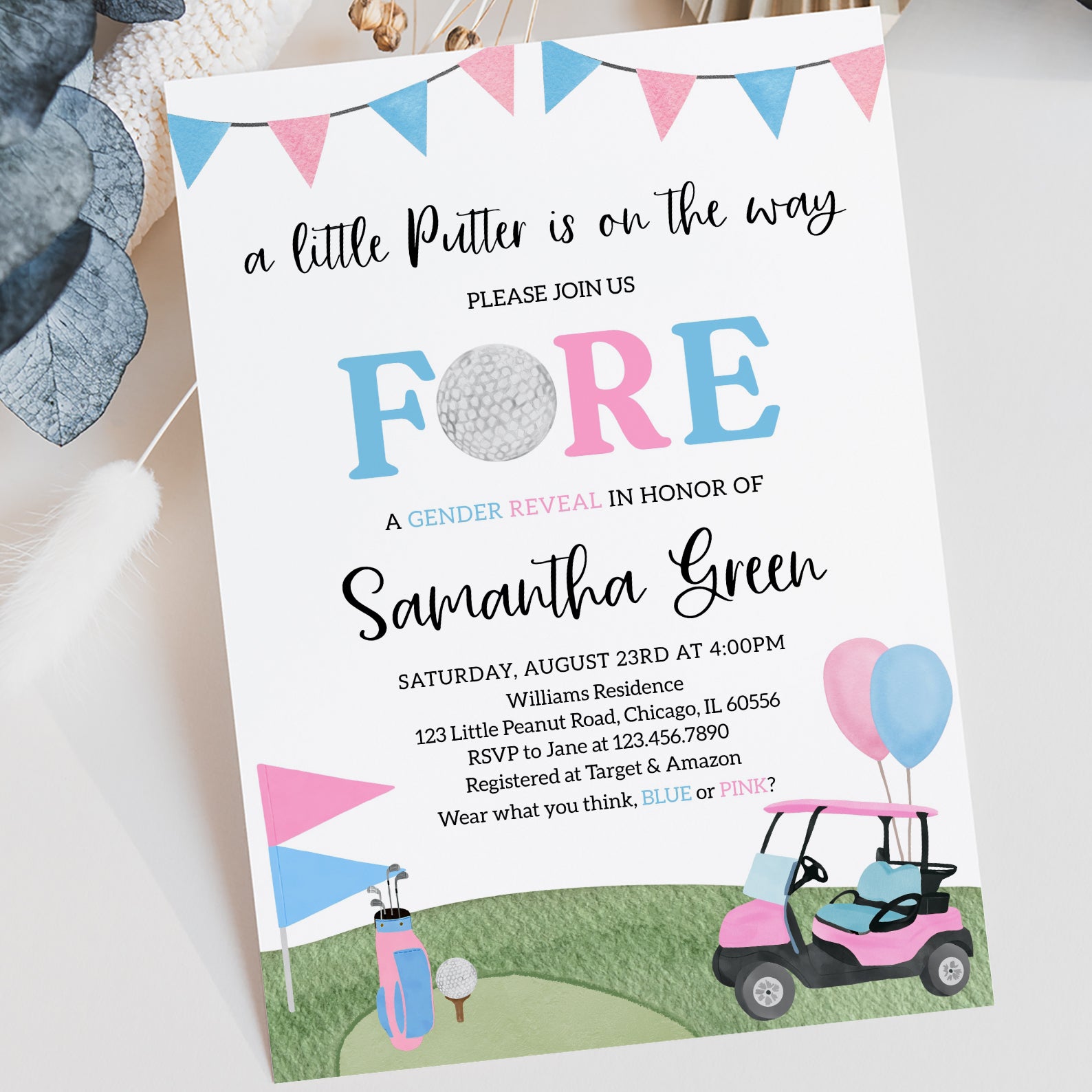 - Purchase this Golf-Themed Gender Reveal: A Little Putter Invite Bundle template