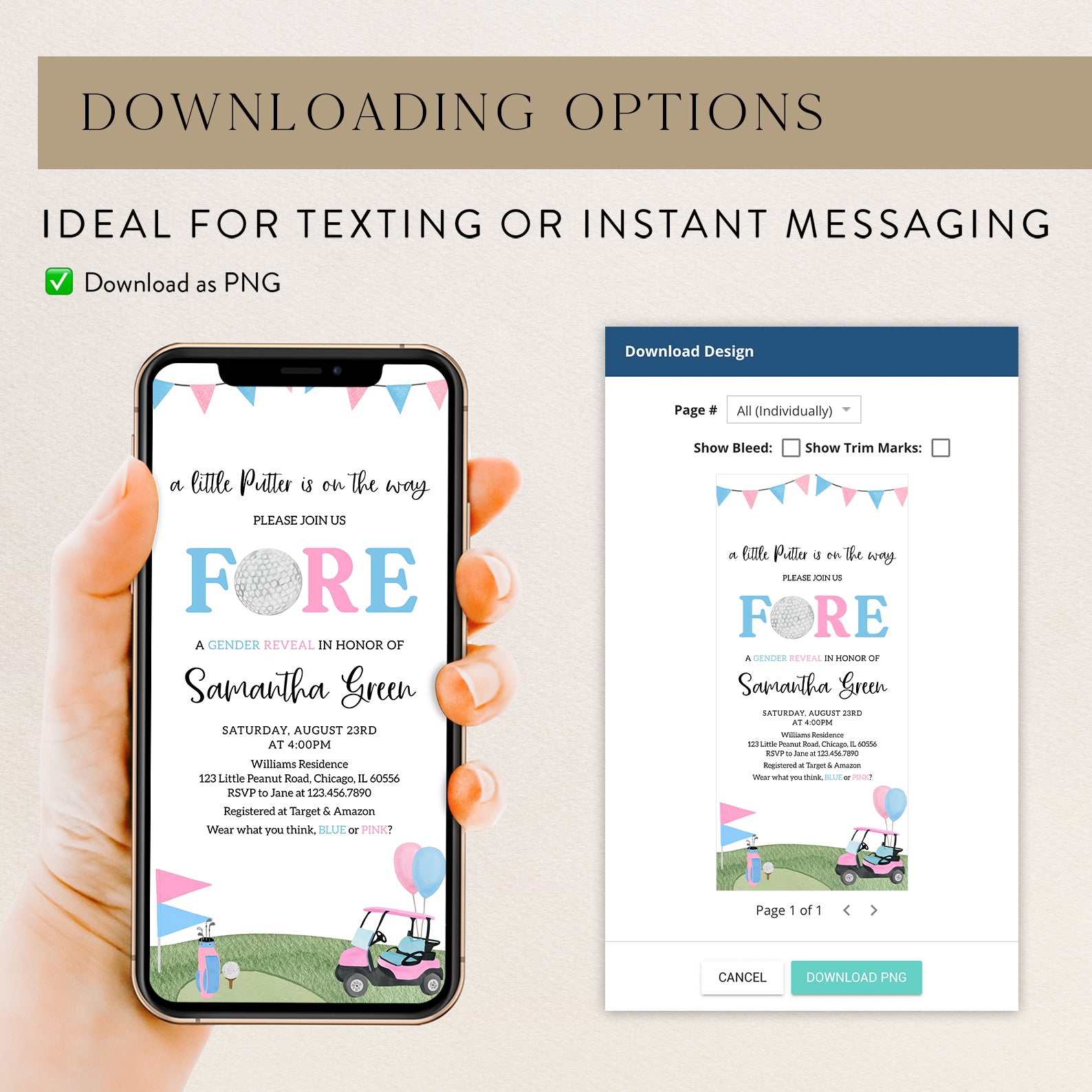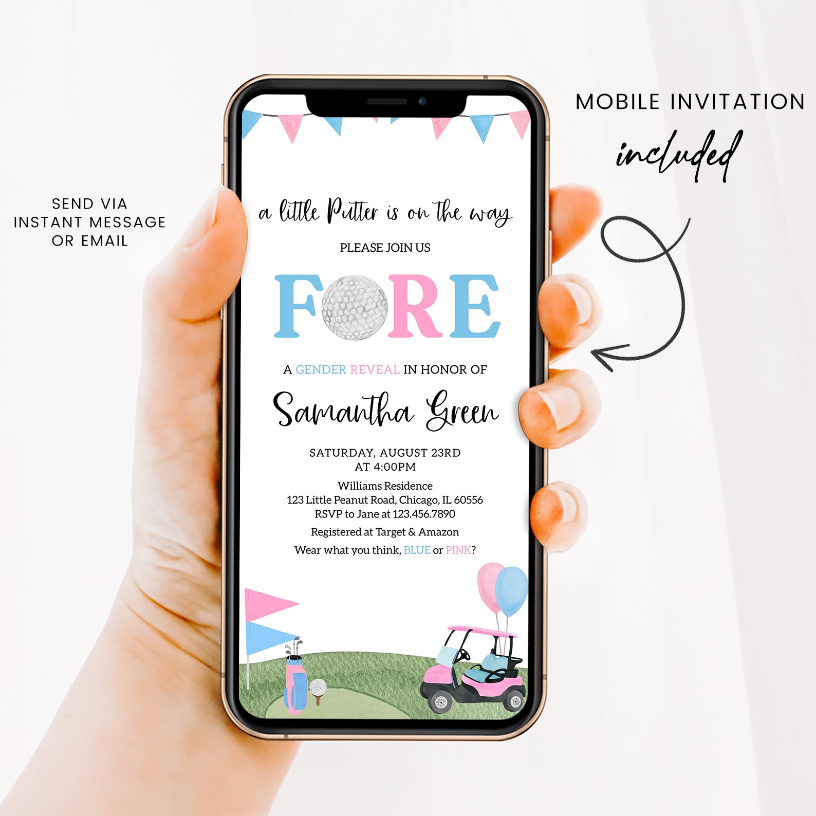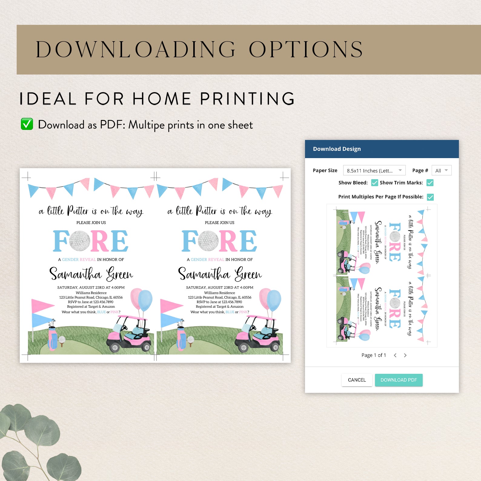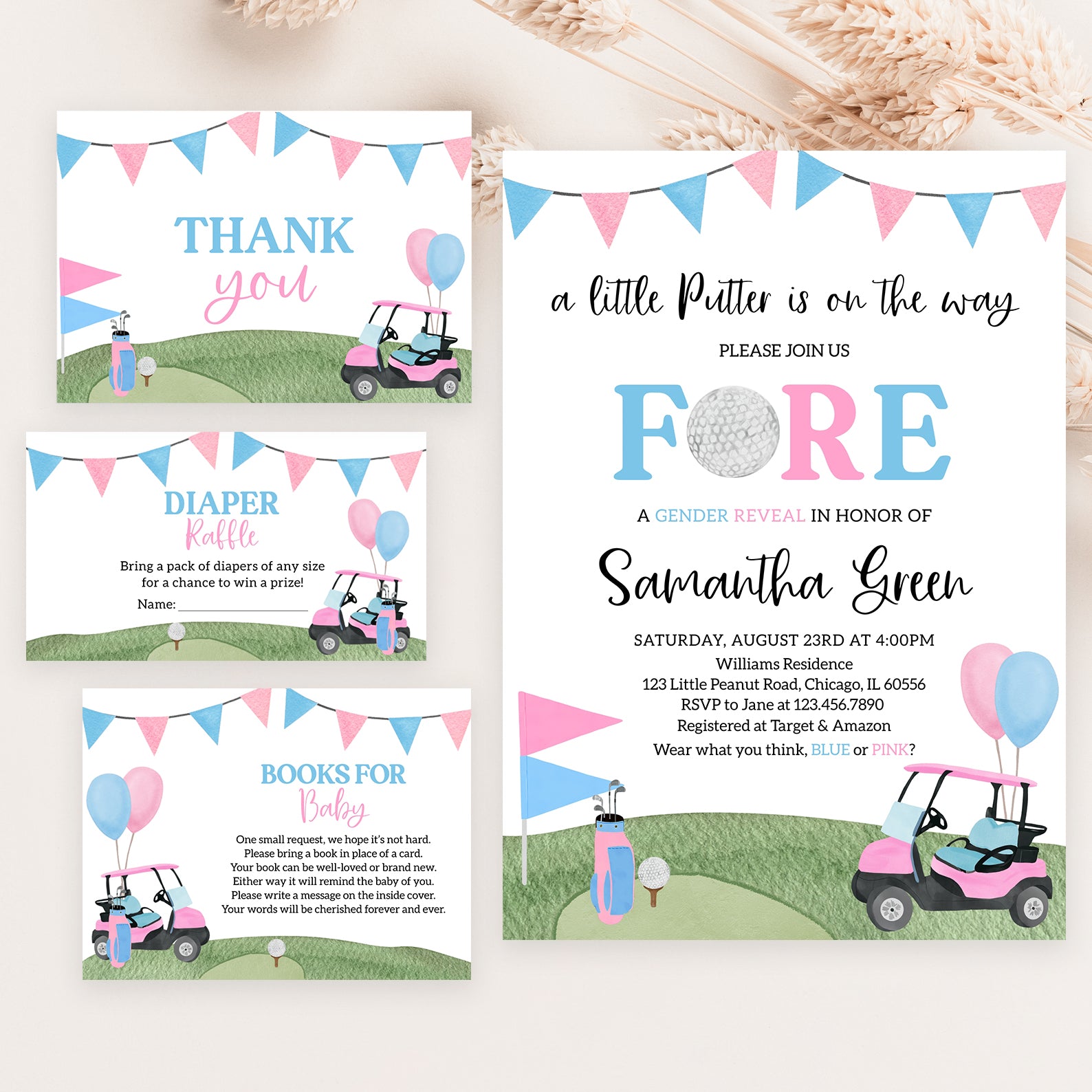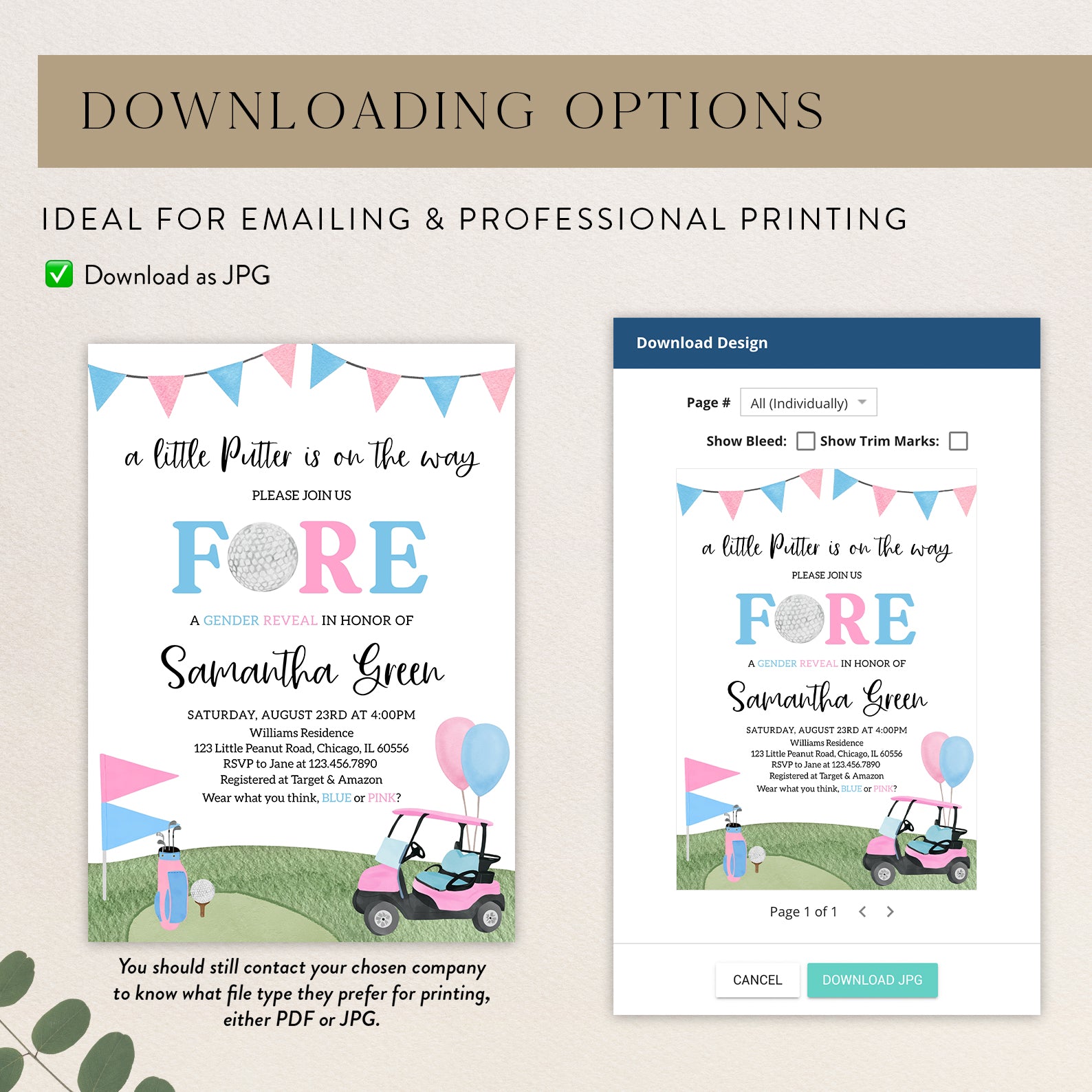 - Purchase this Golf-Themed Gender Reveal: A Little Putter Invite Bundle template