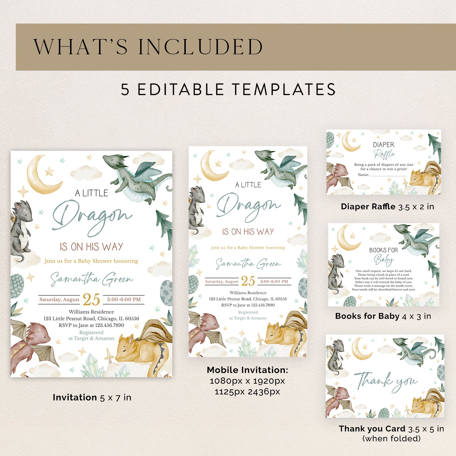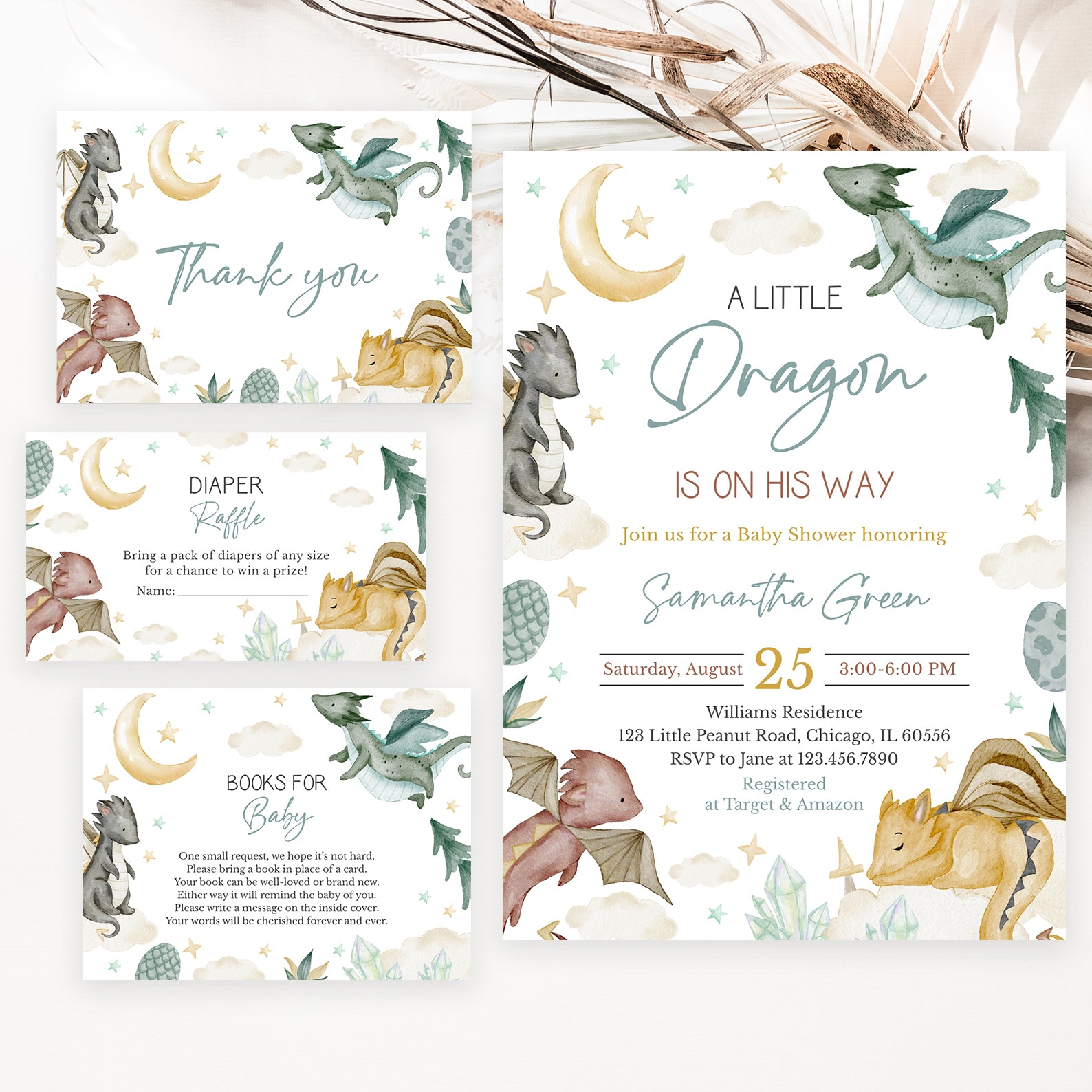 Magical Baby Shower Digital Invite Bundle: Little Dragon Theme