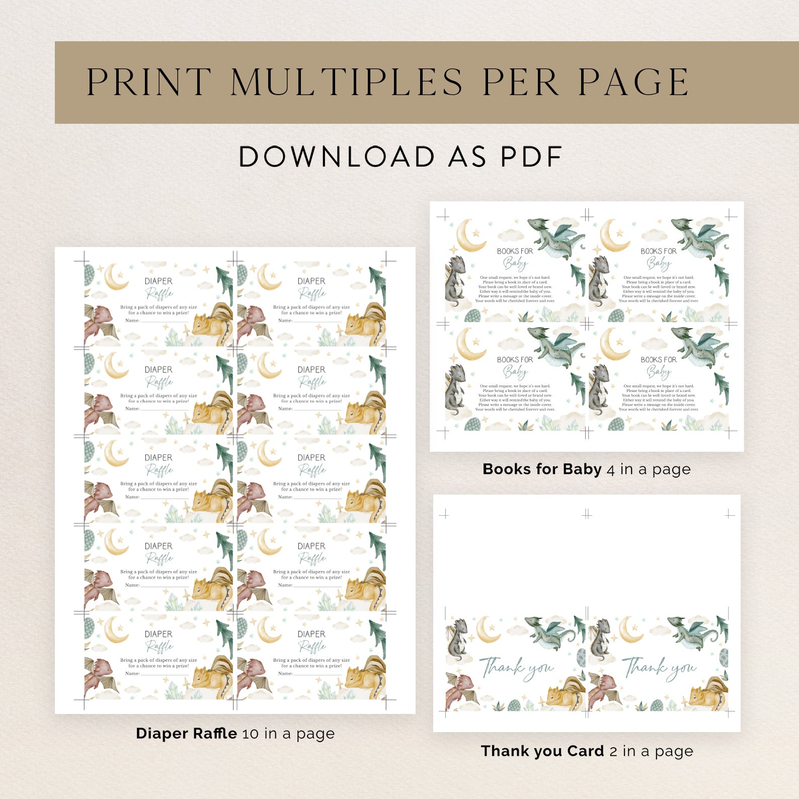 Celebrate your little one with this magical baby shower bundle! Featuring a whimsical little dragon, soft clouds, stars, and a crescent moon, this set includes a digital invitation, mobile invite, diaper raffle, books for baby, and thank you card. Perfect for a fantasy-themed baby shower, it's easy to edit and share for a truly unforgettable event!