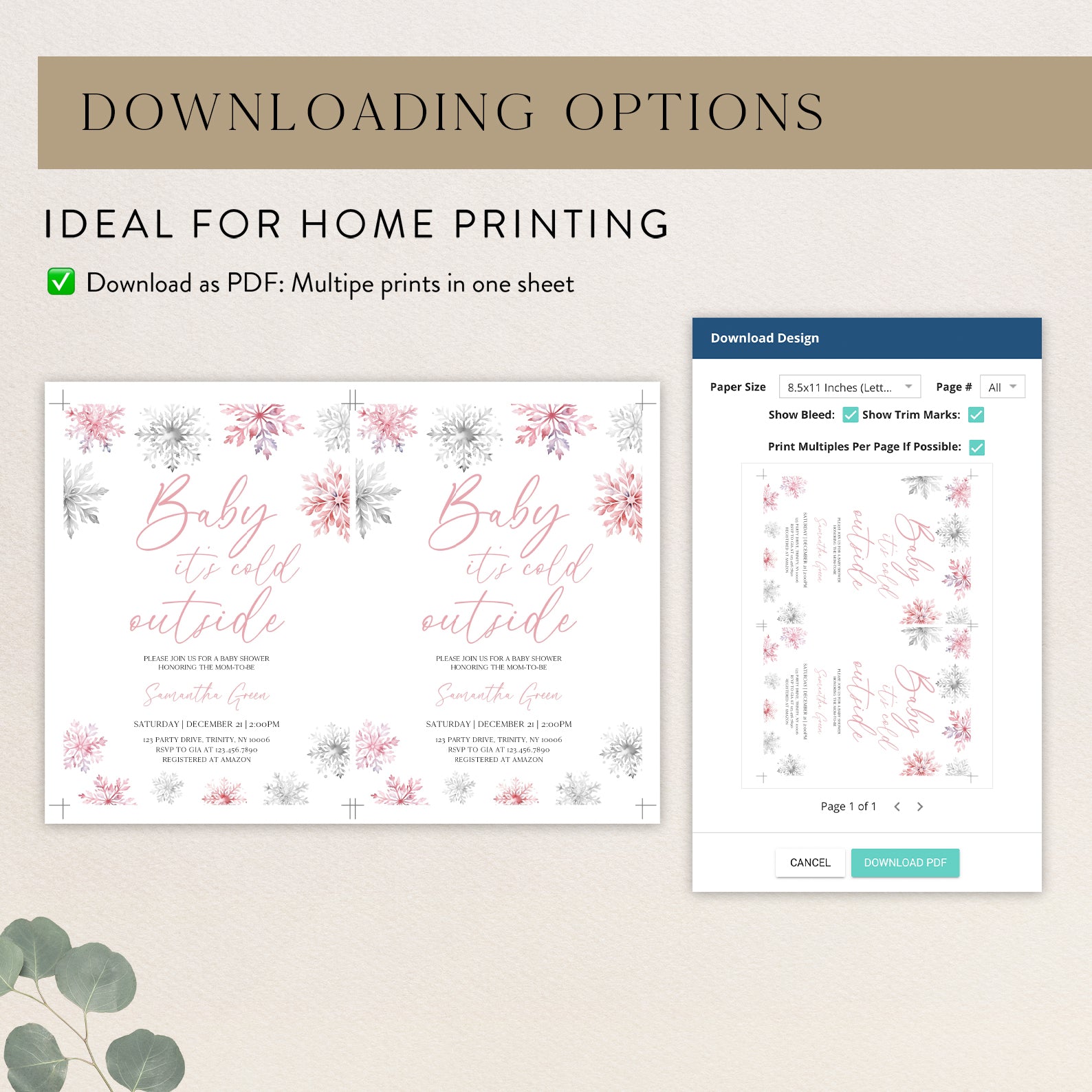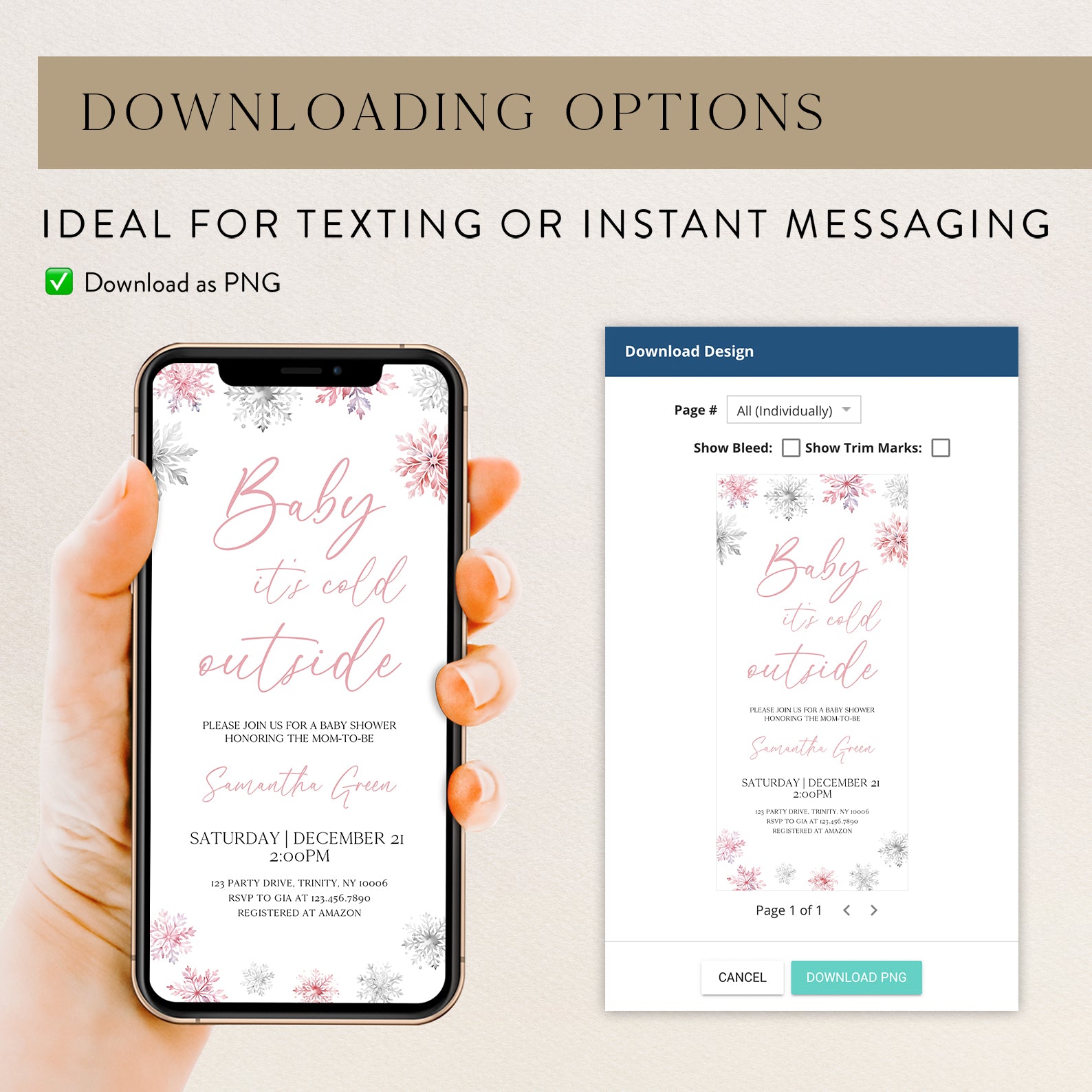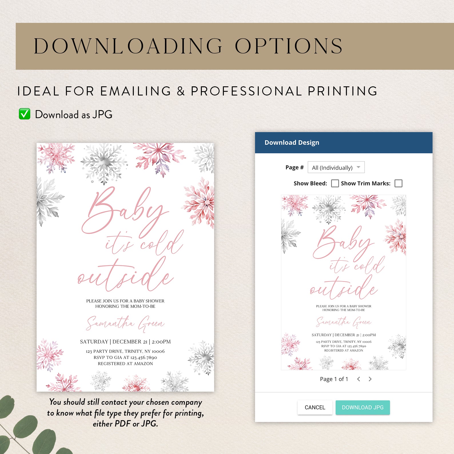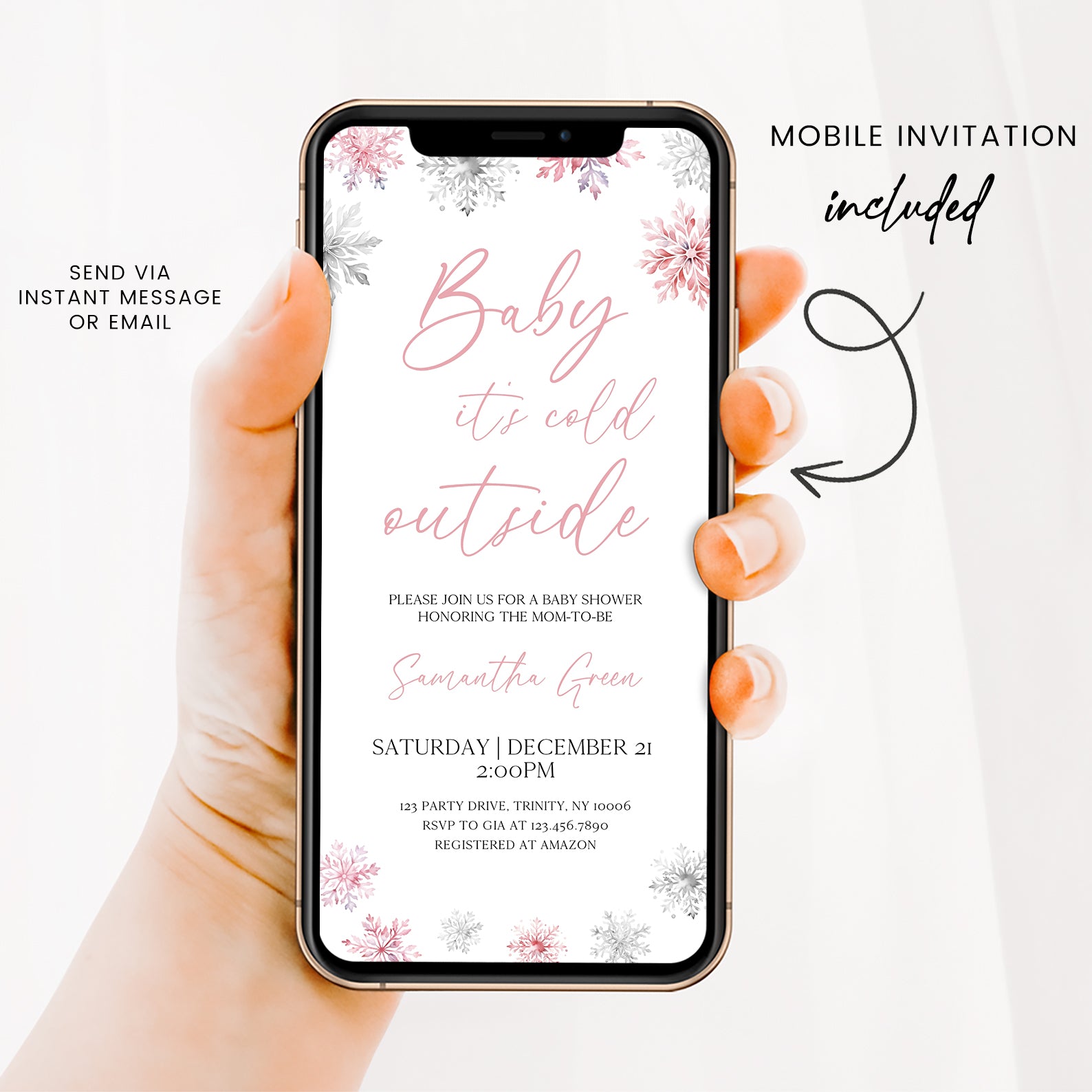 - Purchase this Pink Baby It's Cold Outside Winter Invite Bundle with Snowflakes template