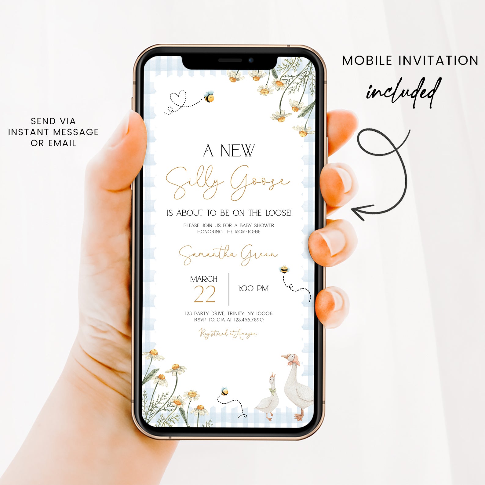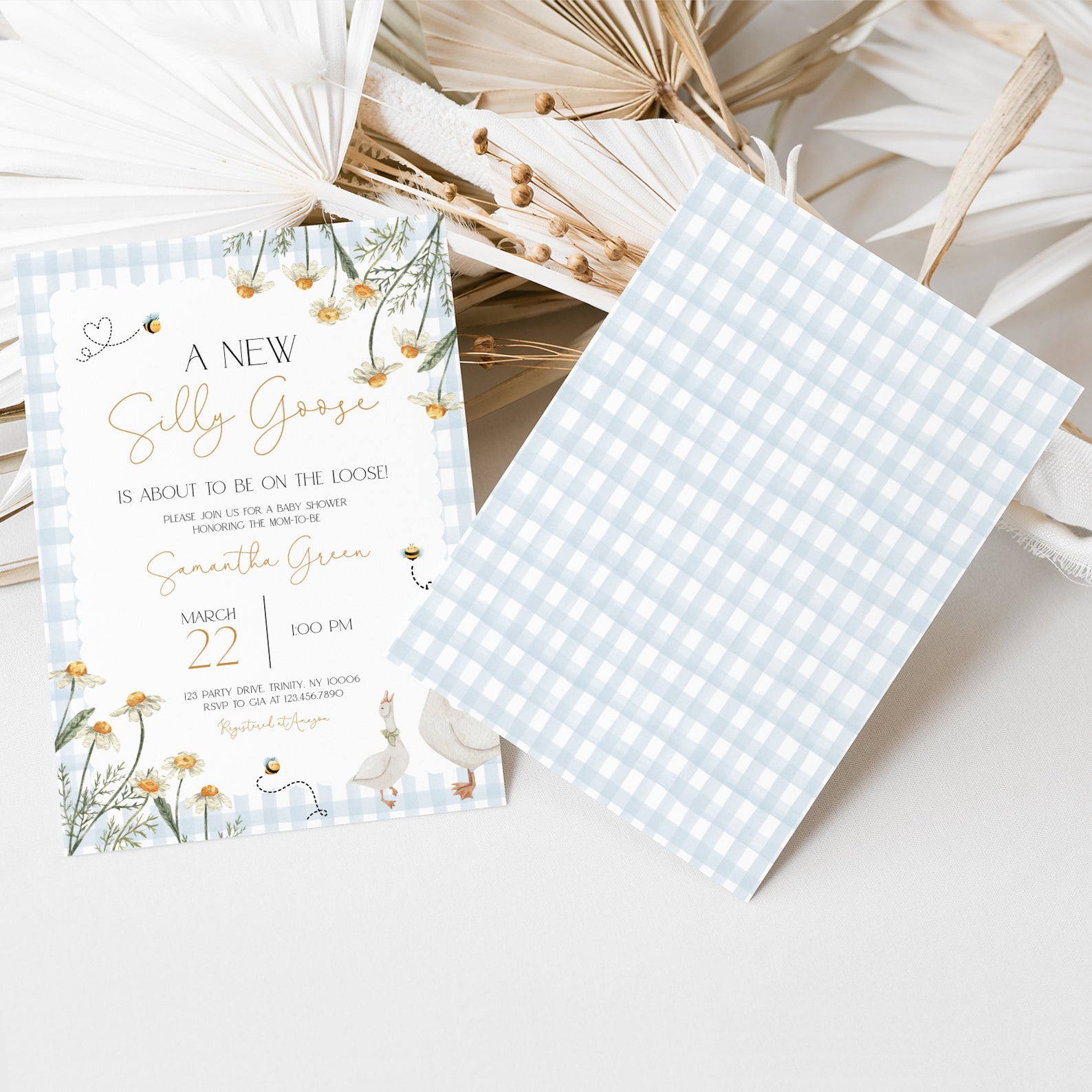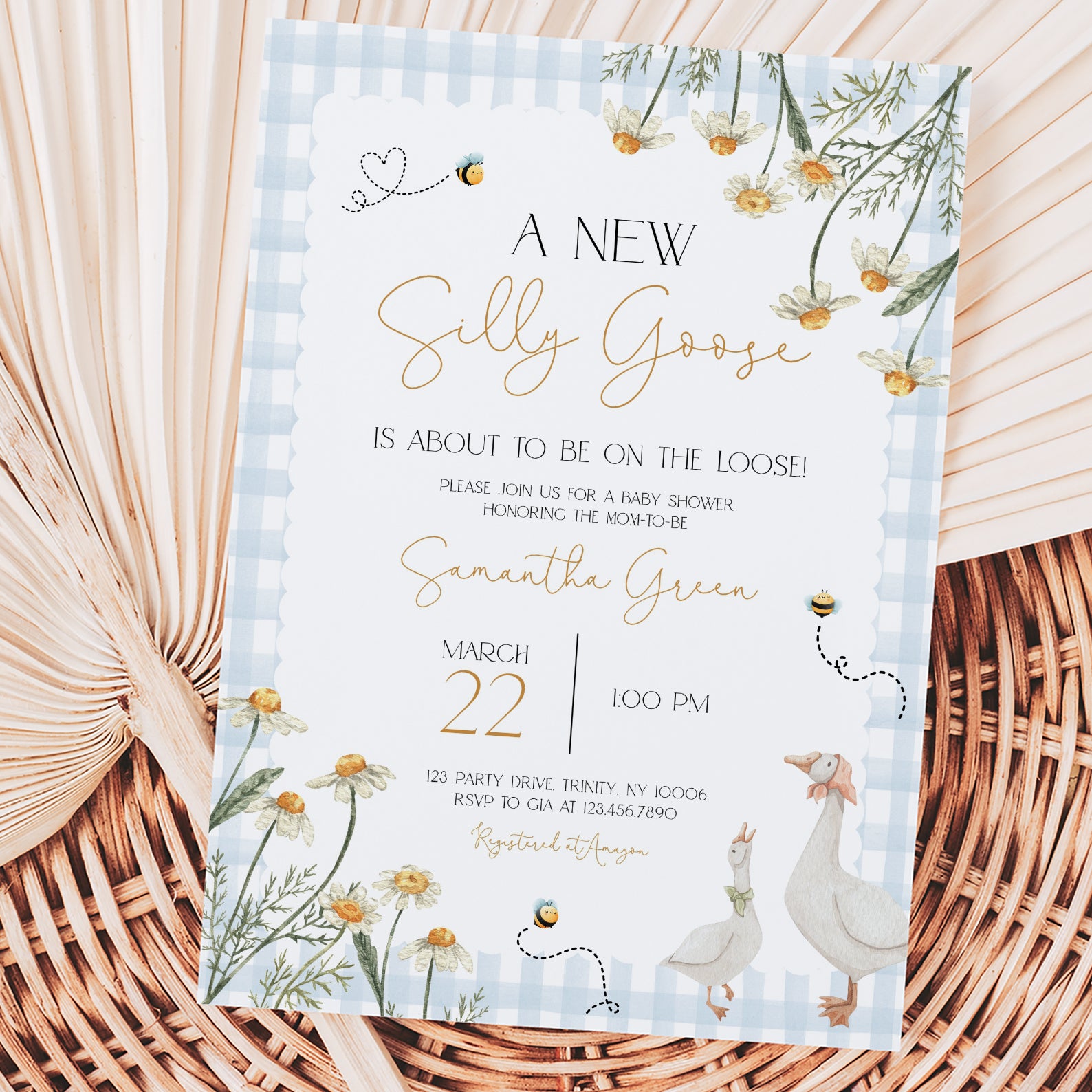 - Purchase this Silly Goose Baby Shower Invitation Bundle with Chamomile & Bees template