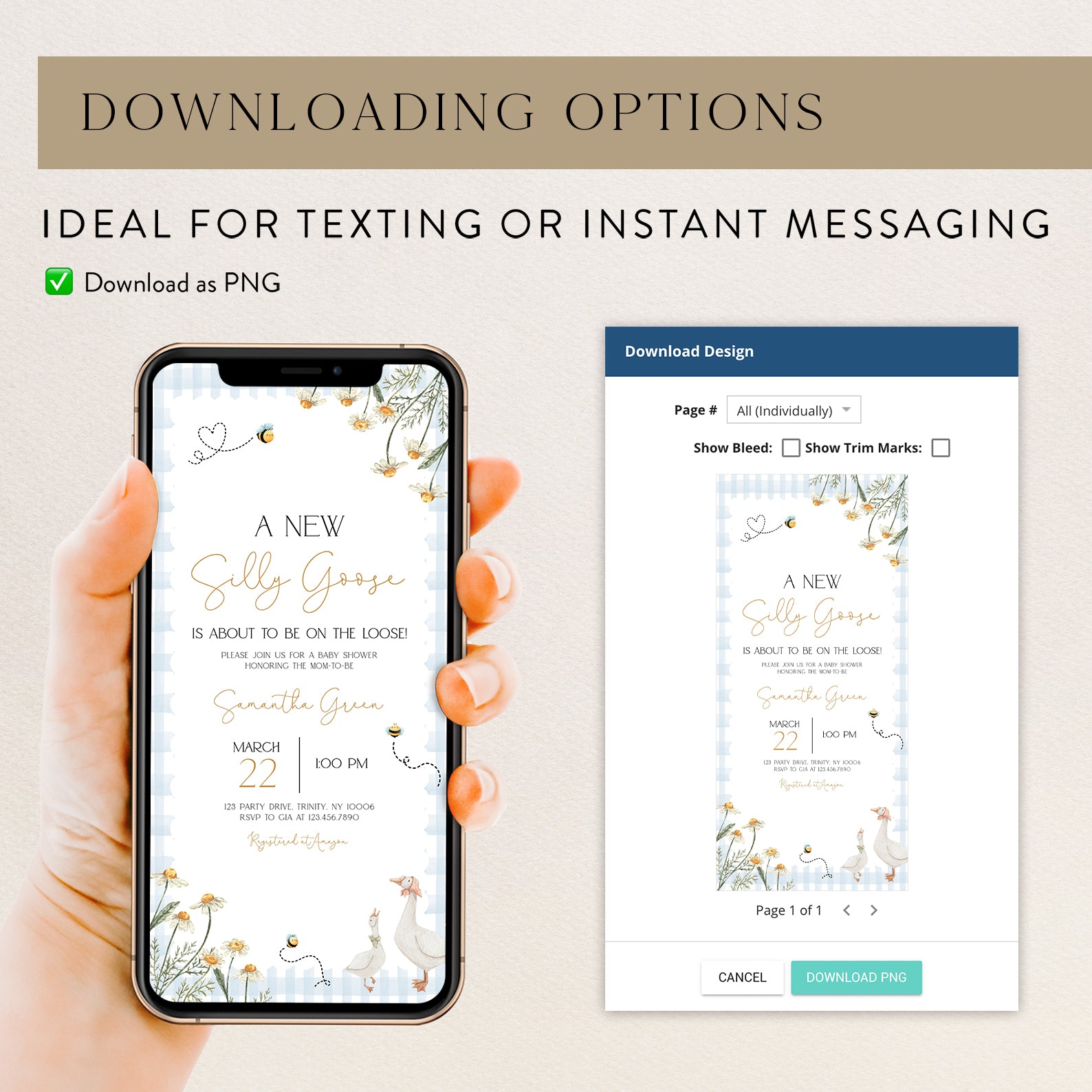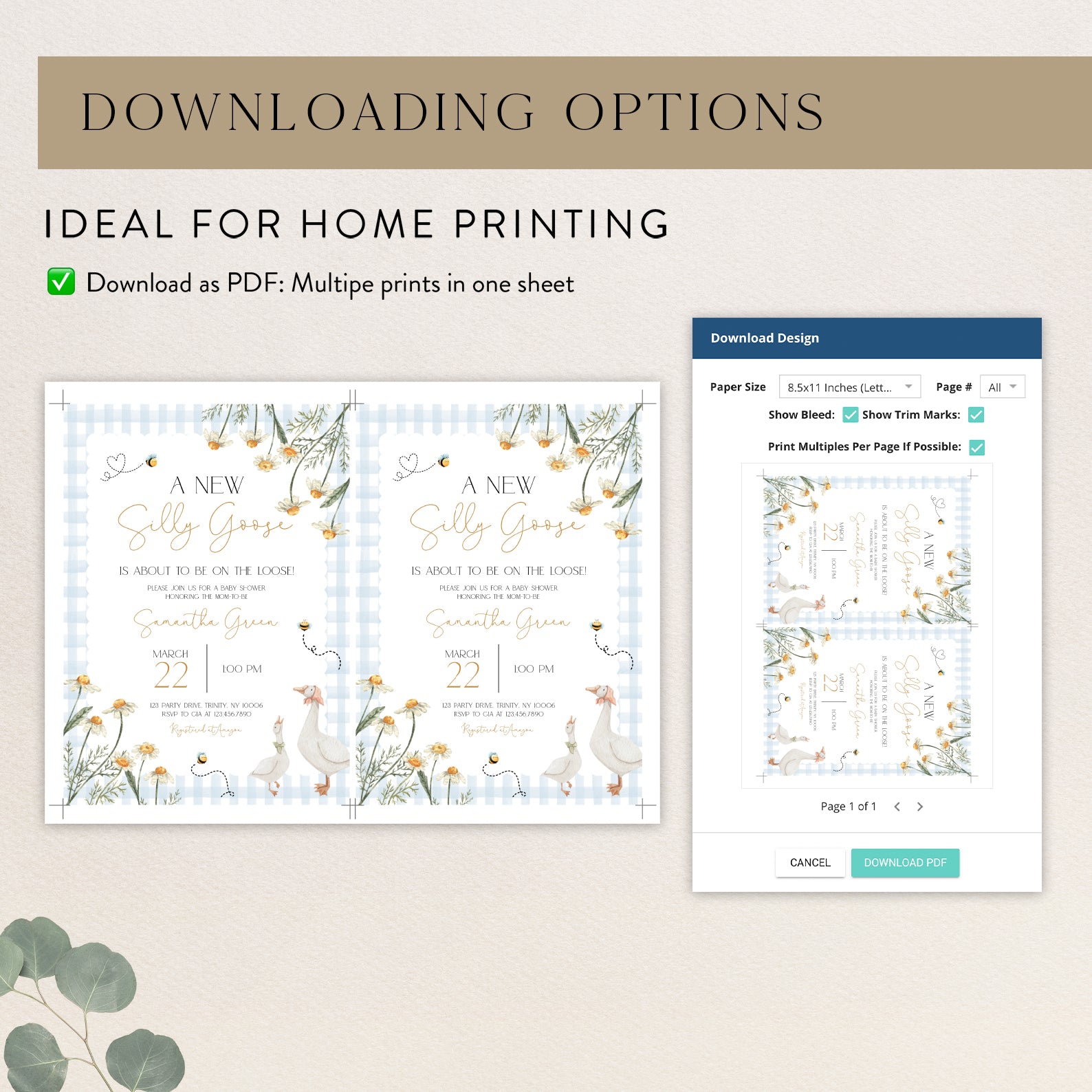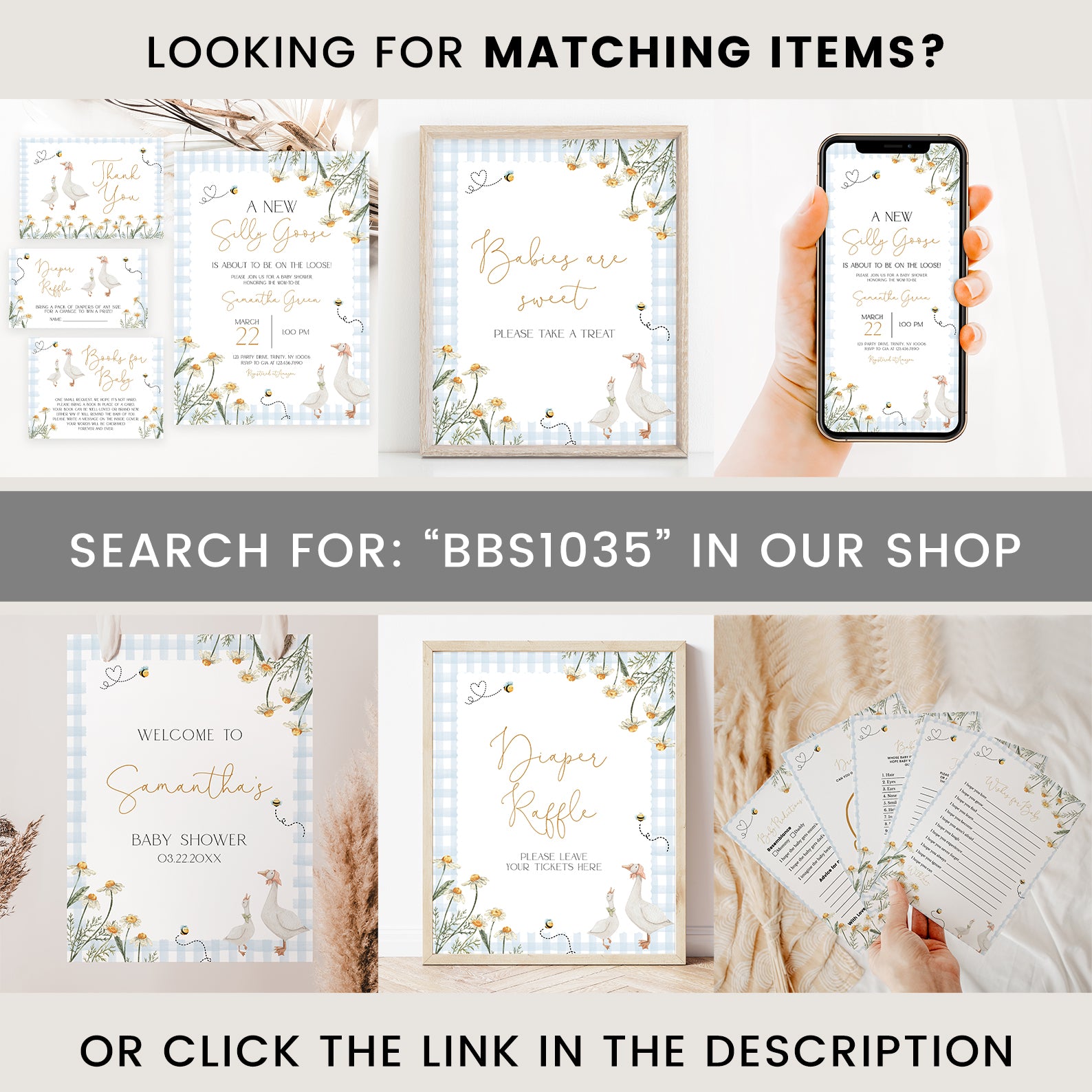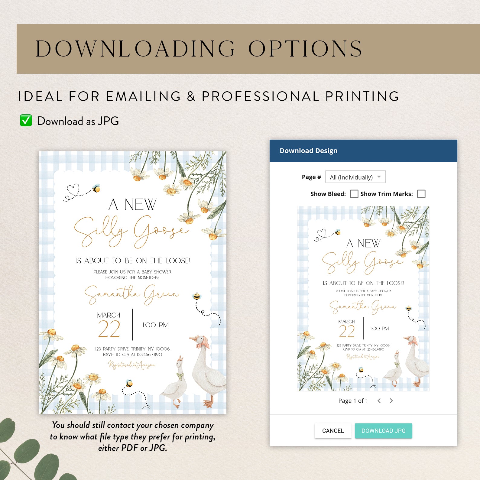 - Purchase this Silly Goose Baby Shower Invitation Bundle with Chamomile & Bees template
