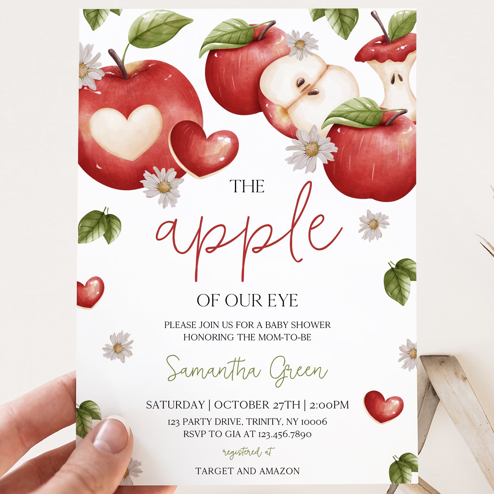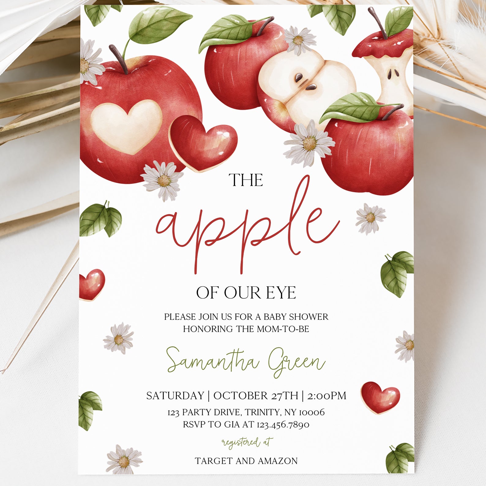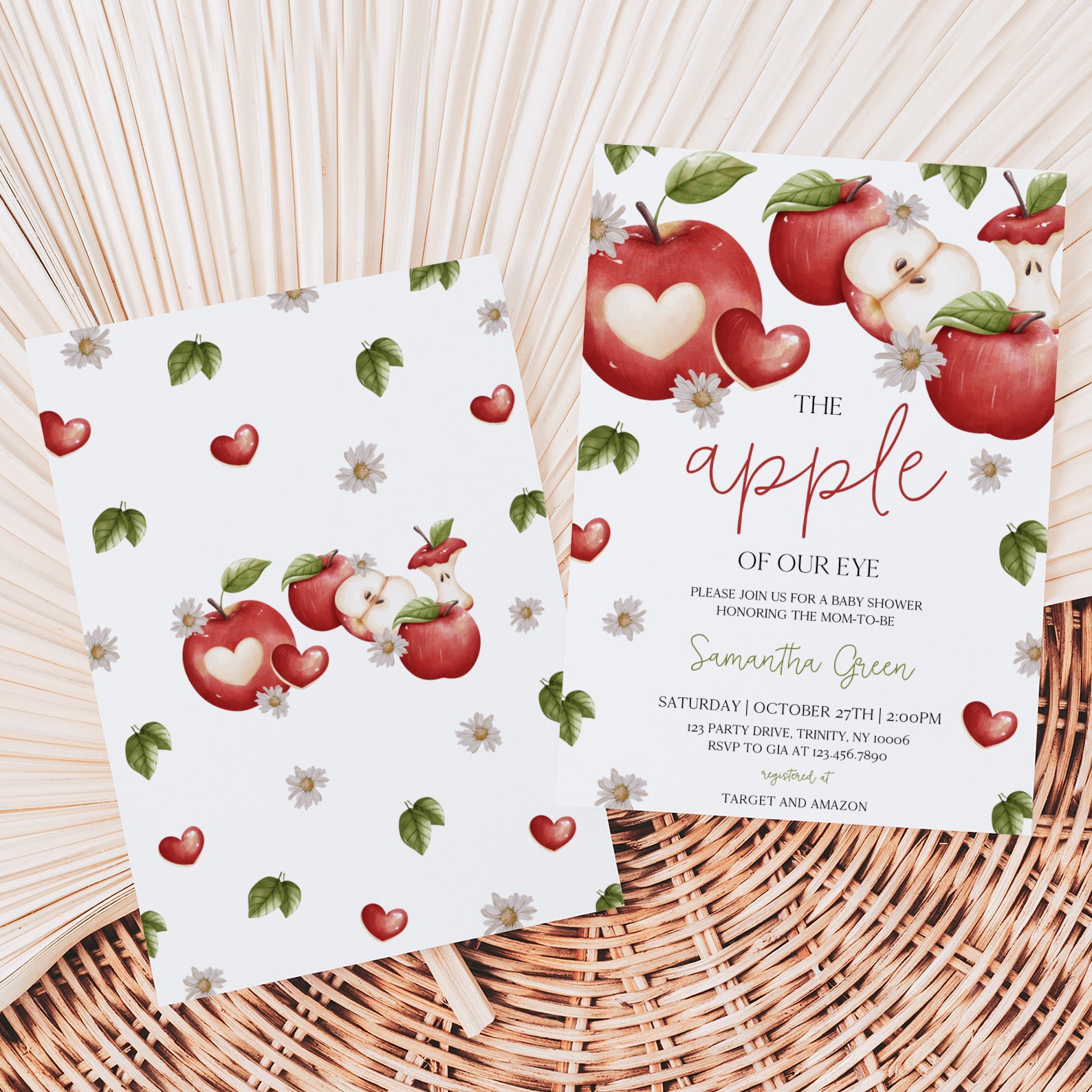 - Purchase this Apple of Our Eye Fall Baby Shower Invite with Daisies & Leaves template