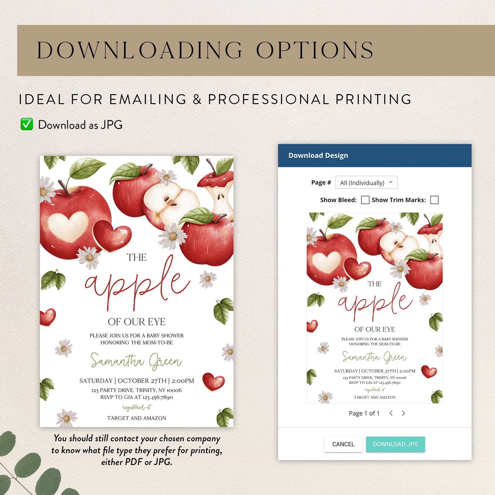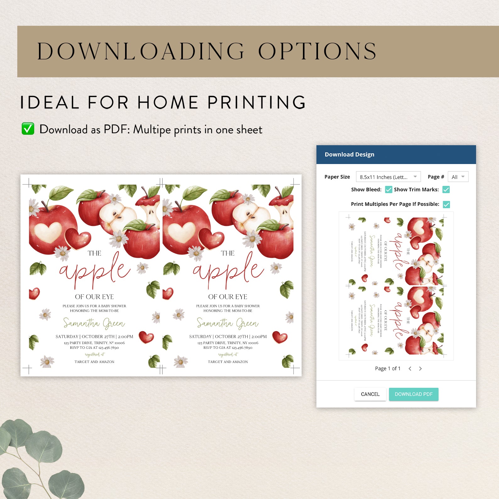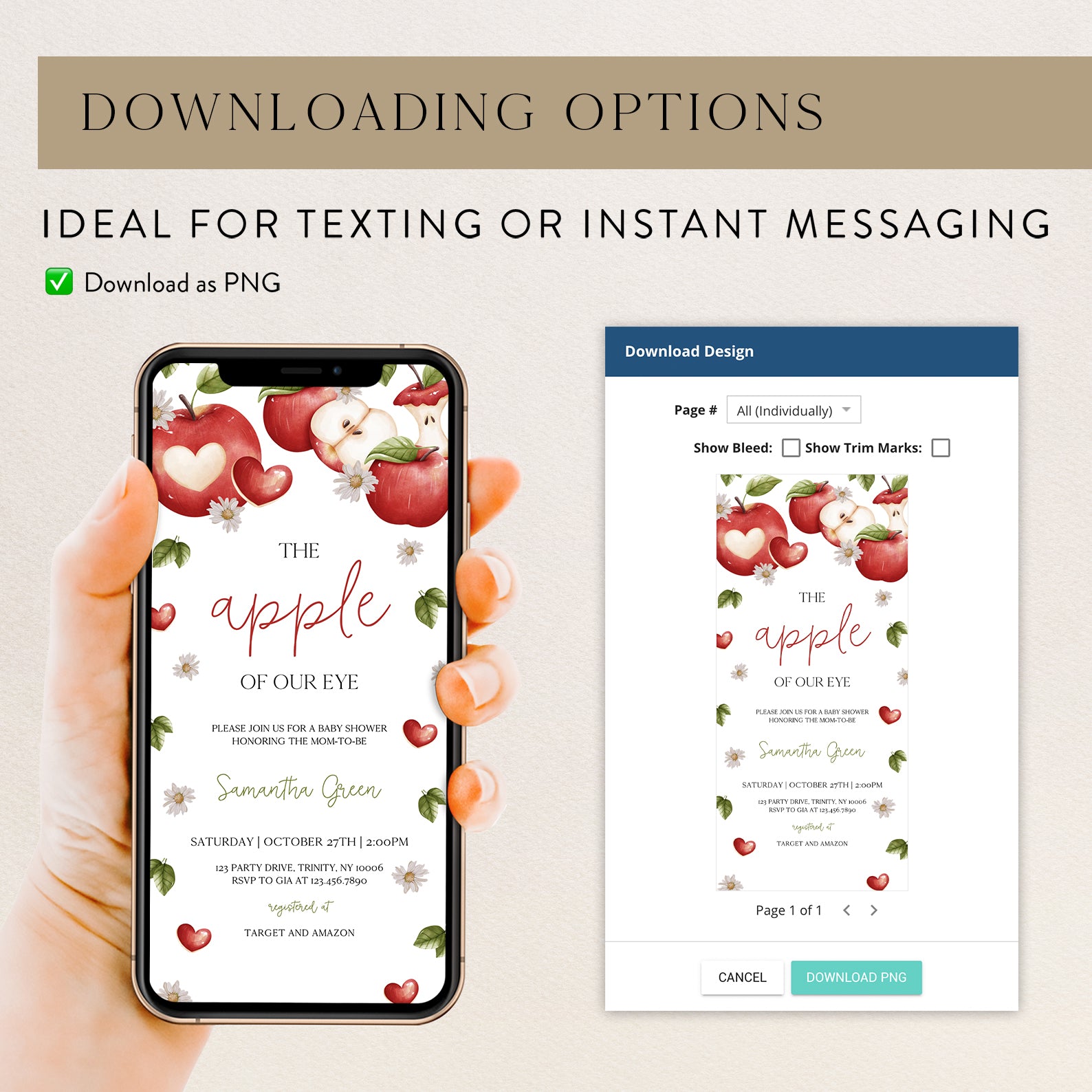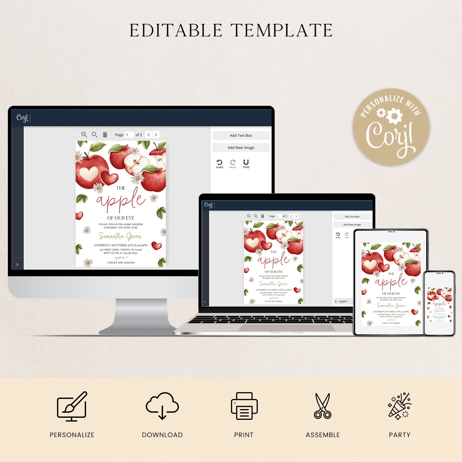 Welcome the upcoming arrival of your little one with our delightful fall baby shower digital invitation, "Apple of Our Eye." This charming design features vibrant red apples adorned with delicate white daisies, set against a backdrop of gracefully falling autumn leaves. Perfectly capturing the warmth and joy of the season, this invitation sets the tone for a gathering filled with love and laughter. Make your event unforgettable with this captivating and customizable digital invite that showcases the beauty of fall!