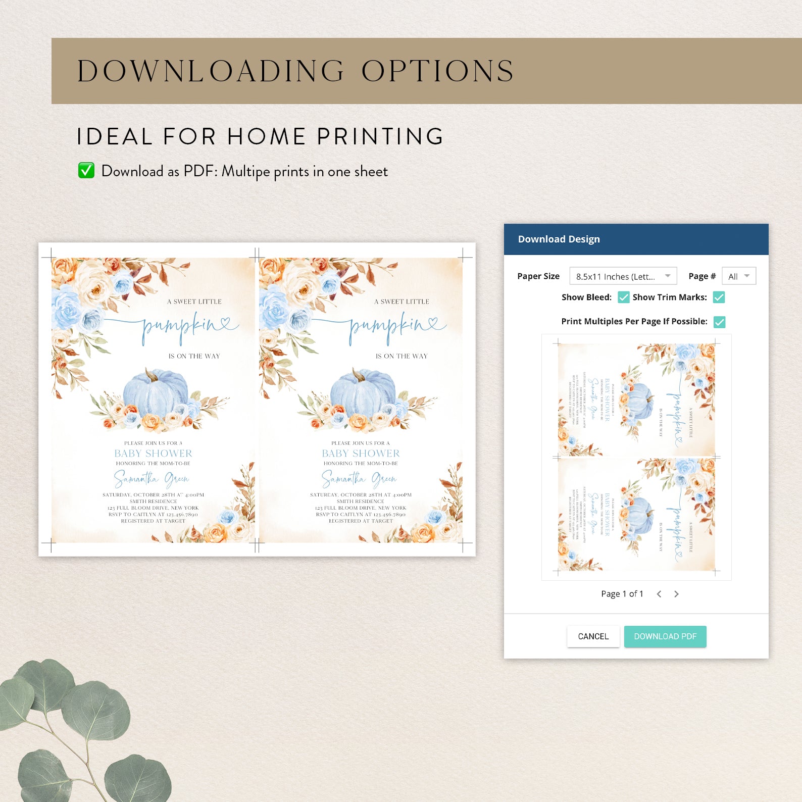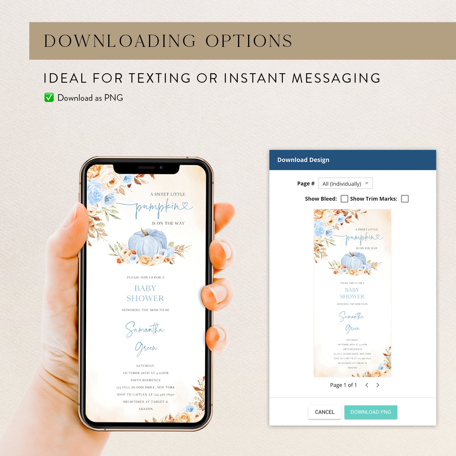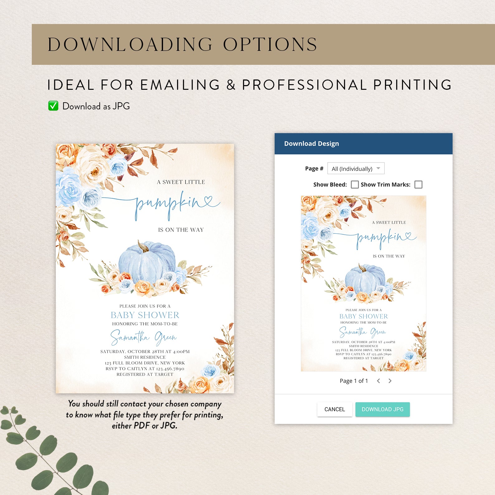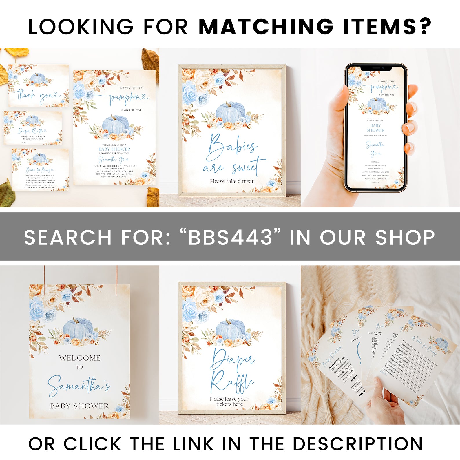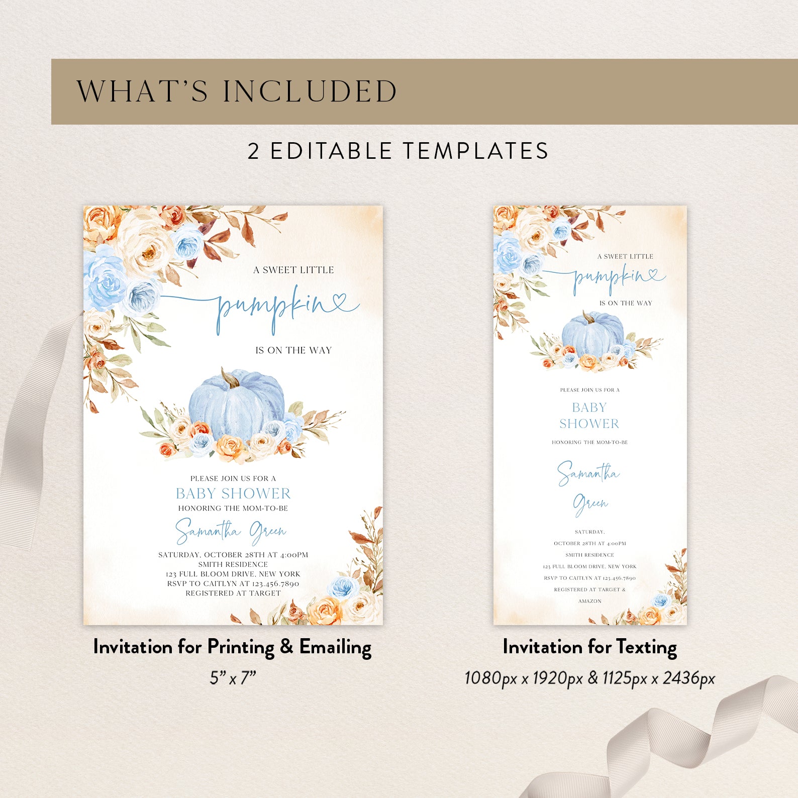 - Purchase this Charming Fall Blue Baby Shower Invitation with Roses & Pumpkins template