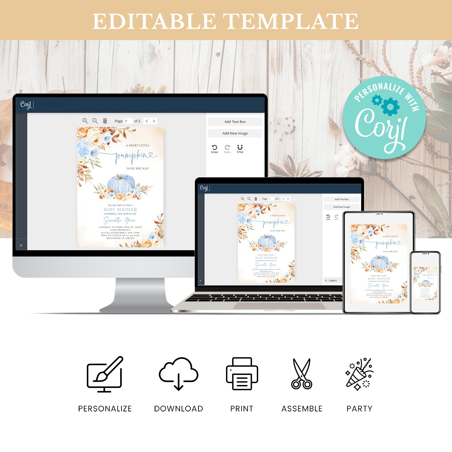 *Corjl is an online platform that allows you to customize the template directly from your browser.