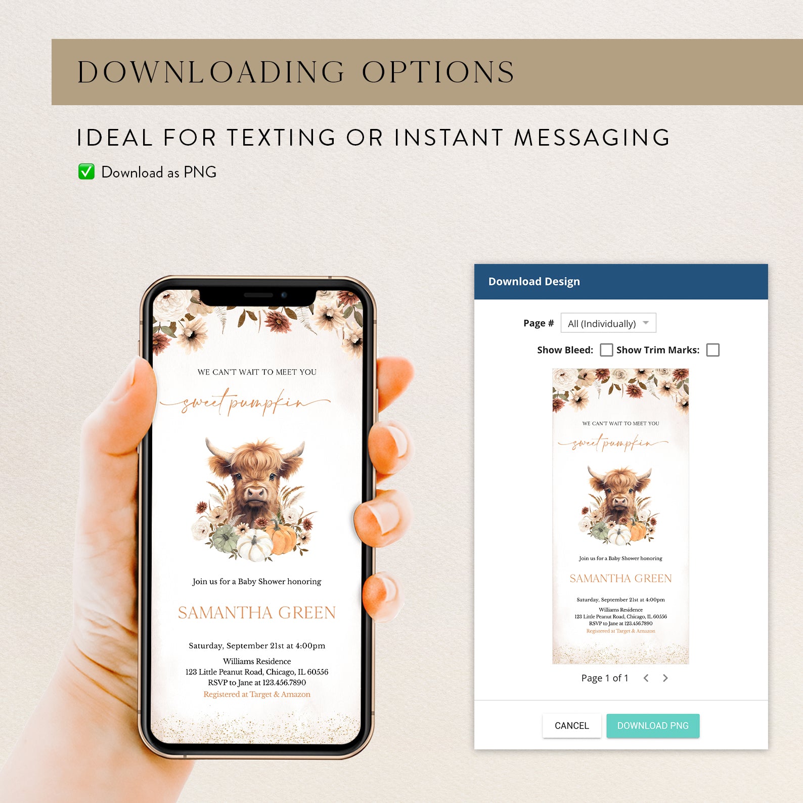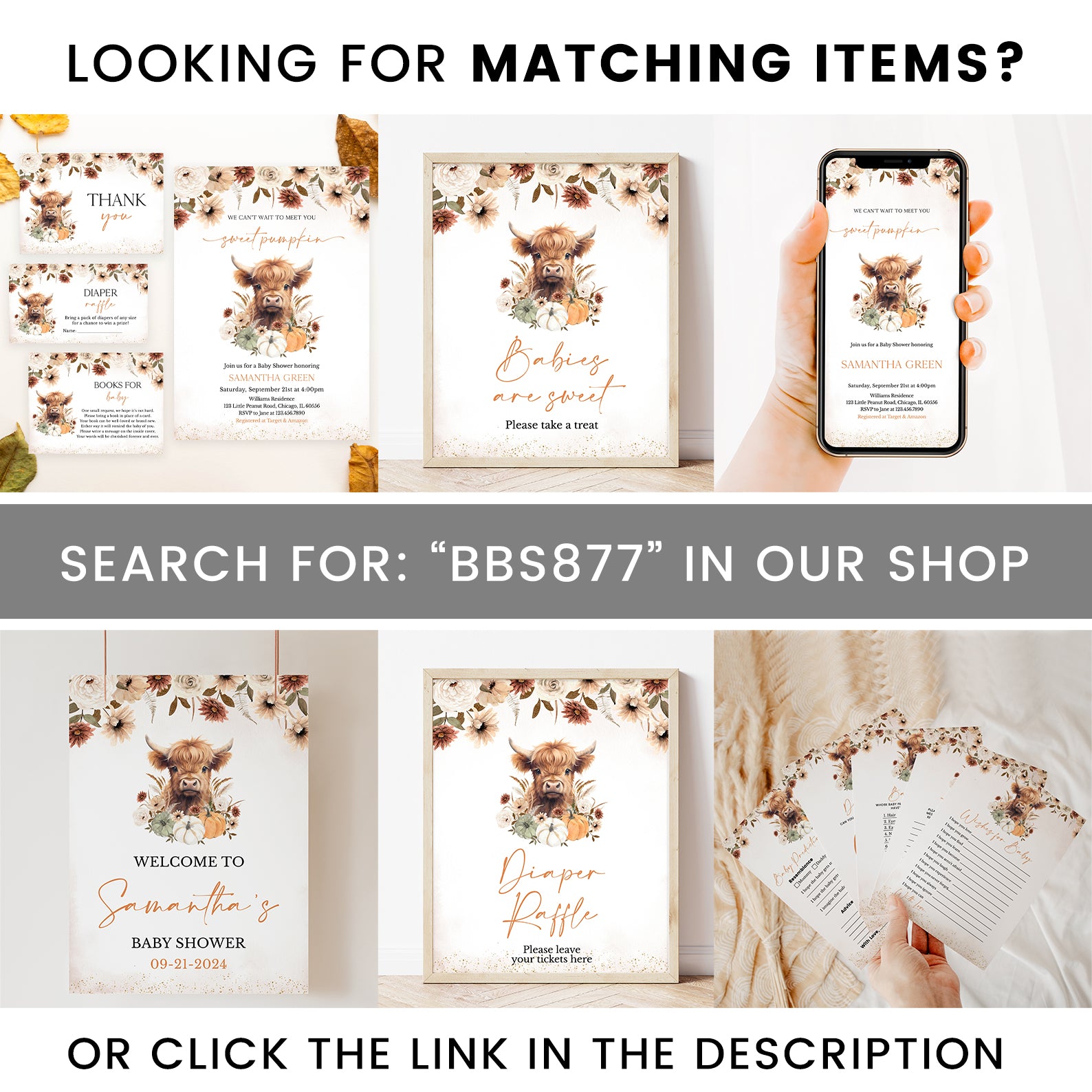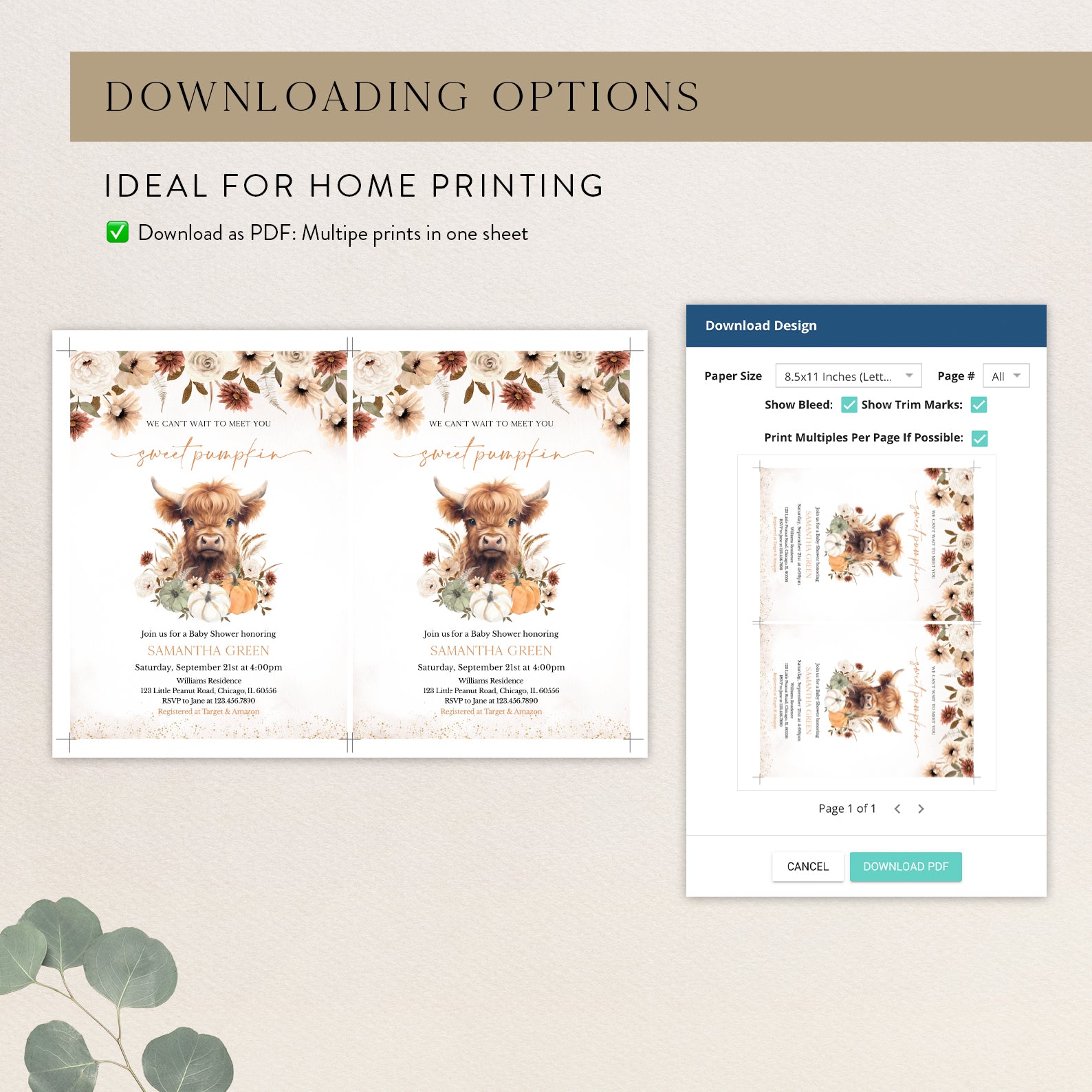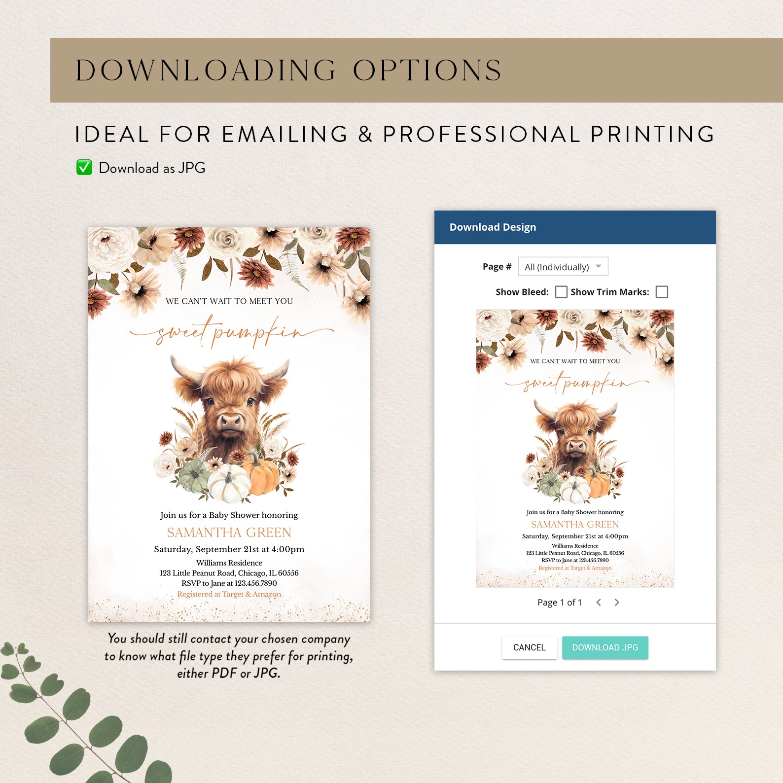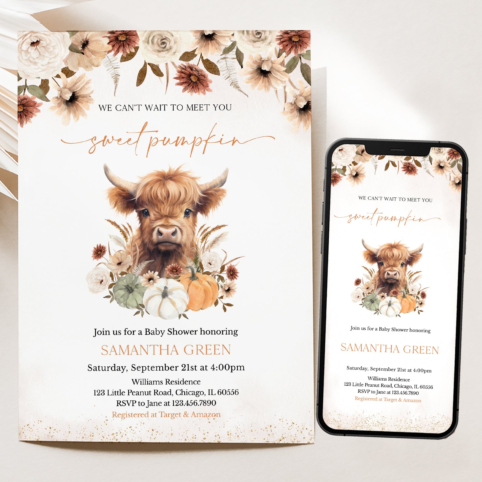 - Purchase this Fall Baby Shower Invite with Highland Cow & Floral Border template