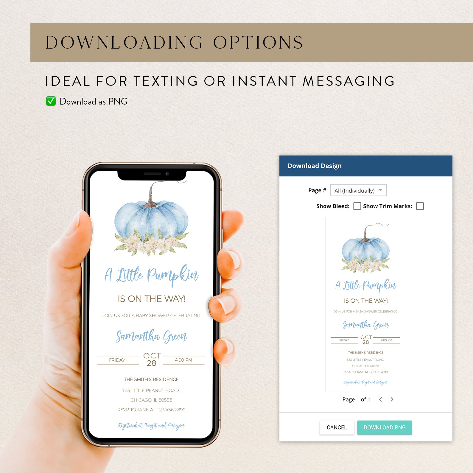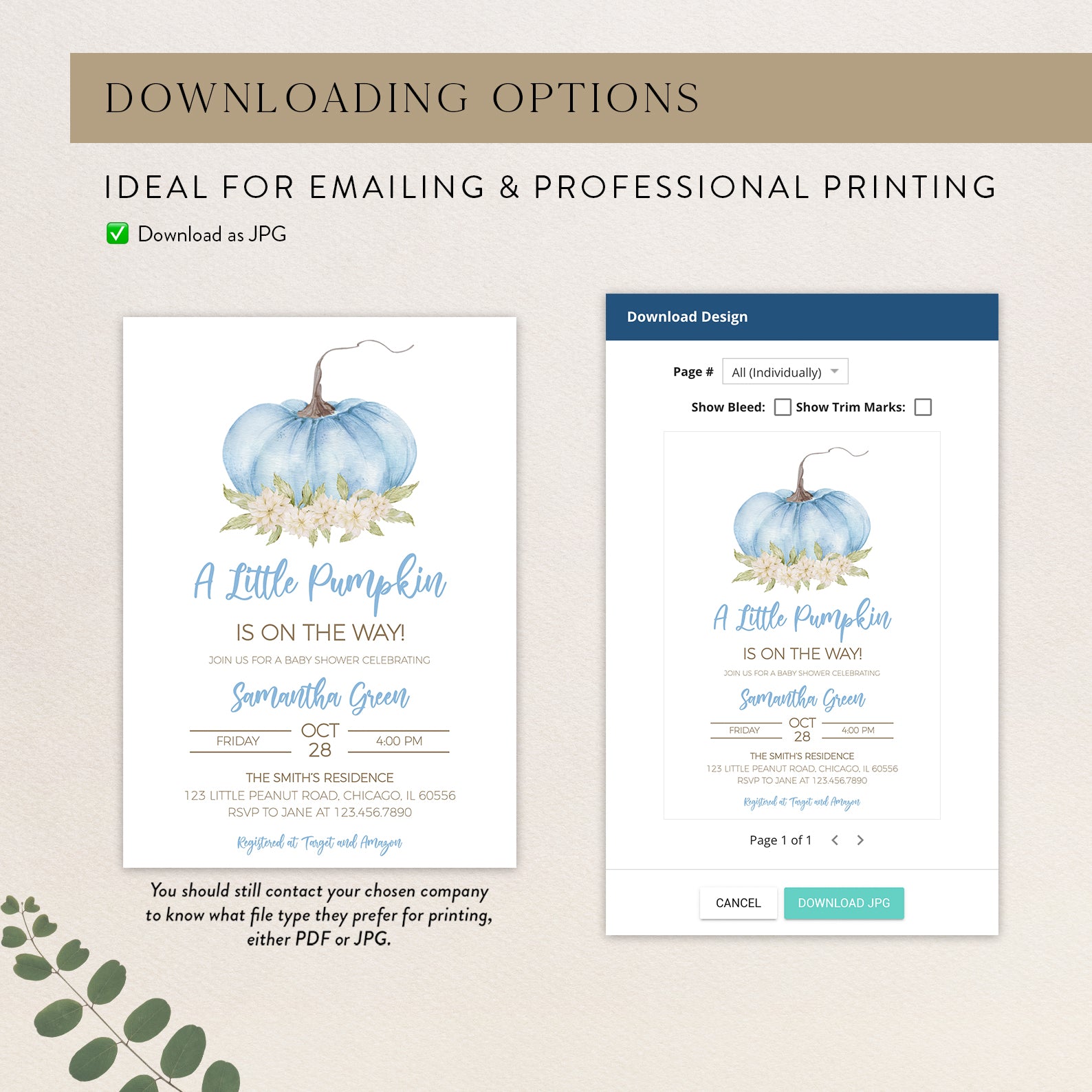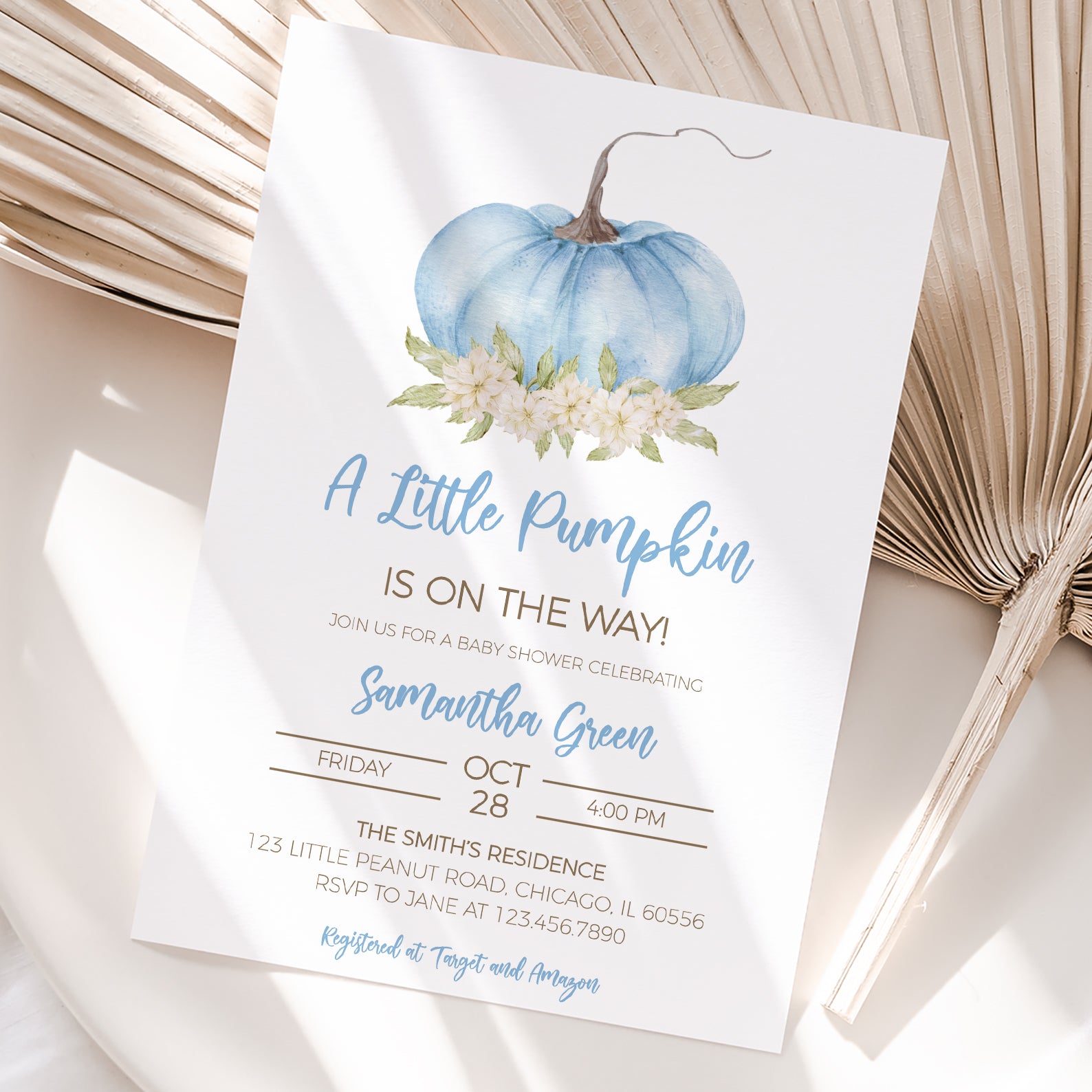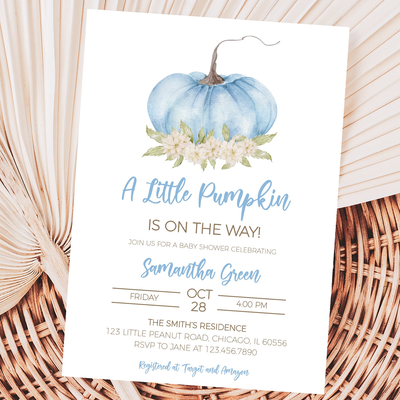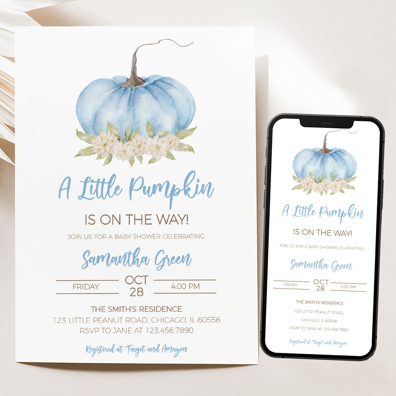 - Purchase this Little Pumpkin Baby Shower Digital Invite: Pumpkin & Flower template