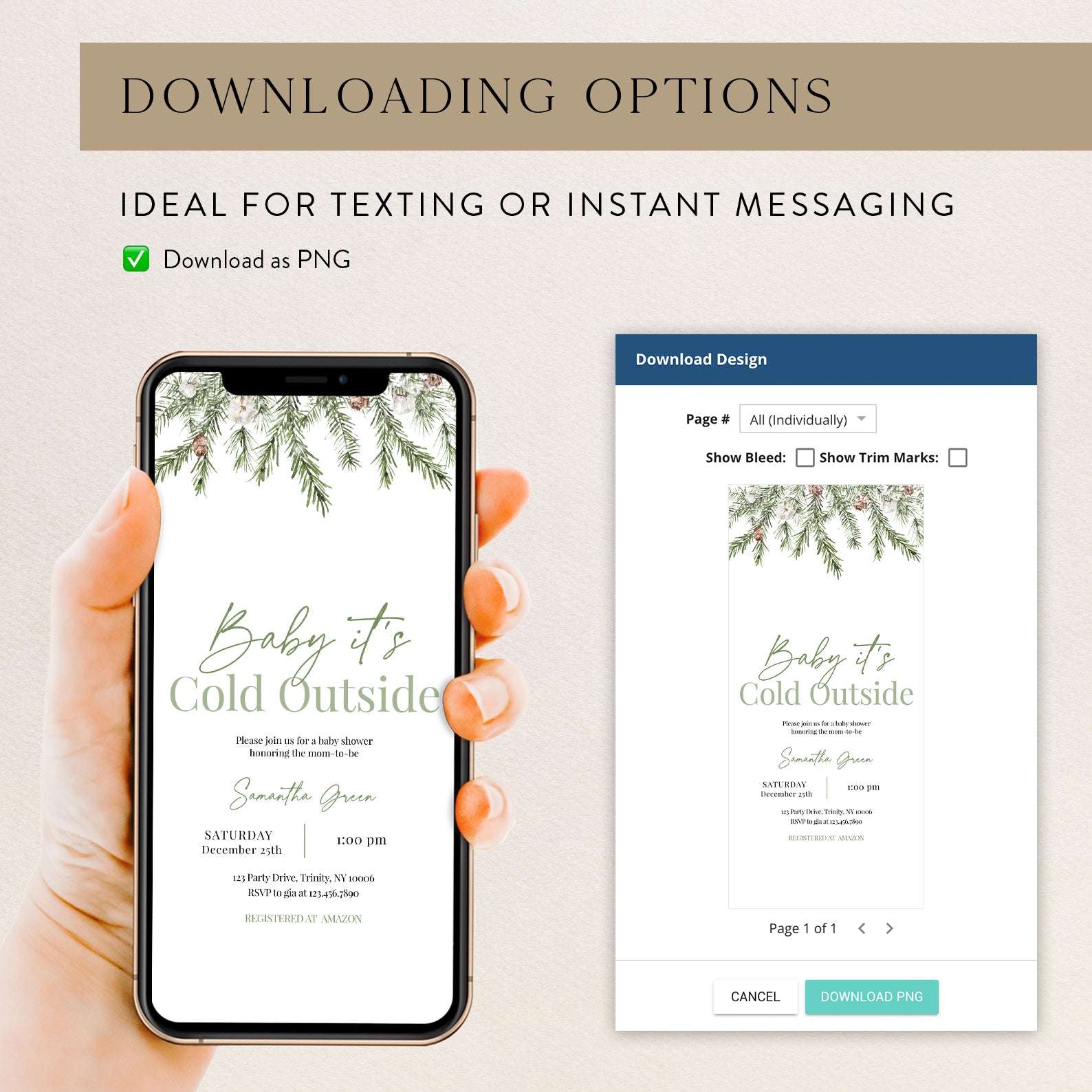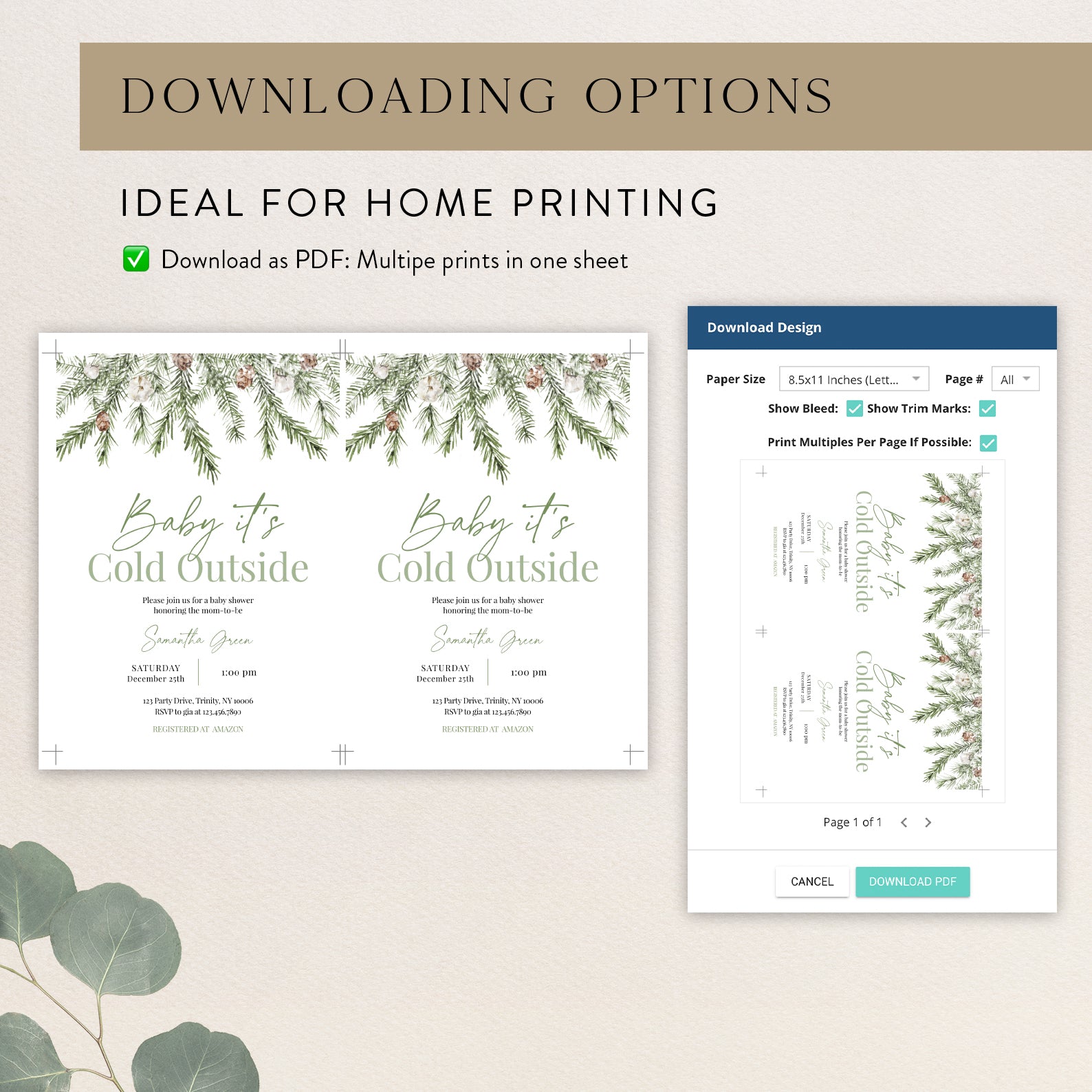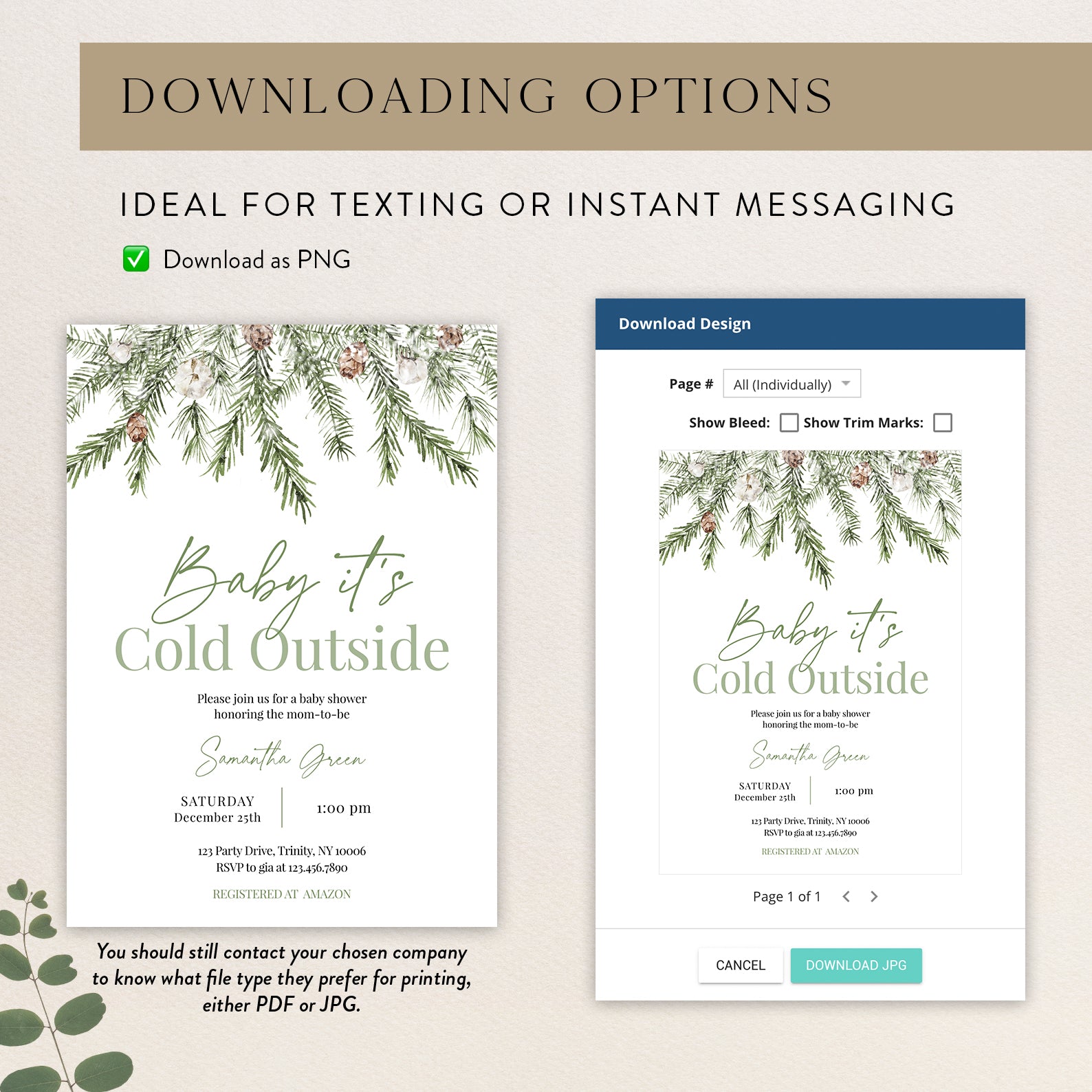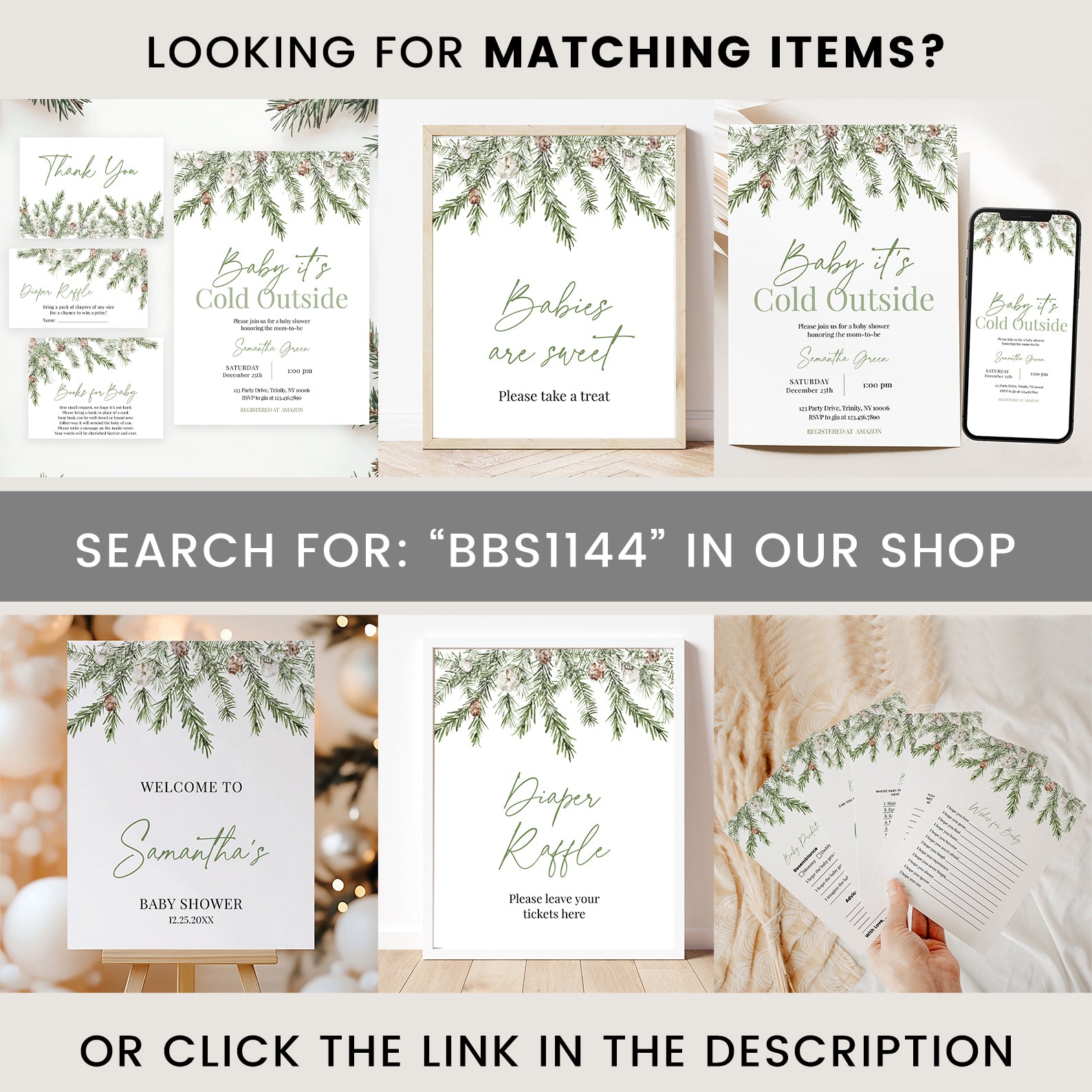 - Purchase this Minimalist Winter Baby Shower Invite: Green Christmas Theme template