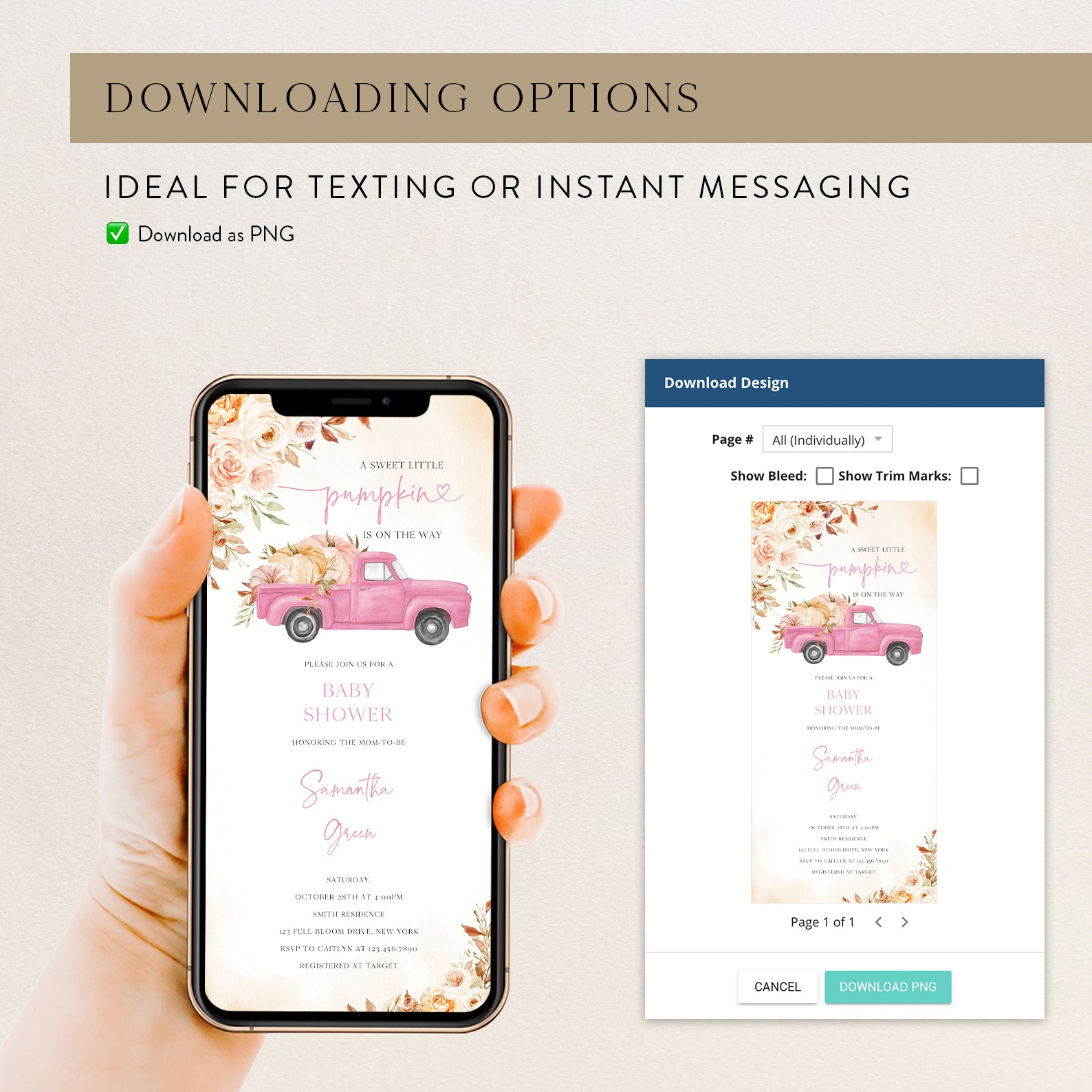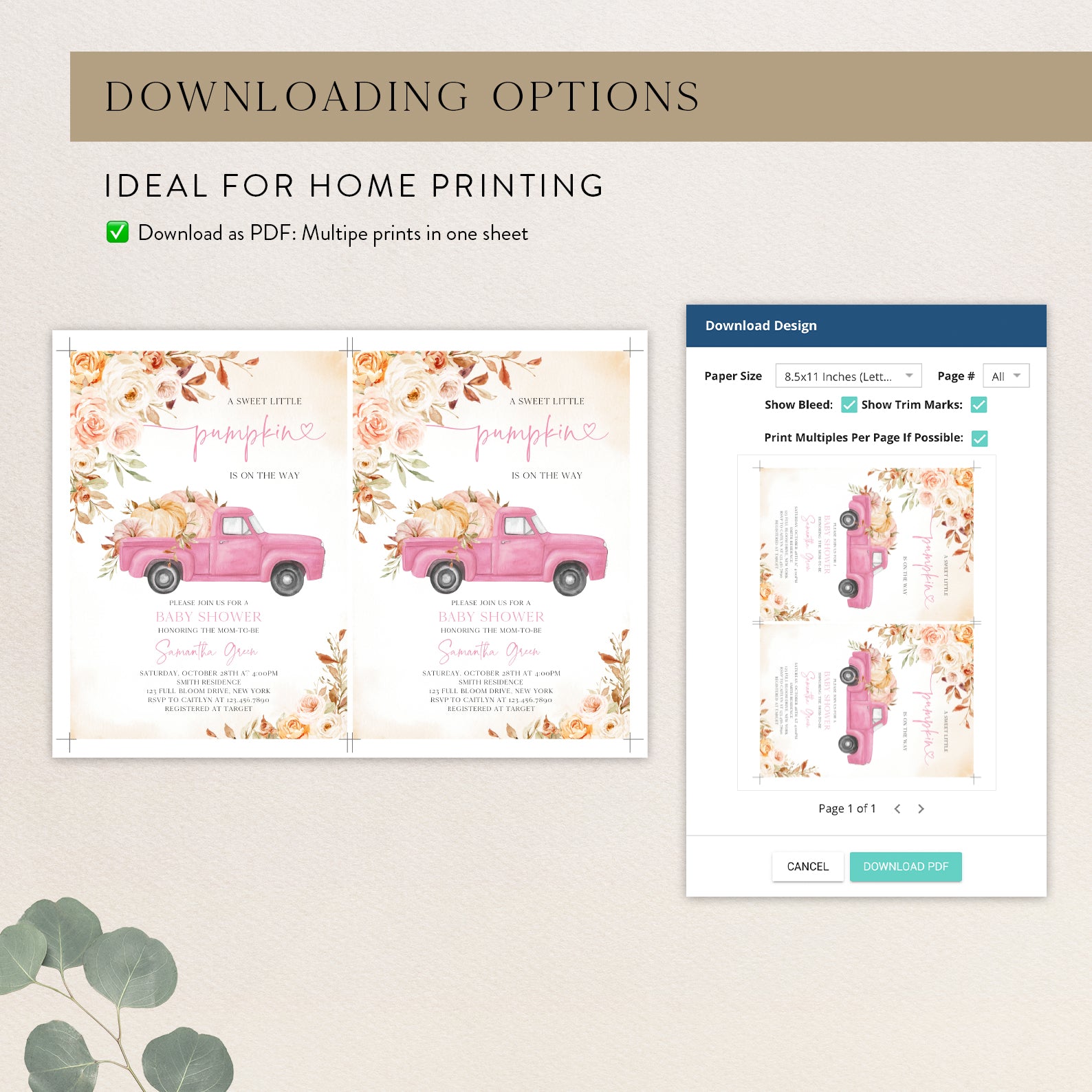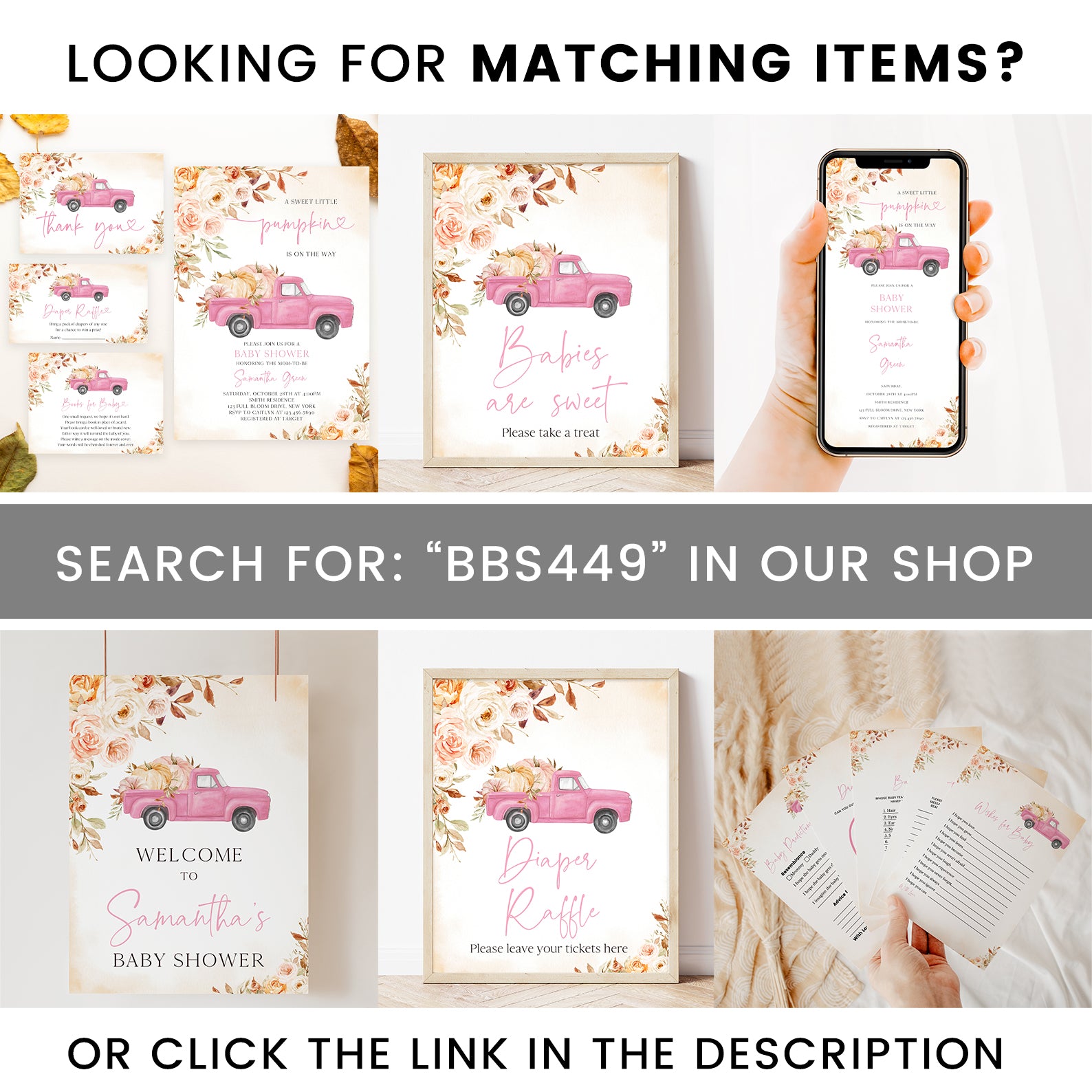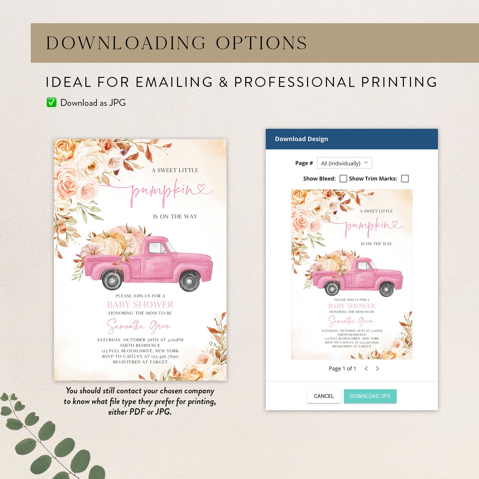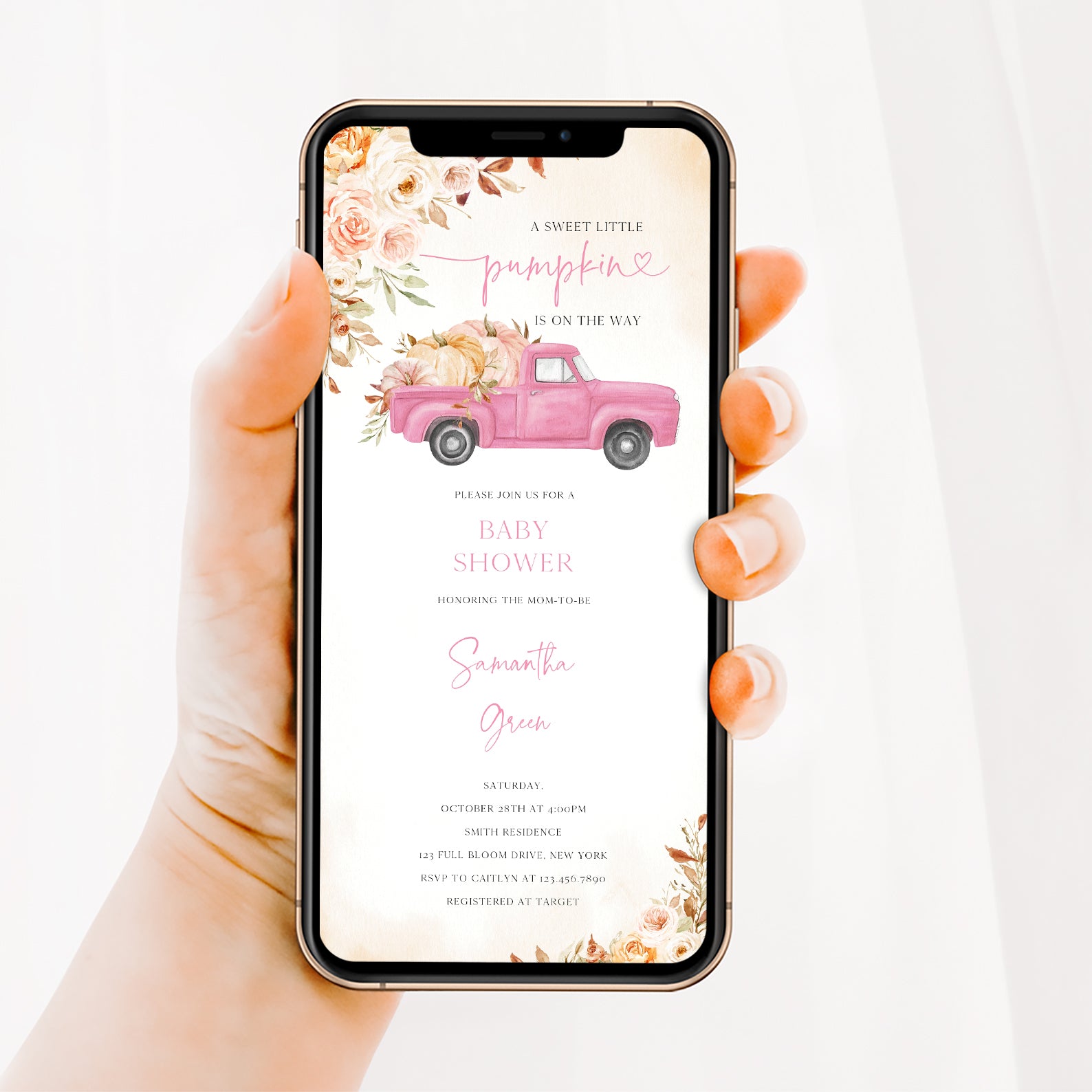 - Purchase this Pickup Truck & Pumpkins with Roses Pink Fall Baby Shower Invite template