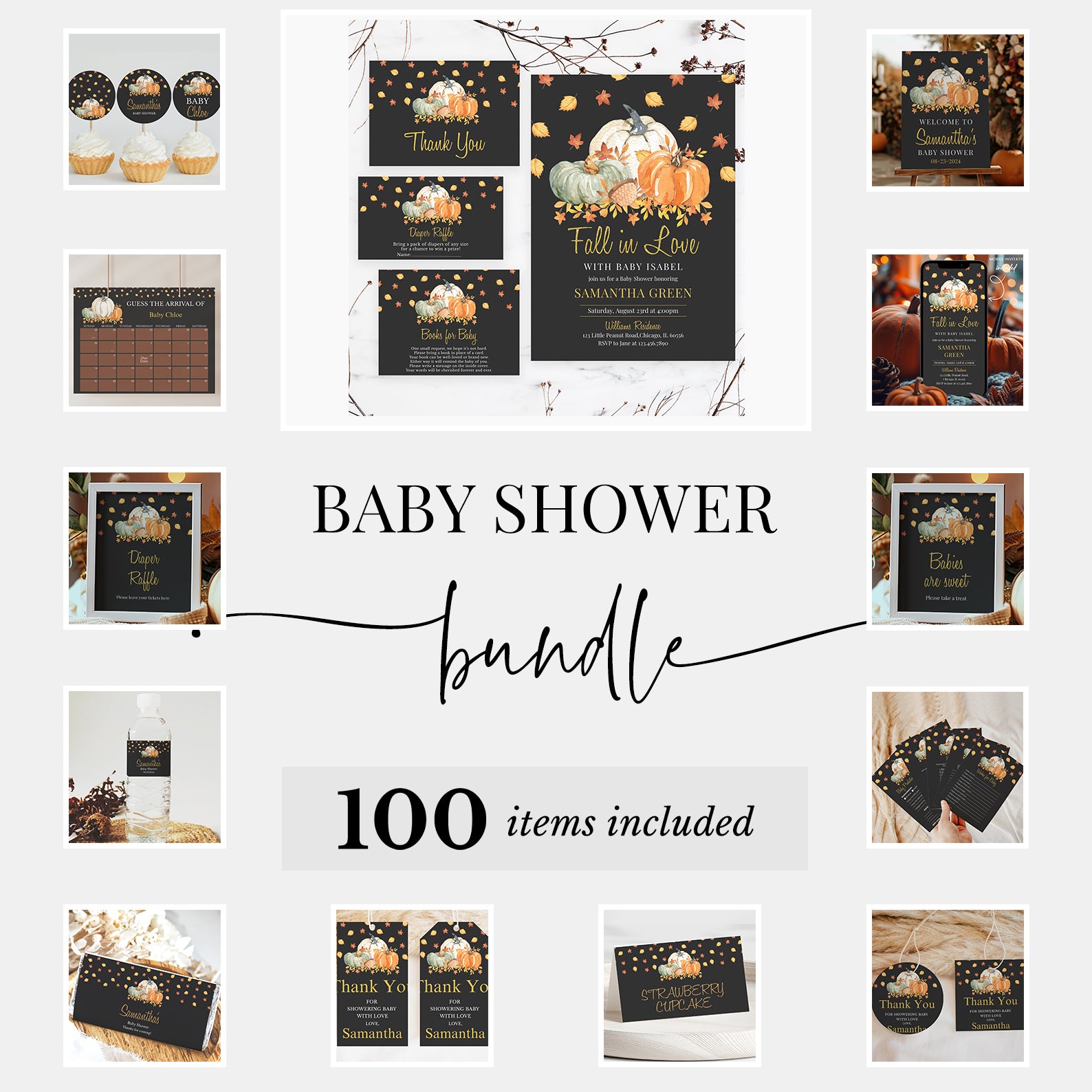 Fall in Love Baby Shower Mega Bundle: Pumpkins and Falling Leaves