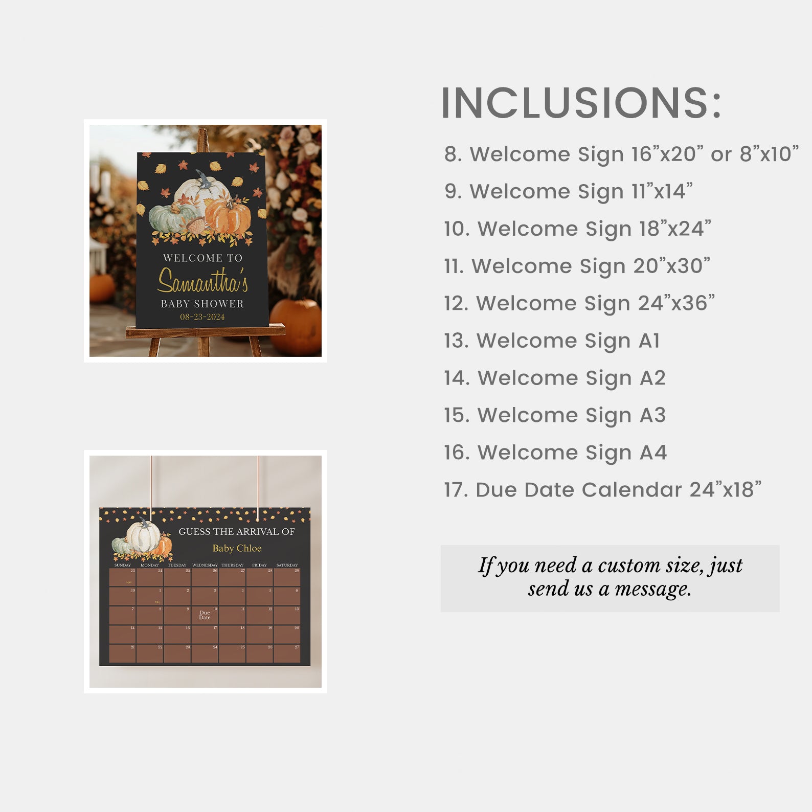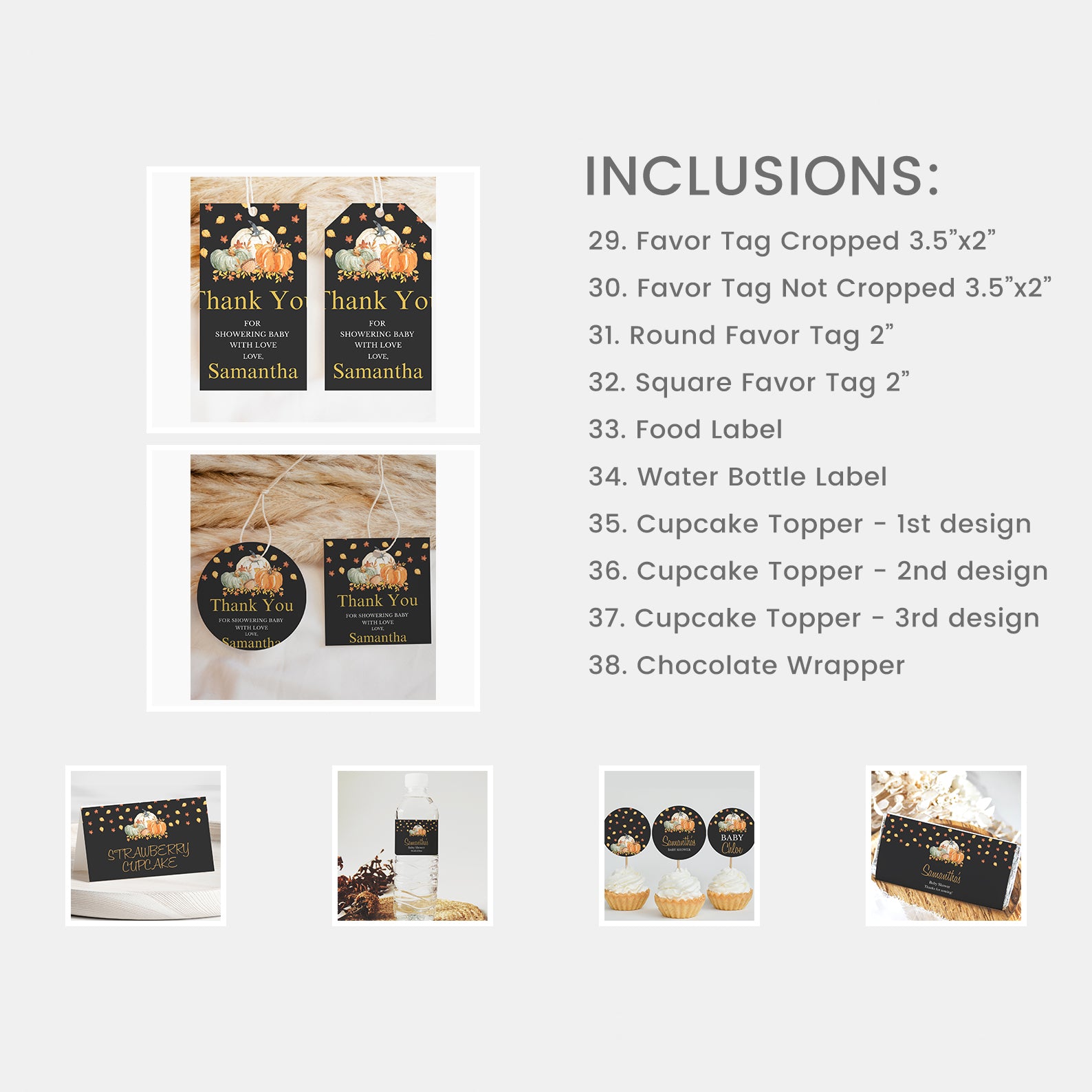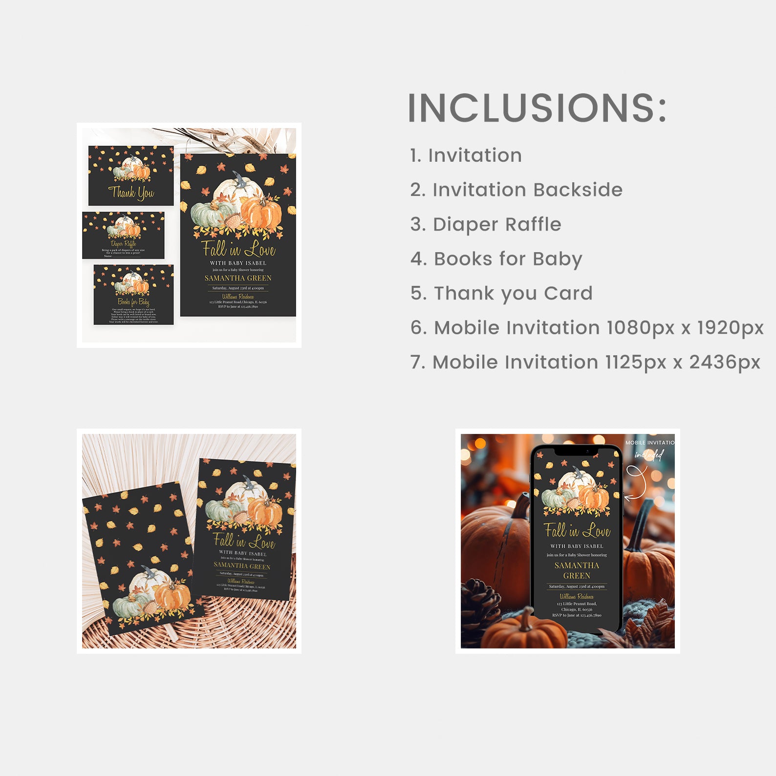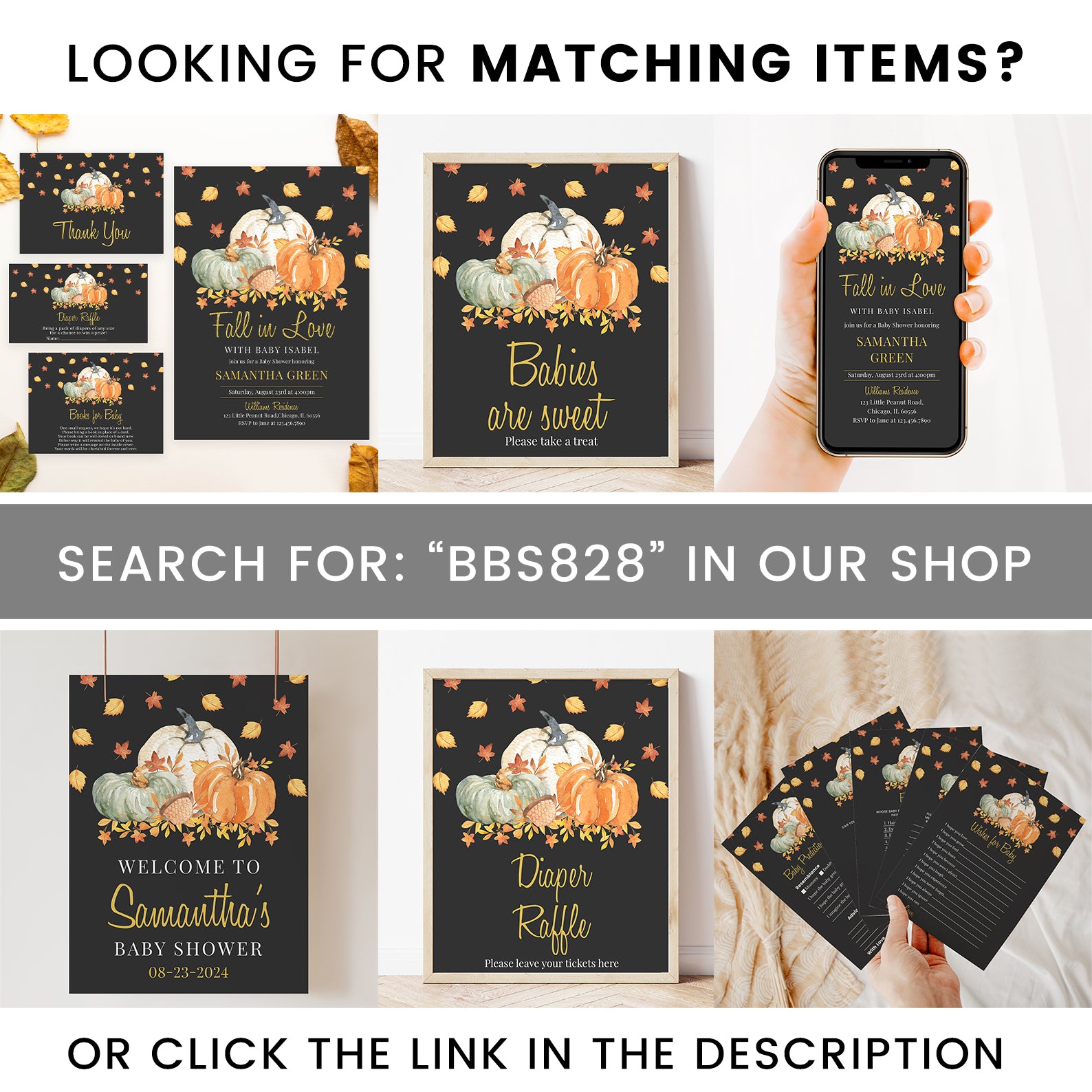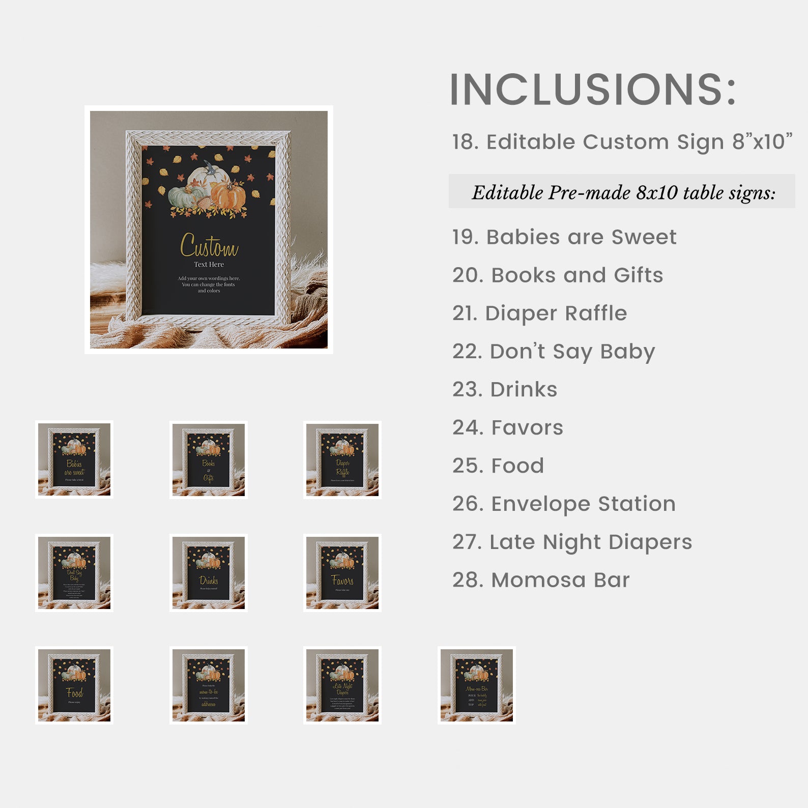 - Purchase this Fall in Love Baby Shower Mega Bundle: Pumpkins and Falling Leaves template