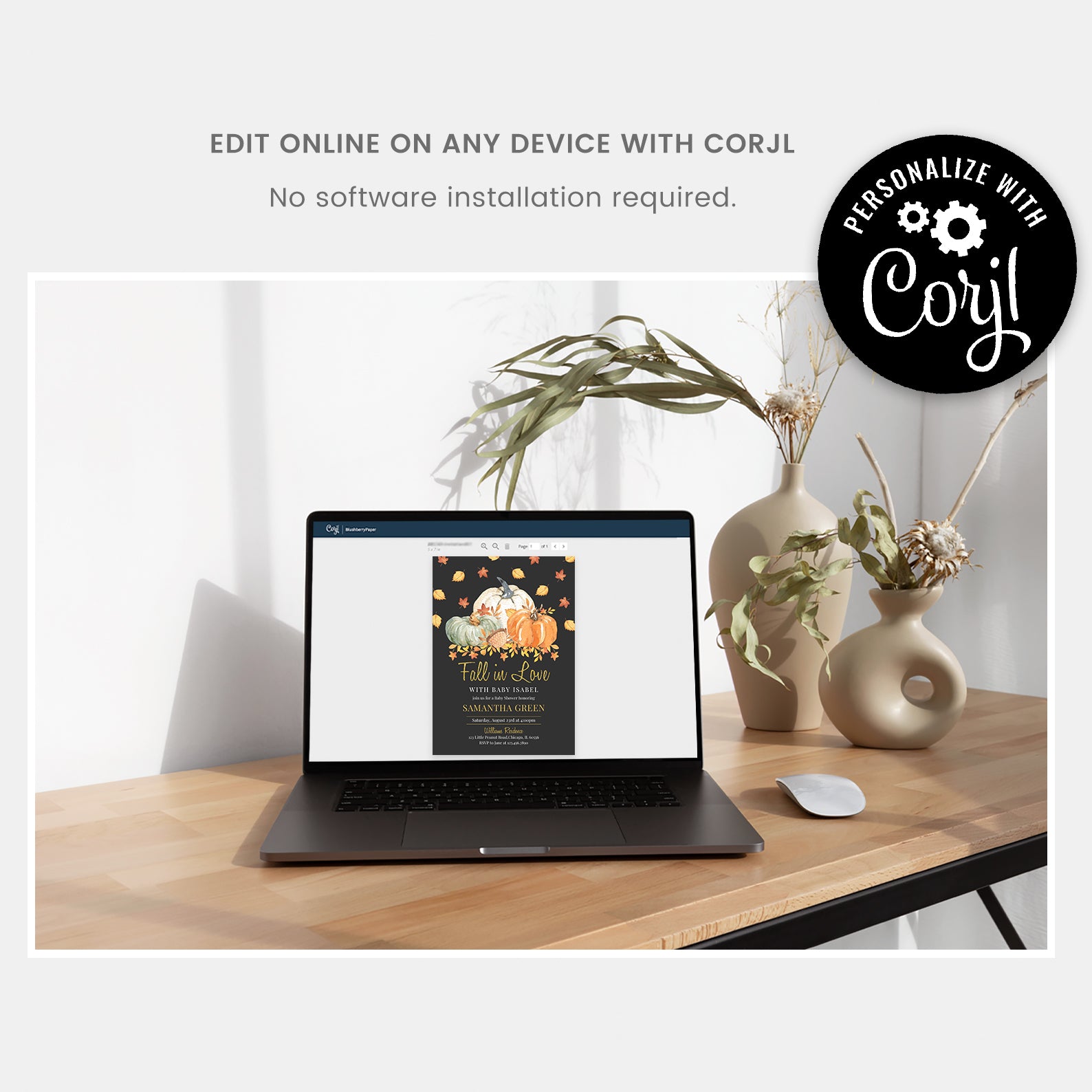 *Corjl is an online platform that allows you to customize the template directly from your browser.