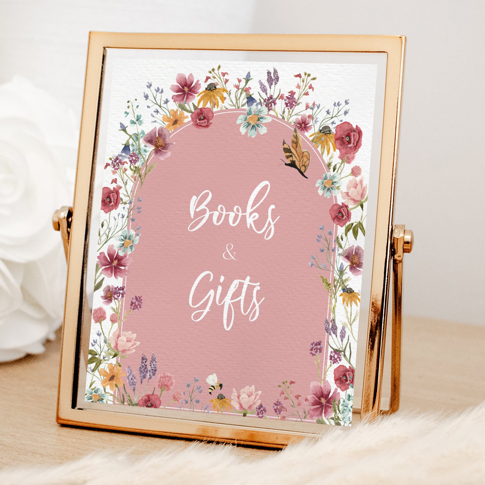 - Purchase this Baby in Bloom Spring Shower Table Sign with Pink Arch & Wildflowers template