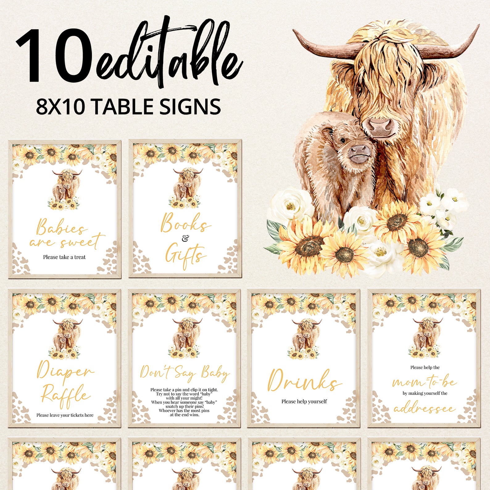 - Purchase this Holy Cow Sunflower Baby Shower Digital Table Sign template