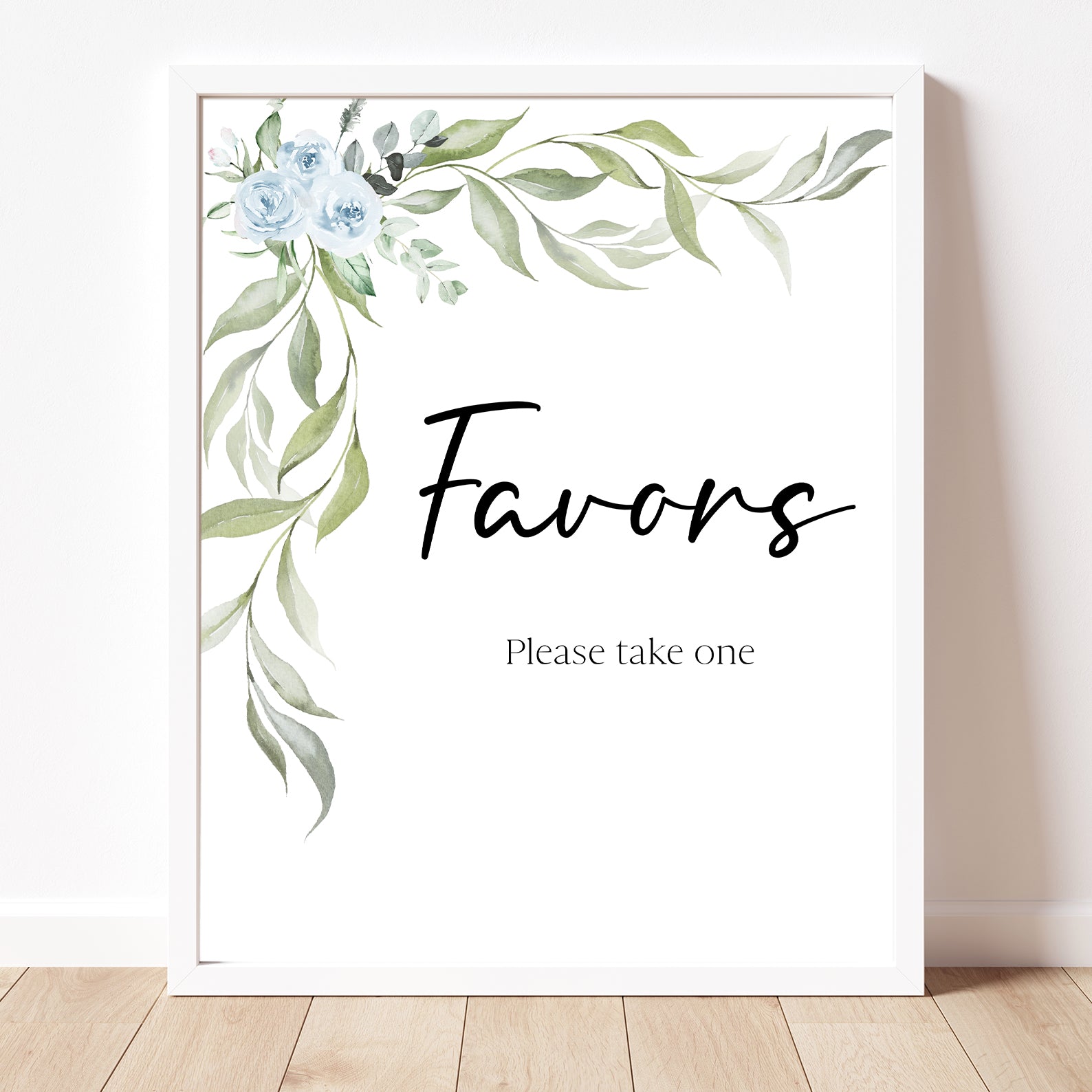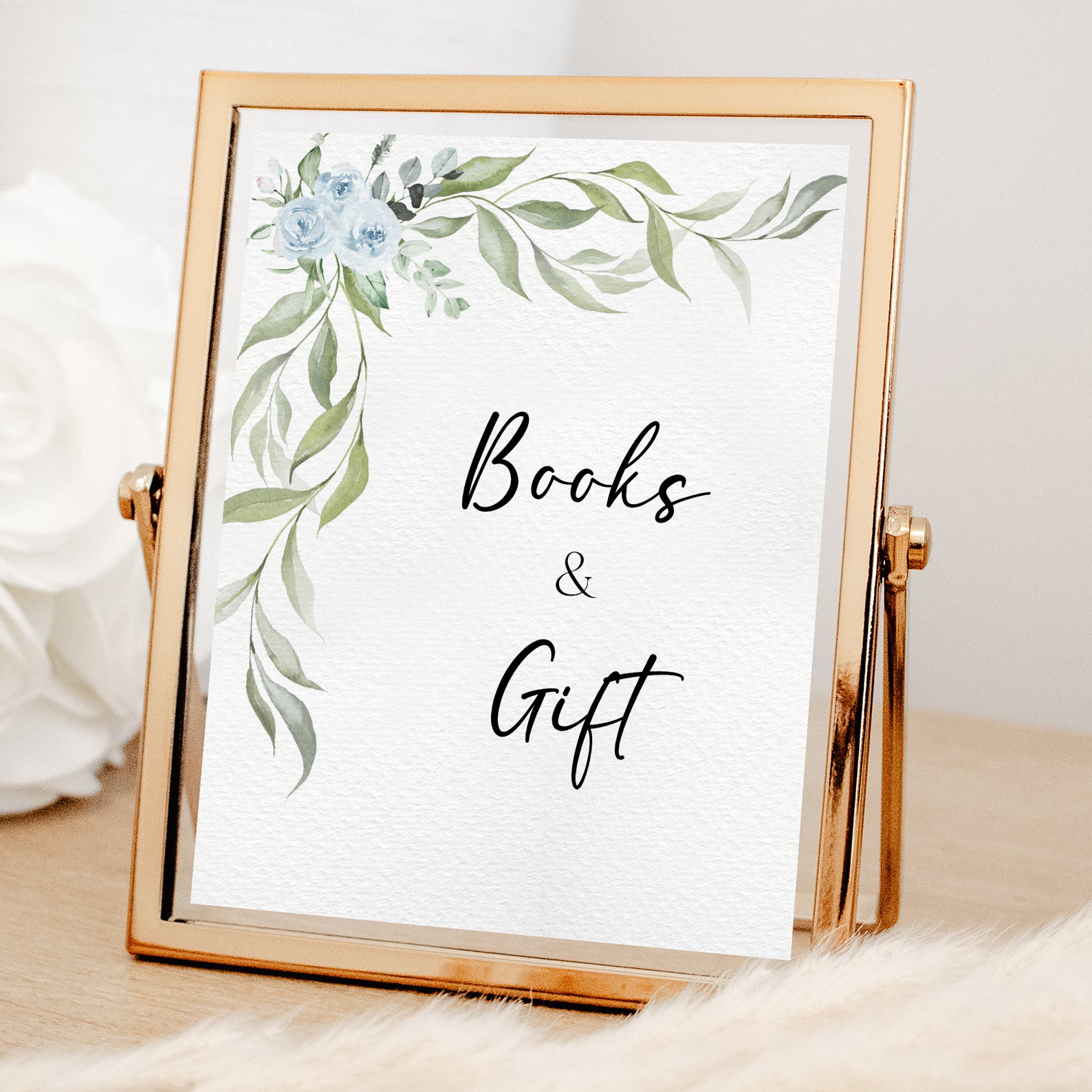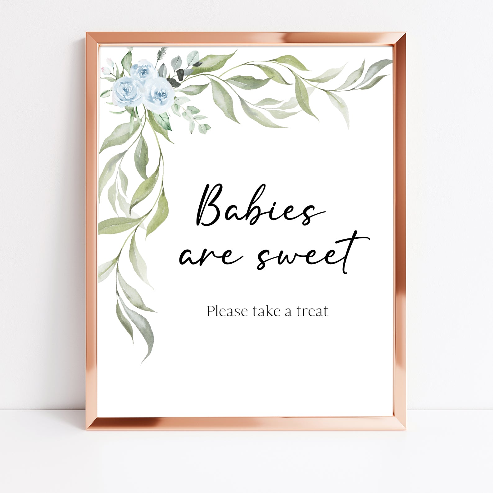 - Purchase this Minimalist Baby Shower Table Sign with Blue Roses & Greenery template